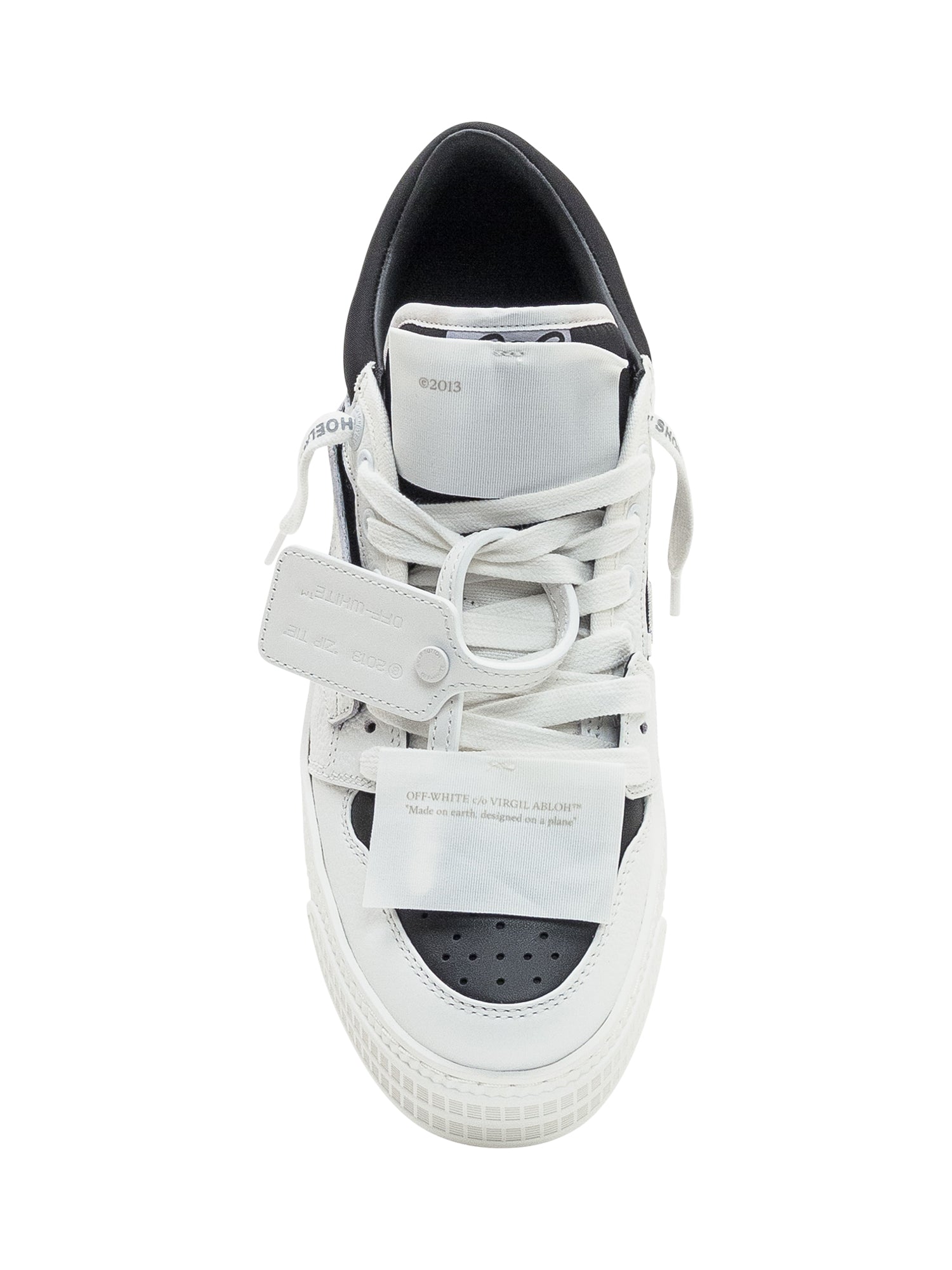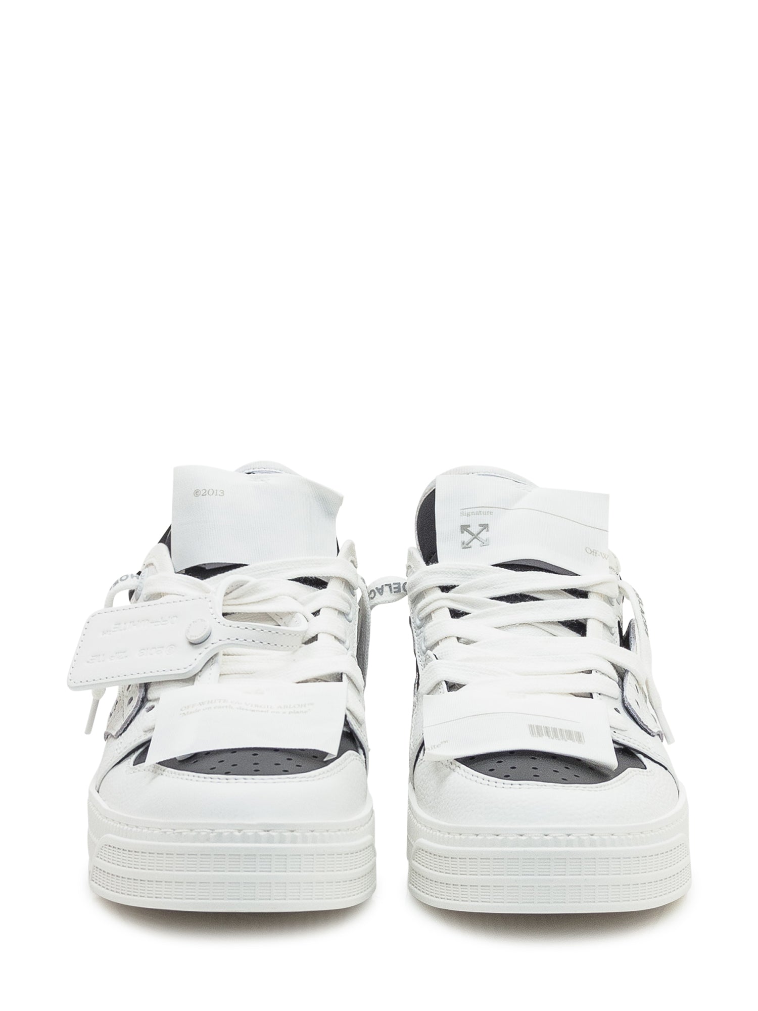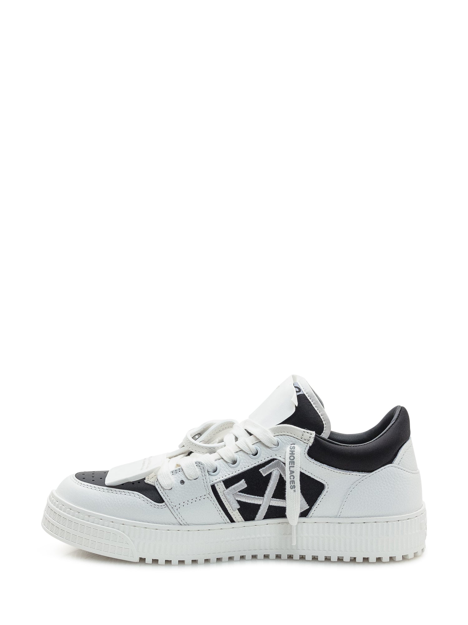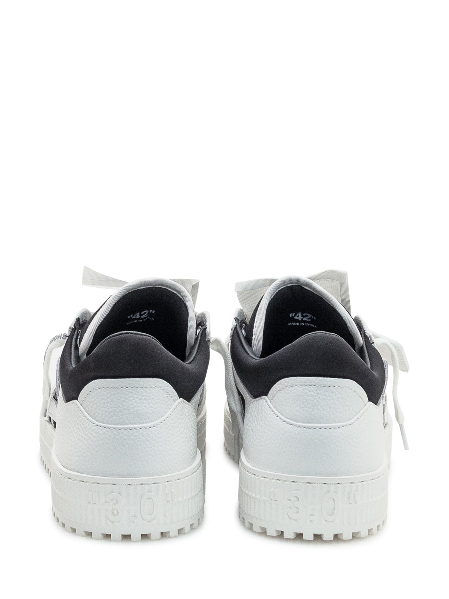 Sneaker in pelle bianca e nera con design iconico, linguetta alta e dettagli a contrasto.