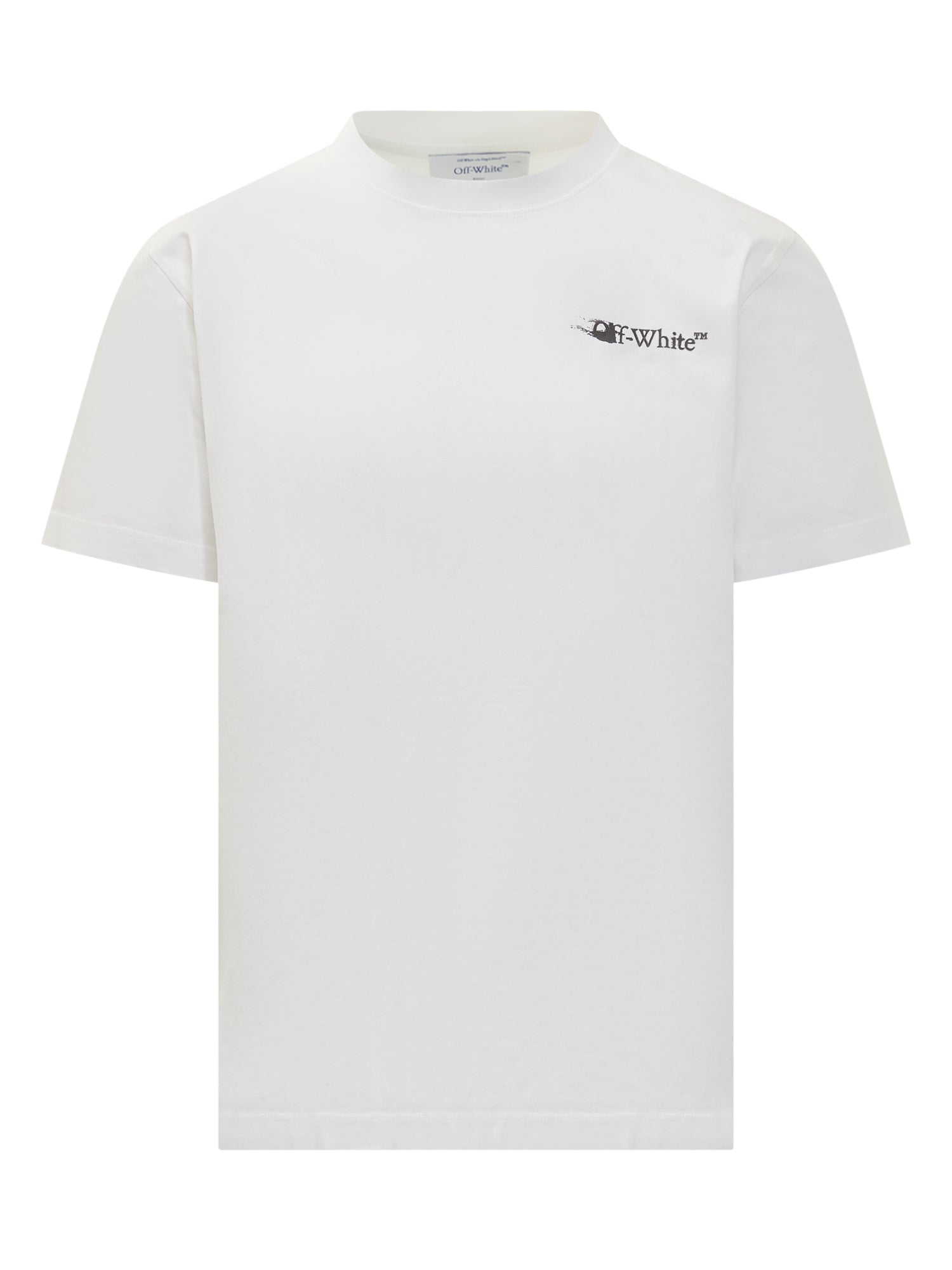 T-shirt bianca Off-White in morbido cotone, con logo stampato sul petto.