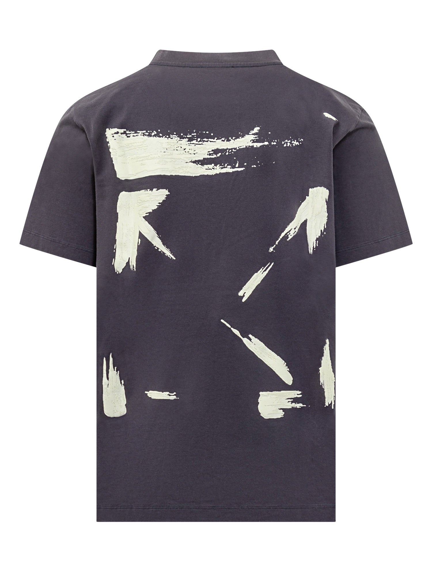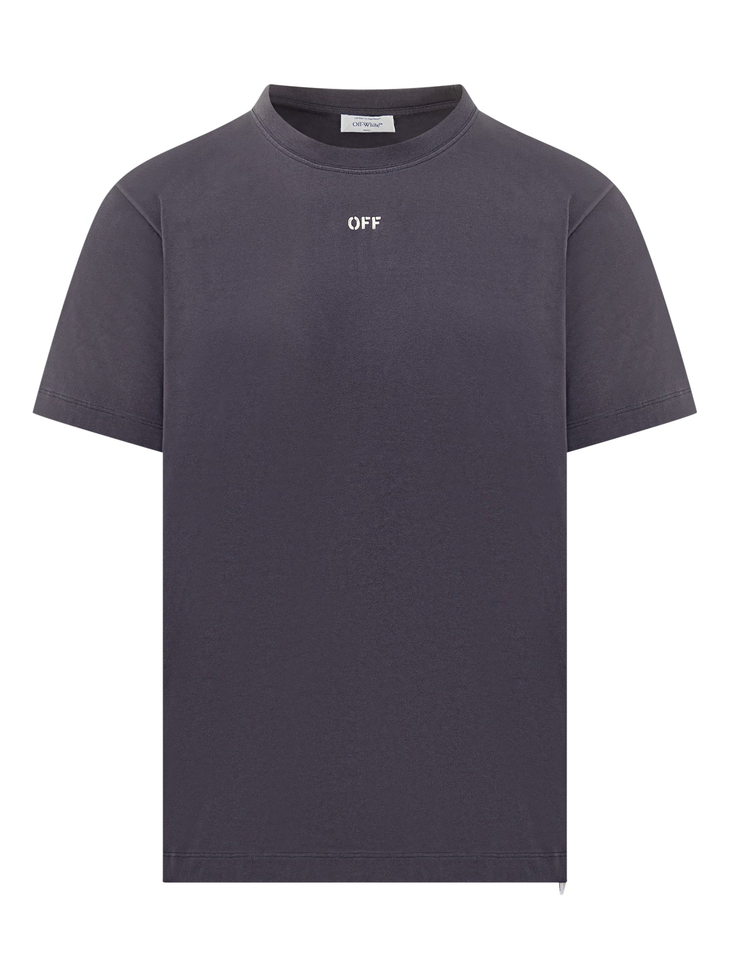 T-shirt in cotone grigio scuro firmata Off-White, con piccolo logo ricamato sul petto.