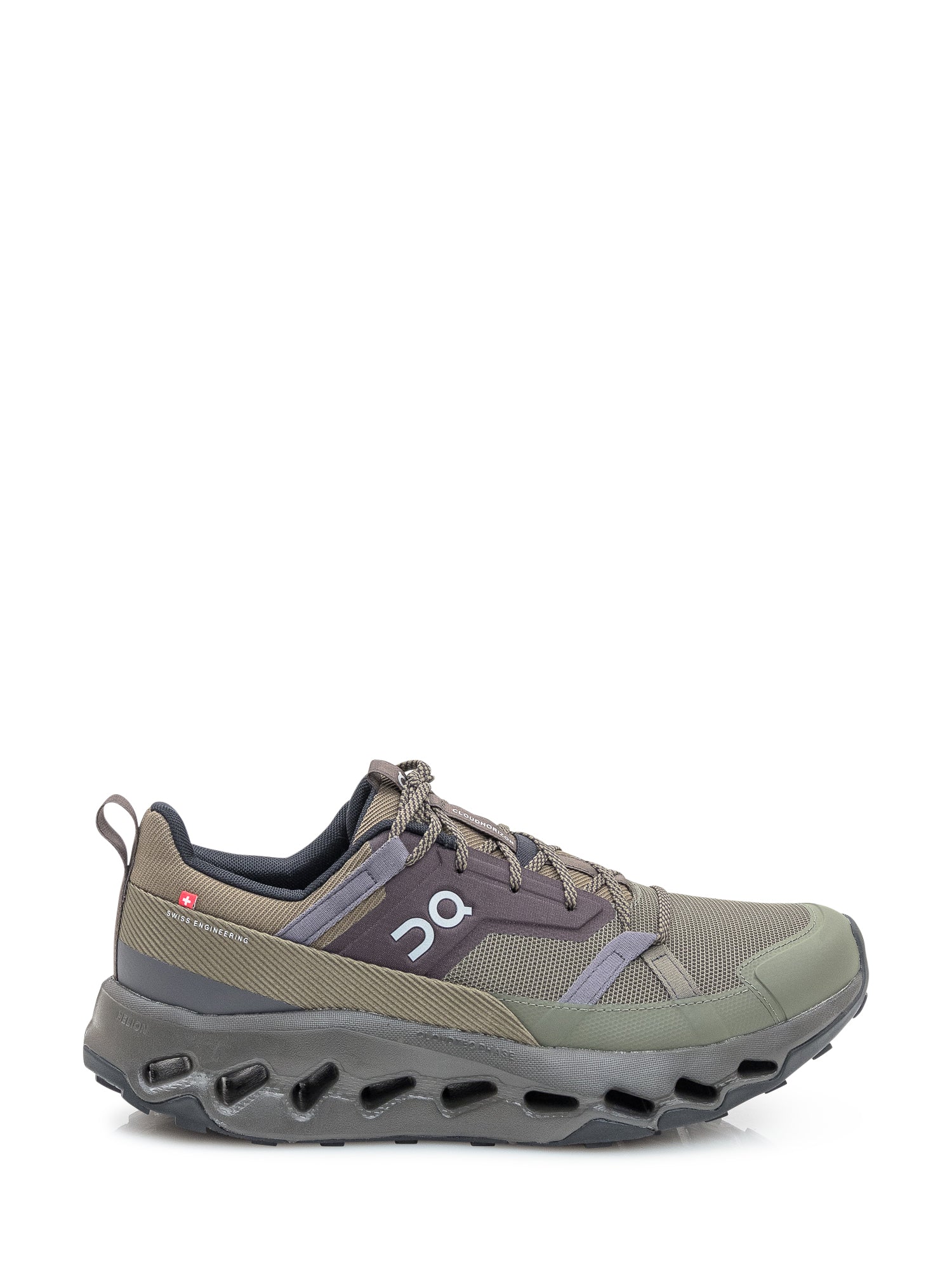 Sneakers On Cloudhorizon in tessuto tecnico verde e grigio con suola ammortizzata. Resistenti e confortevoli.