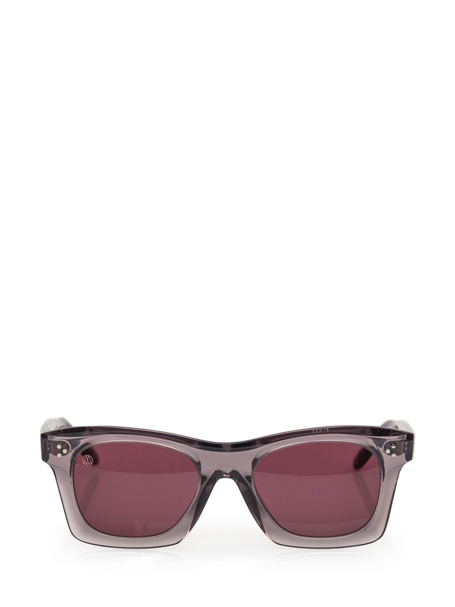 Occhiali da sole neri. Lenti viola. Forma quadrata.