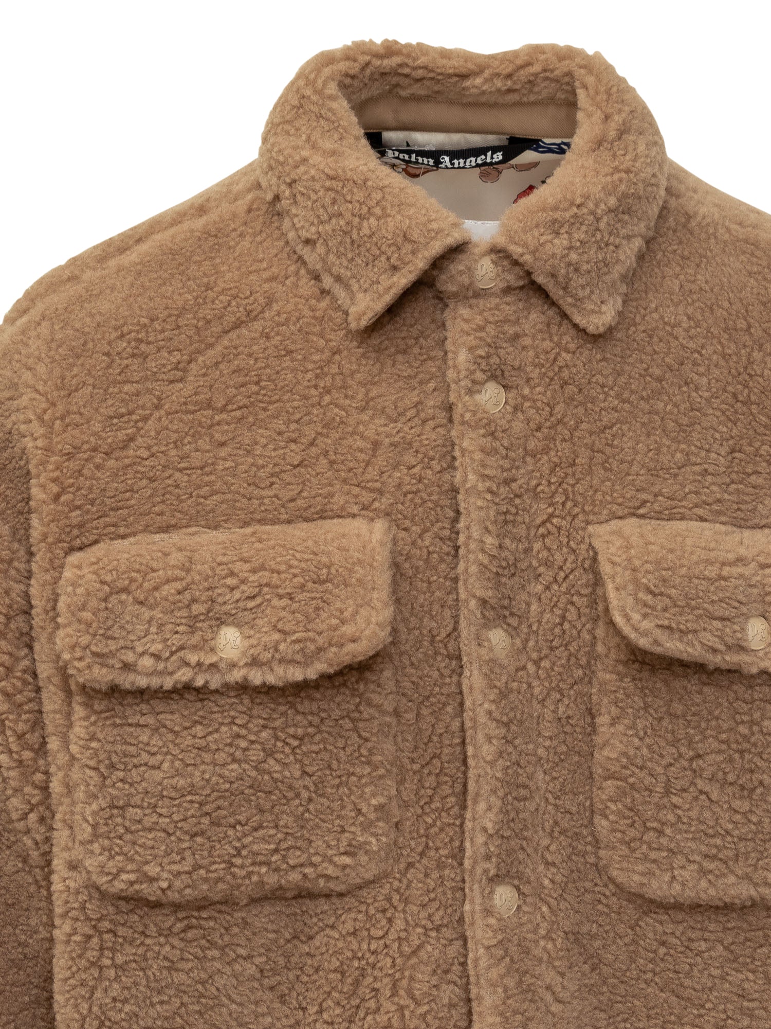 Giacca effetto teddy a maniche lunghe. Colletto classico. Chiusura con bottoni. Polsi con bottoni. Due tasche con patta e bottone sul petto. Logo ricamato sul retro.