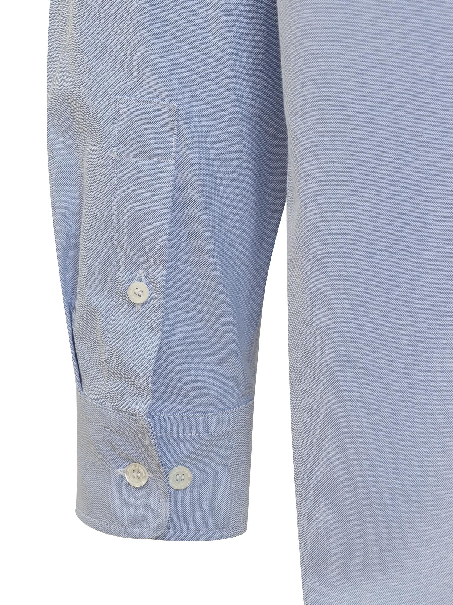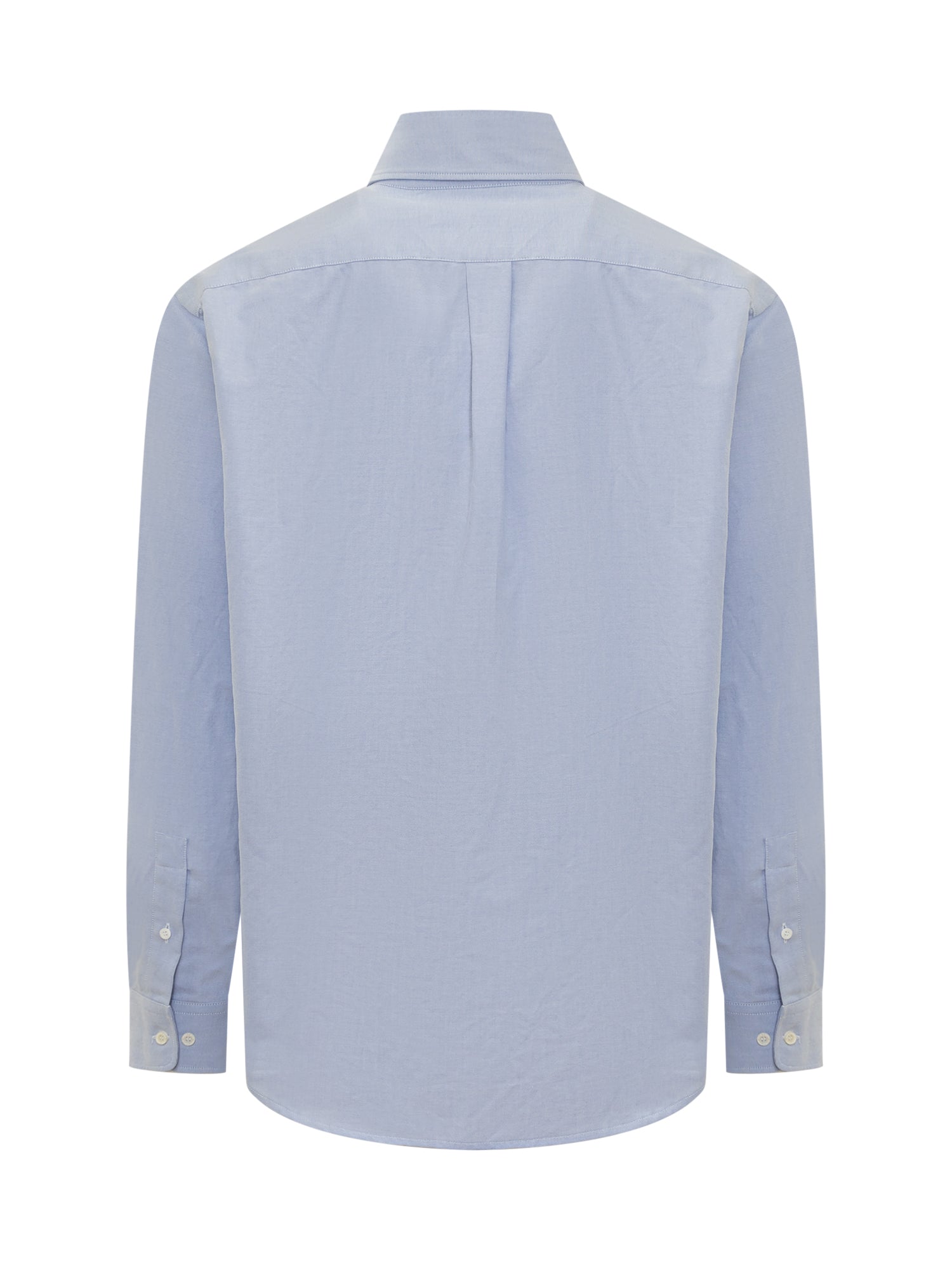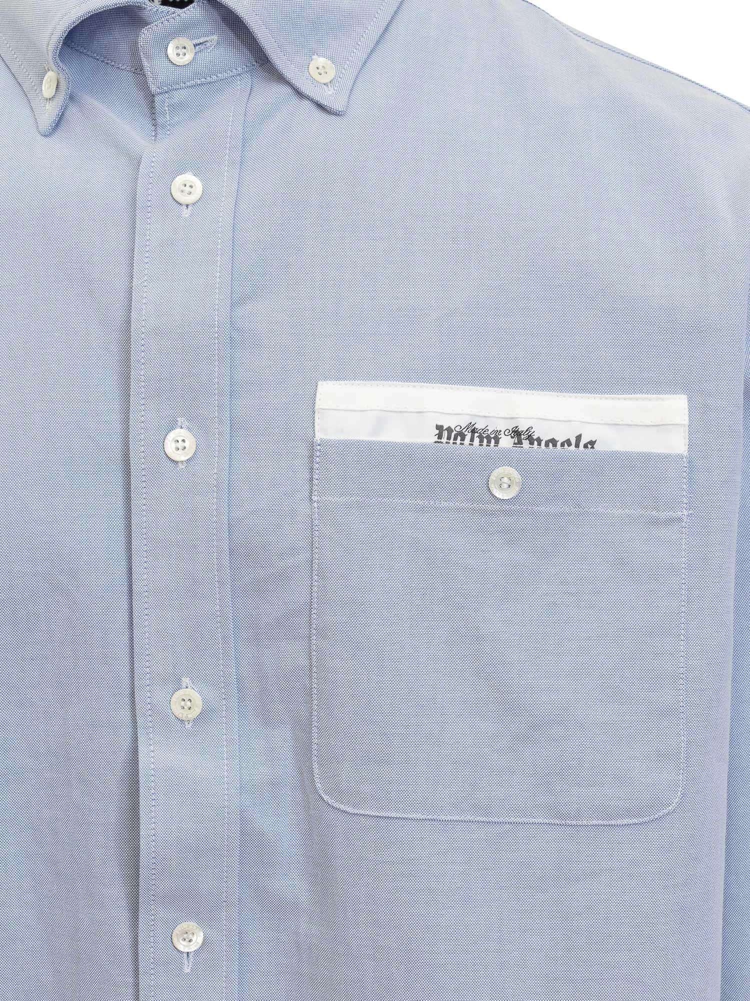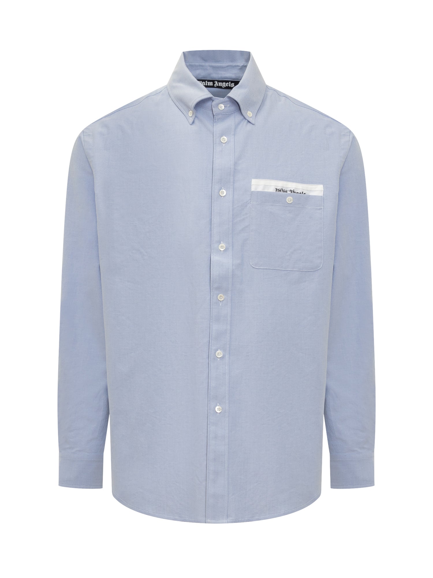 Camicia blu a maniche lunghe. Chiusura frontale con bottoni. Tasche sul petto con dettaglio. Bottoni ai polsi.