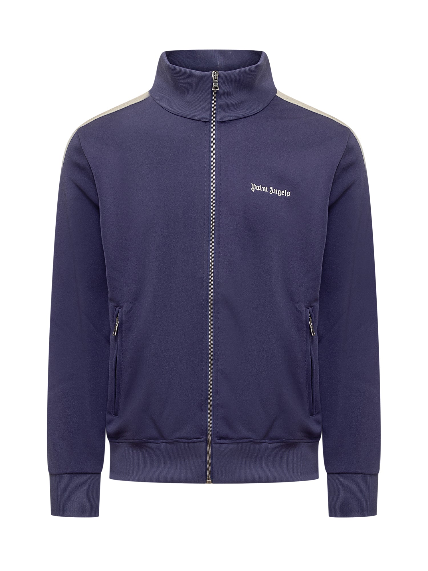 Felpa a maniche lunghe. Collo alto. Chiusura con zip sul davanti. Due tasche con zip sul davanti. Logo Palm Angels sul petto. Bande colorate sulle maniche.
