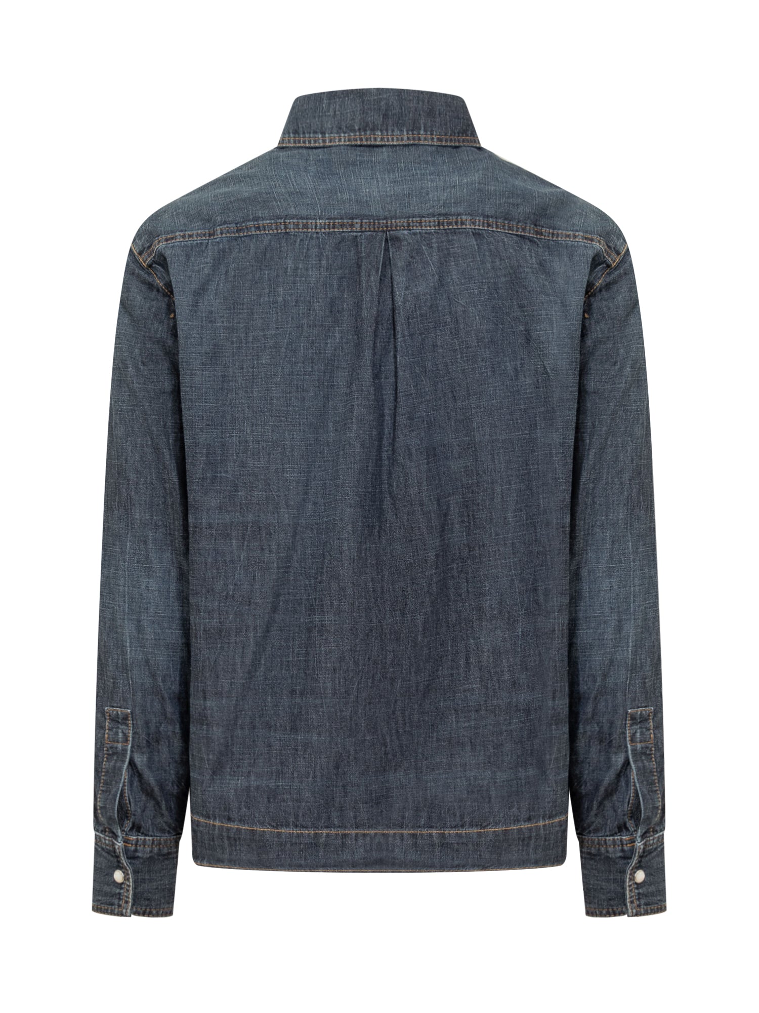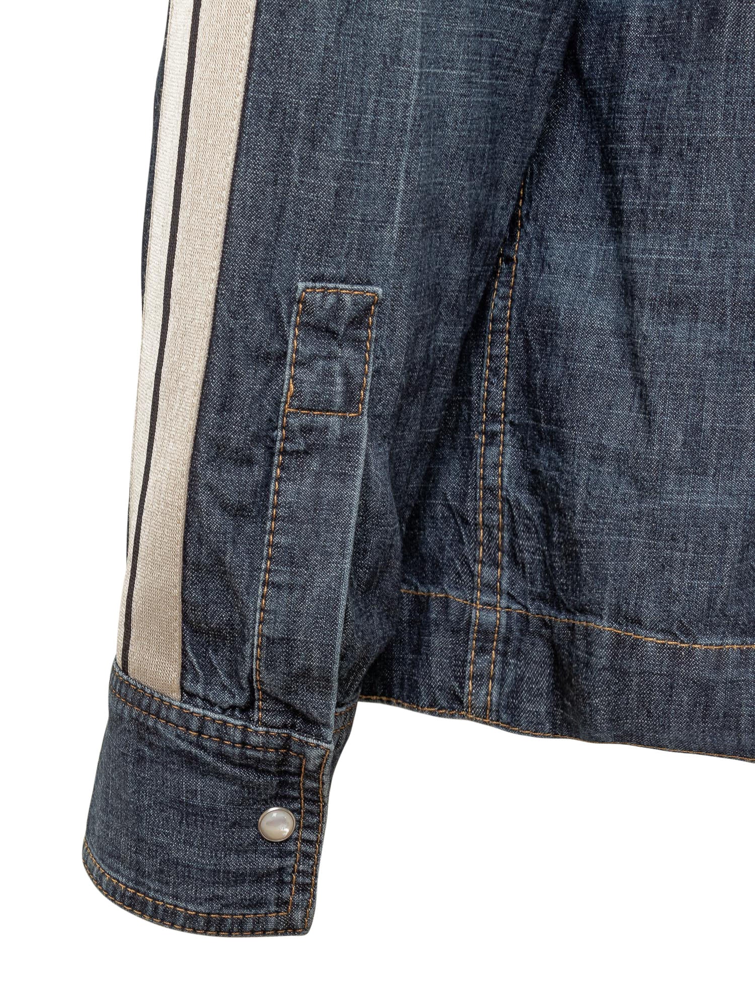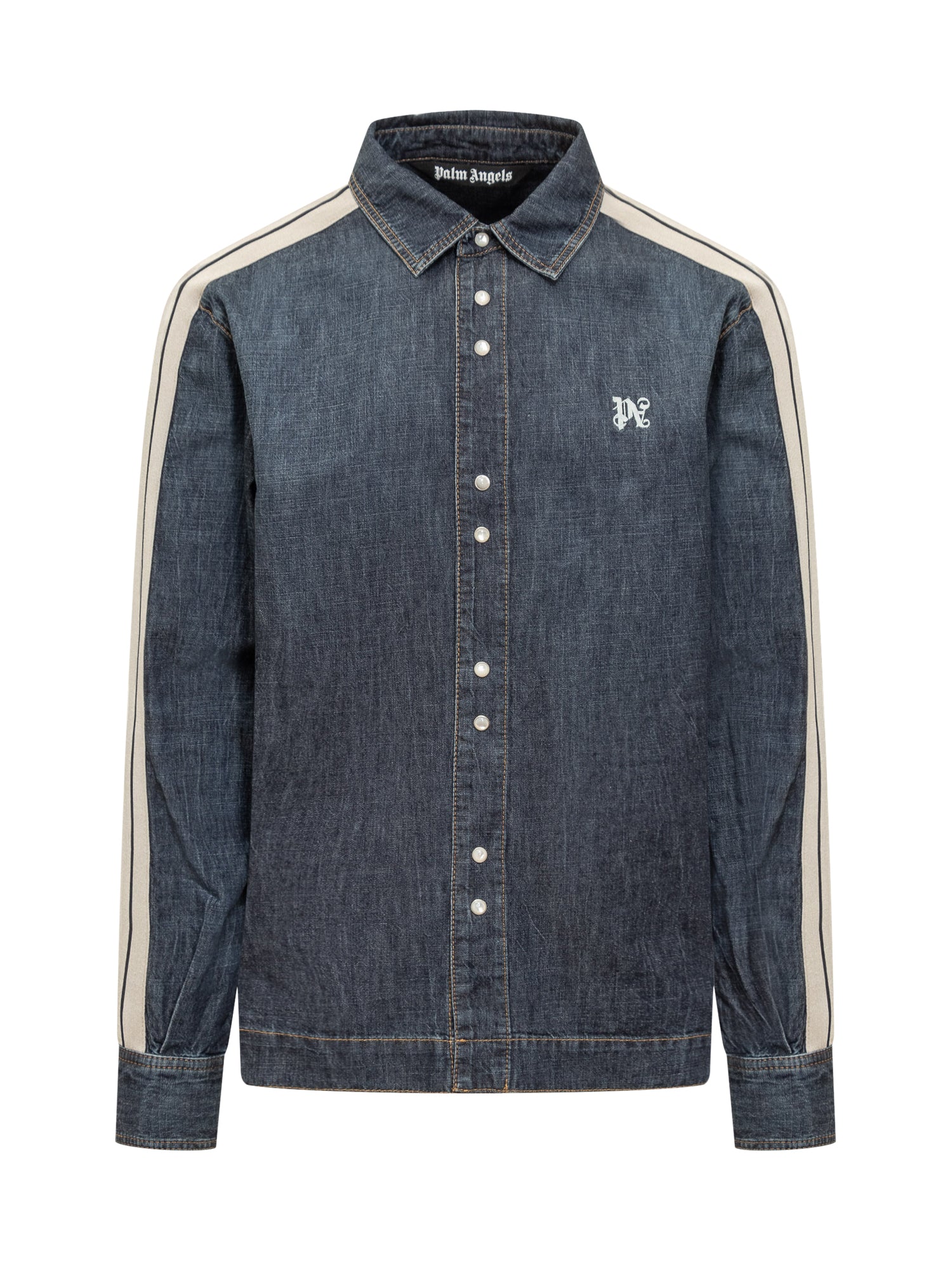 Giacca in denim di cotone. Colletto classico. Chiusura con bottoni. Polsi con bottoni. Logo Palm Angels ricamato sul davanti. Bande logate su spalle e maniche.