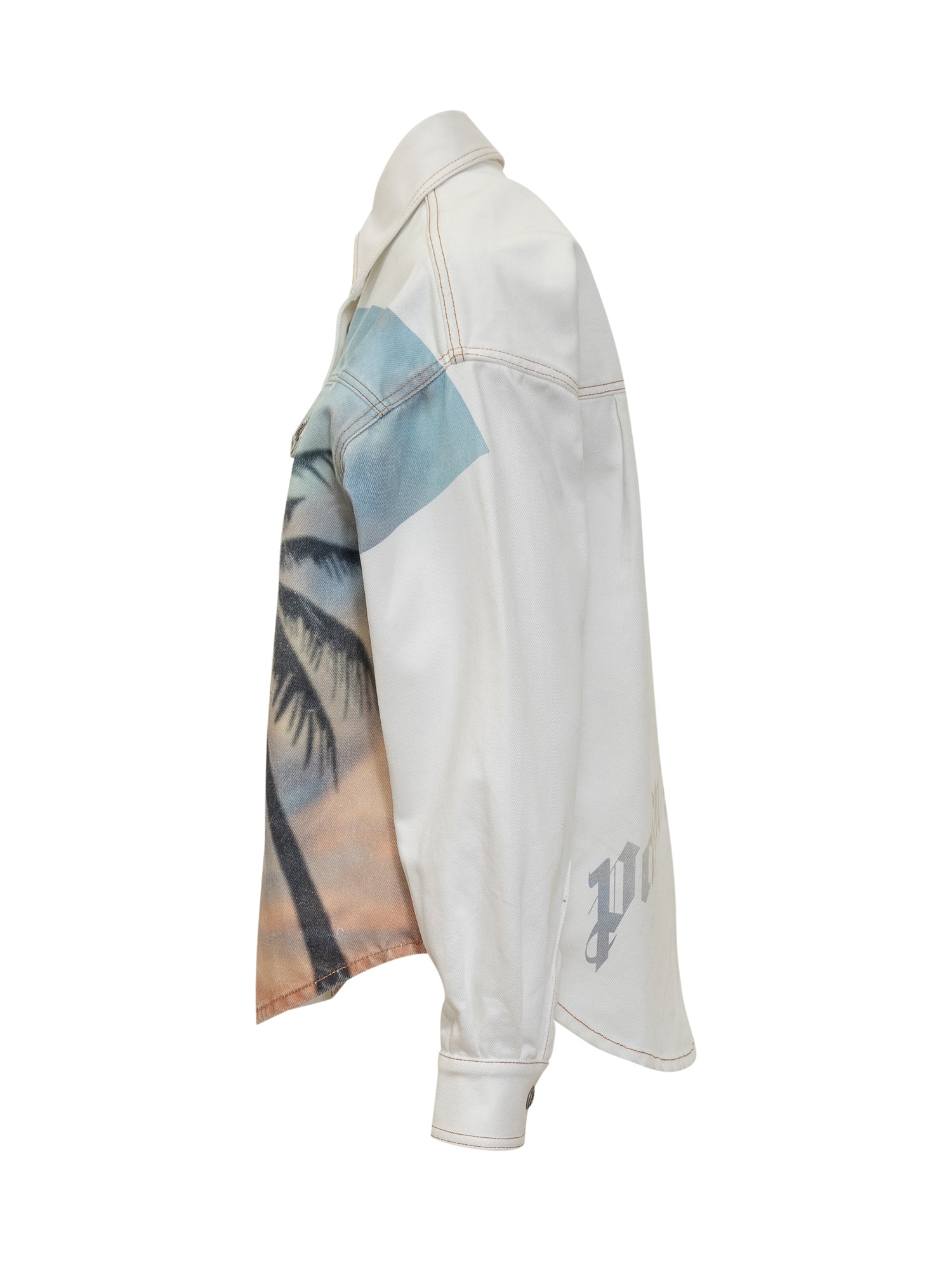 Giacca in jeans a maniche lunghe. Colletto classico. Chiusura con bottoni. Polsi con bottone. Tasche con patta e bottone sul petto. Logo sul retro. Stampa Sunrise sul davanti.