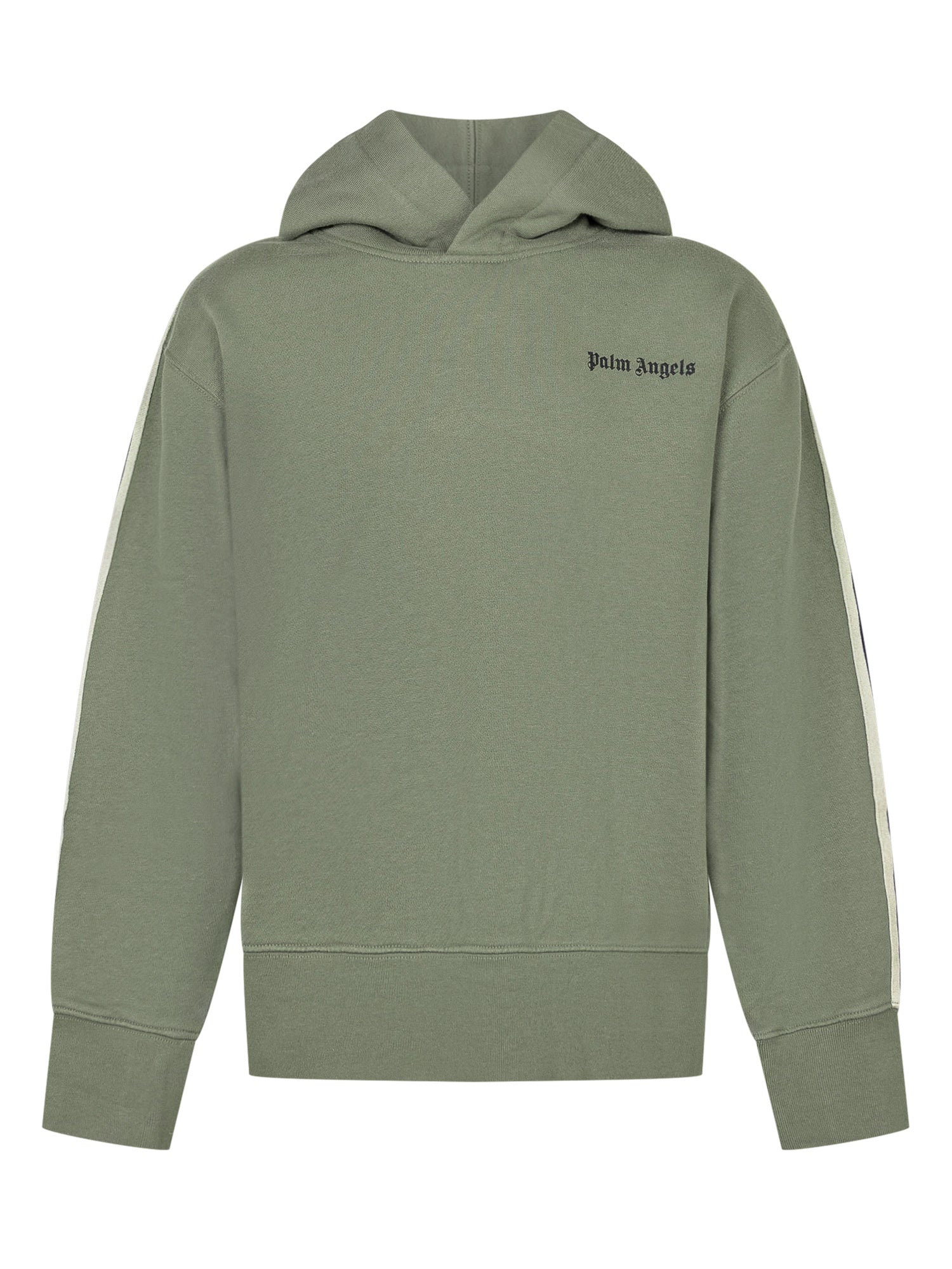 Felpa Palm Angels in cotone verde con logo ricamato sul petto e bande laterali a contrasto. Con cappuccio e maniche lunghe.