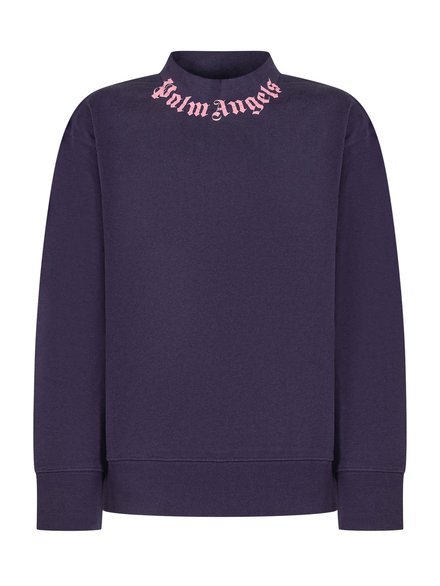 Felpa Palm Angels Kids in cotone viola con logo rosa stampato sul collo.