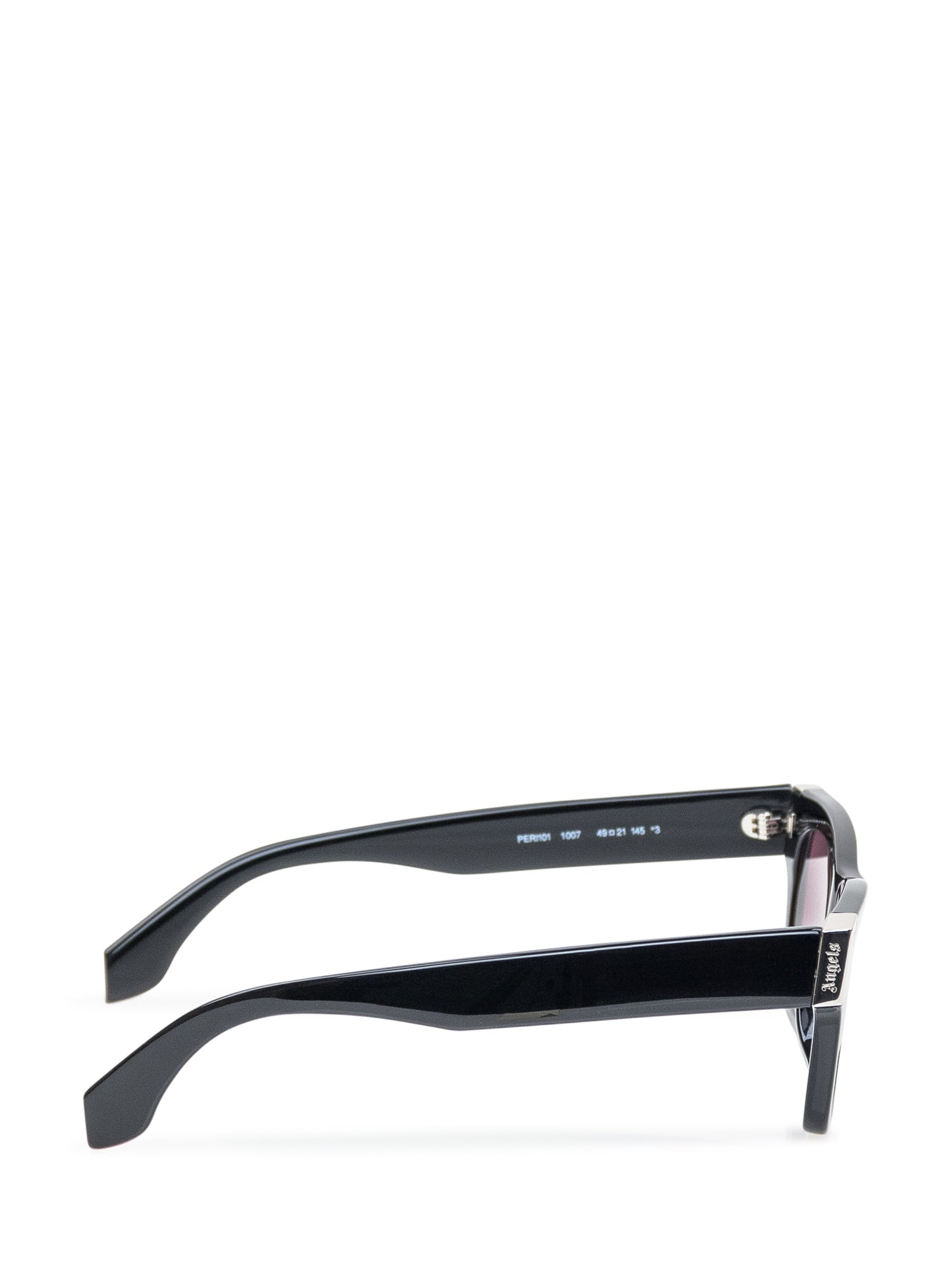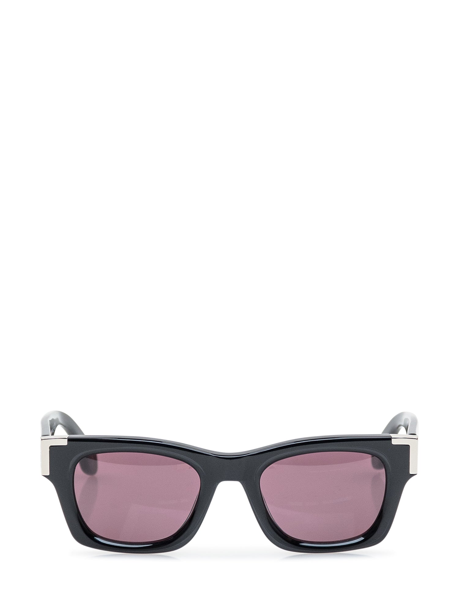 Occhiali da sole neri. Montatura squadrata. Lenti scure. Logo sul lato.