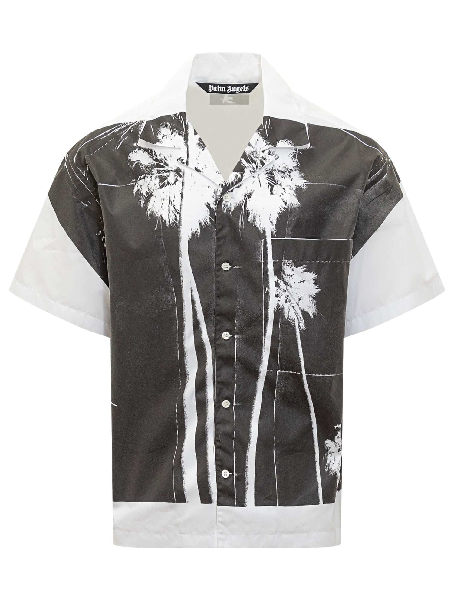 Camicia Palm Angels in cotone con stampa palme a contrasto.