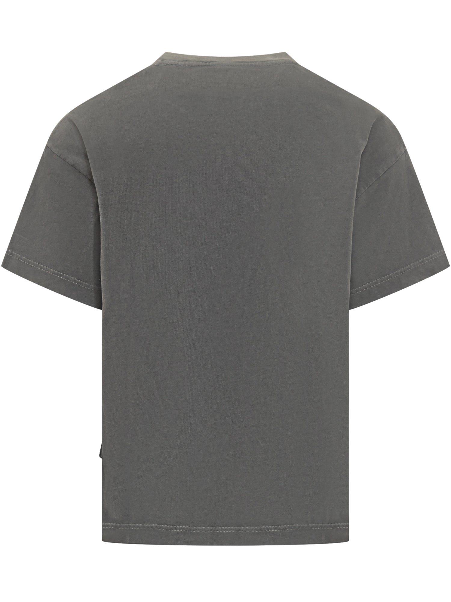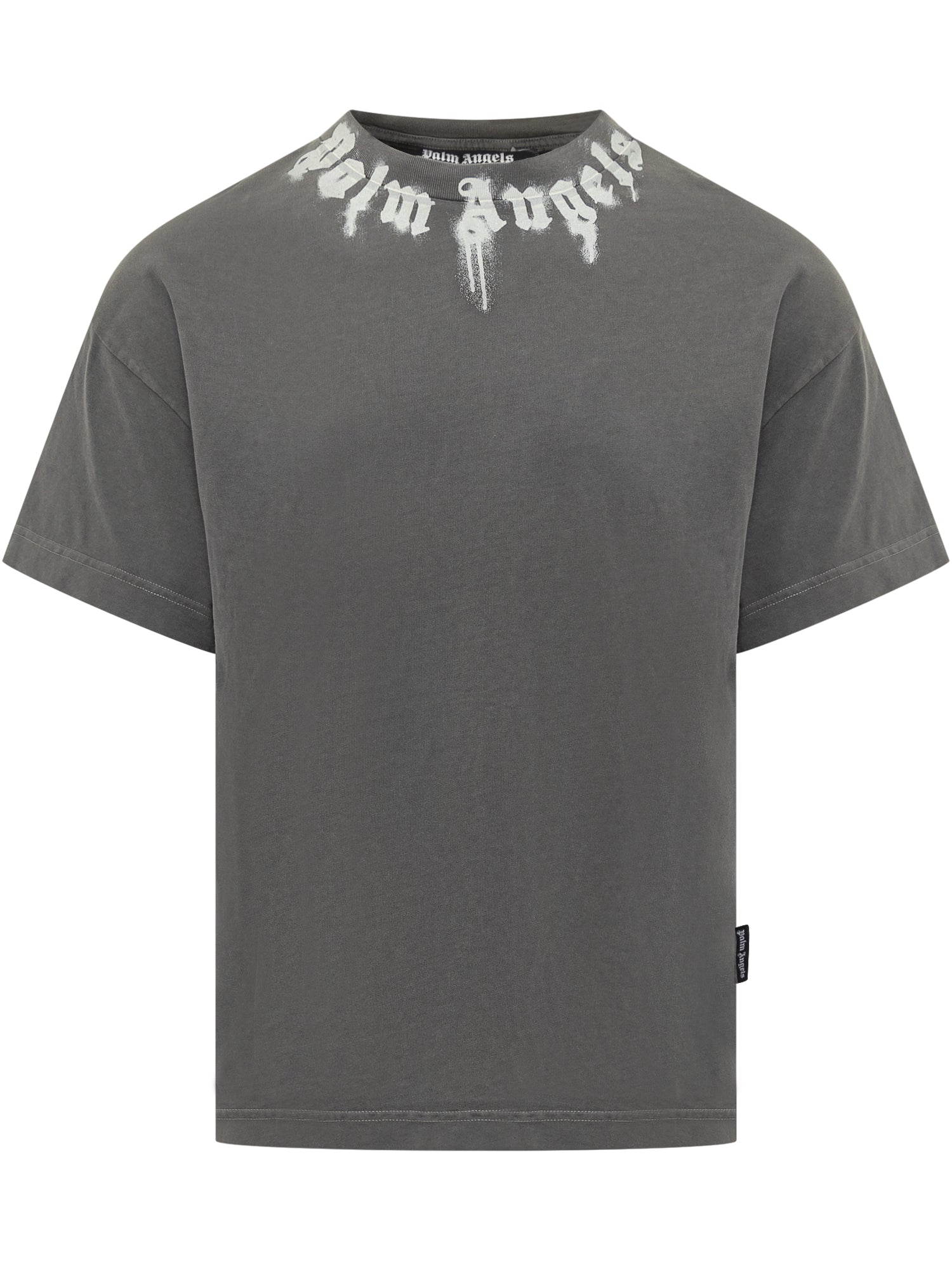 T-shirt Palm Angels in cotone grigio con logo effetto spray sul girocollo.
