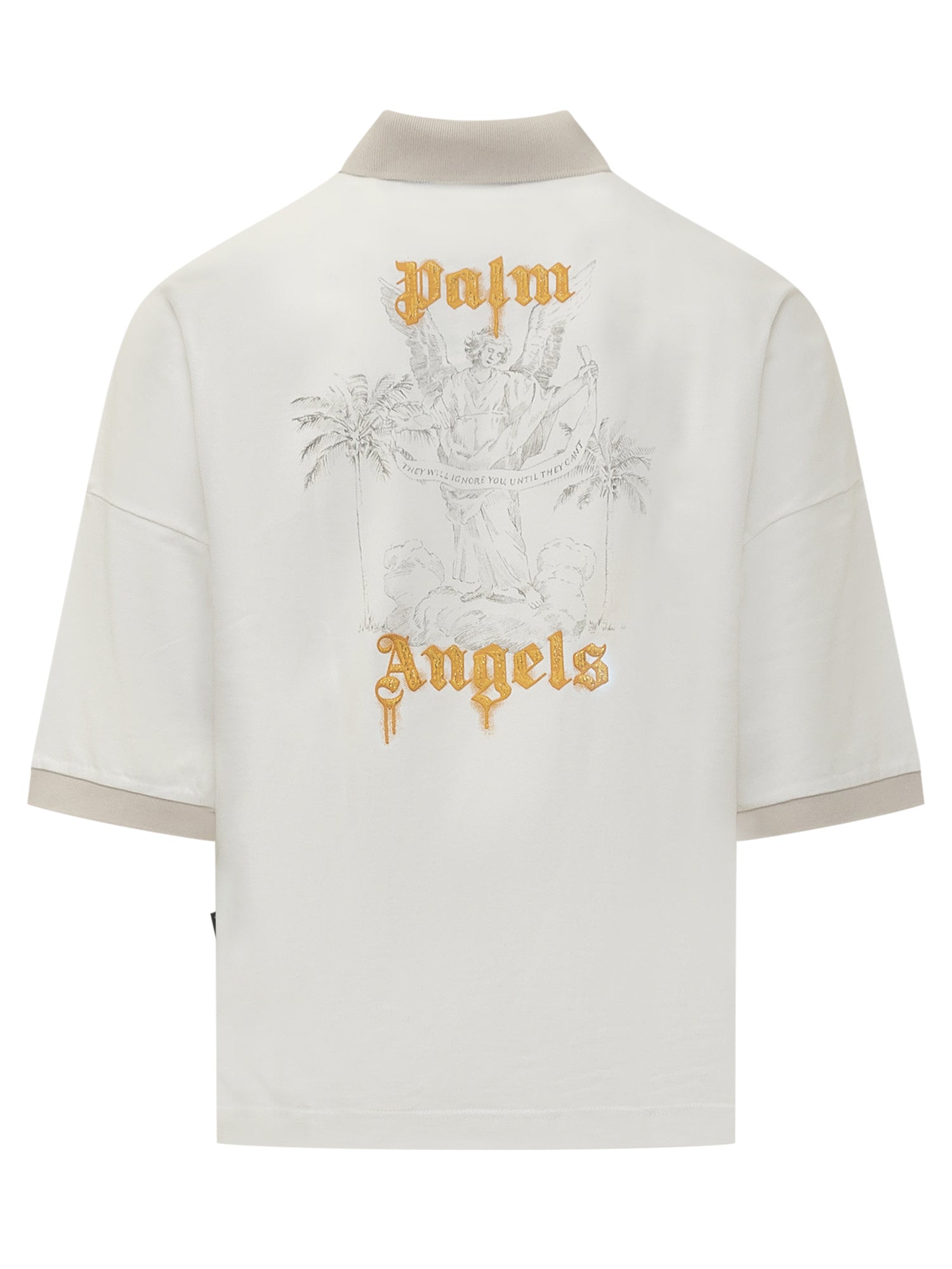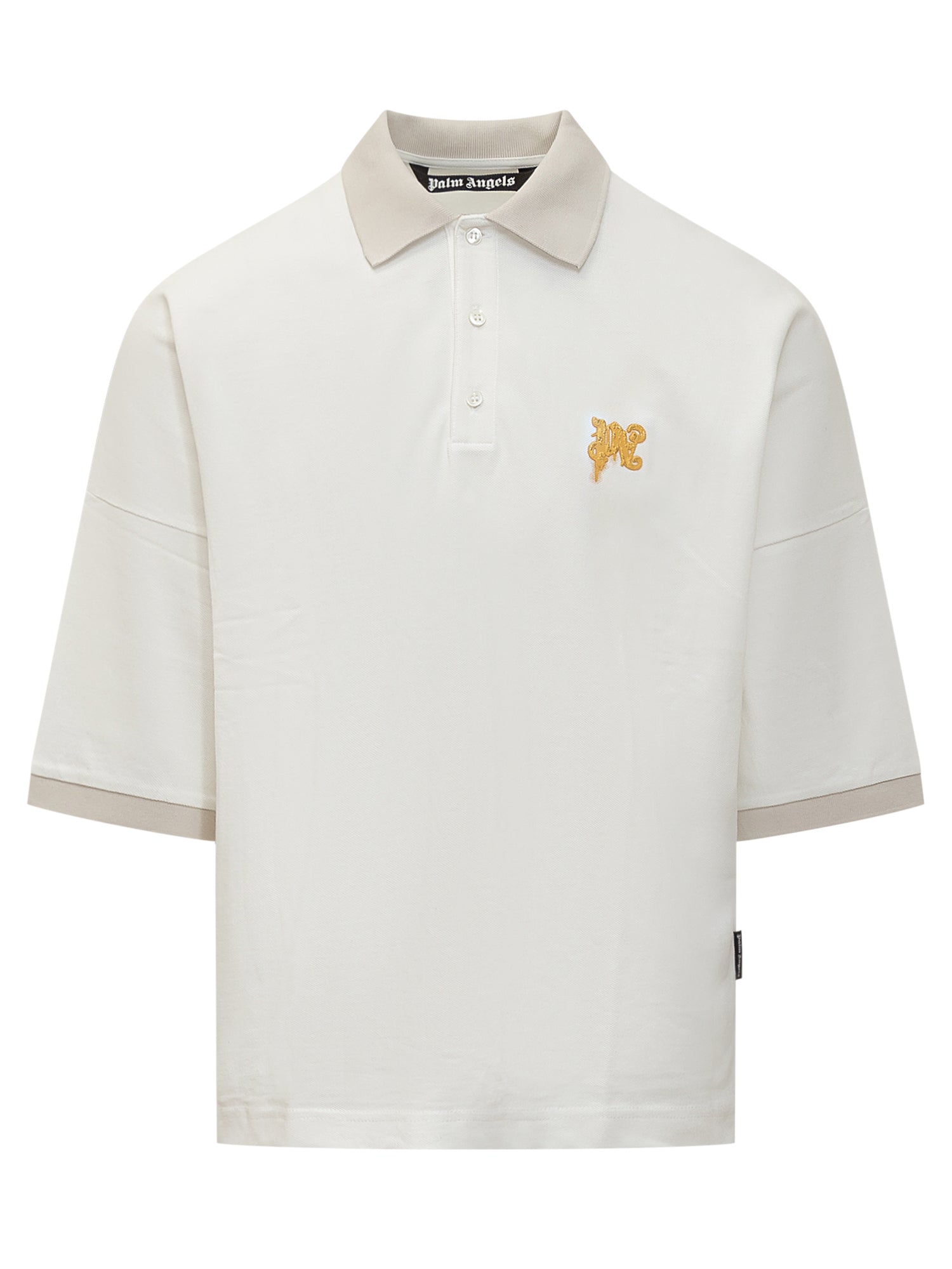 Polo a maniche corte in cotone. Colletto classico. Orli a costine a contrasto. Chiusura con tre bottoni. Logo PA ricamato sul petto. Stampa e logo Palm Angels ricamato sul retro. Targhetta logo sul lato.