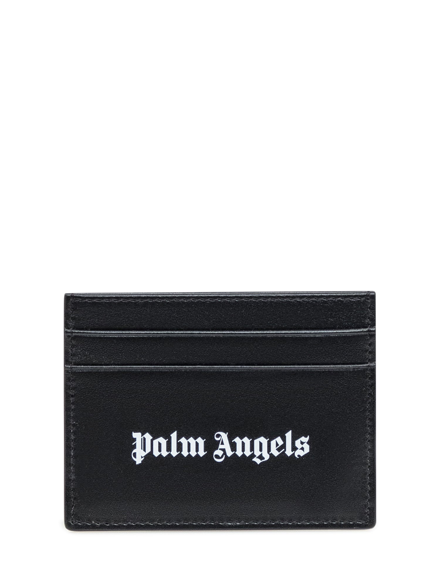 Portacarte in pelle nera. Logo PALM ANGELS stampato sul davanti.