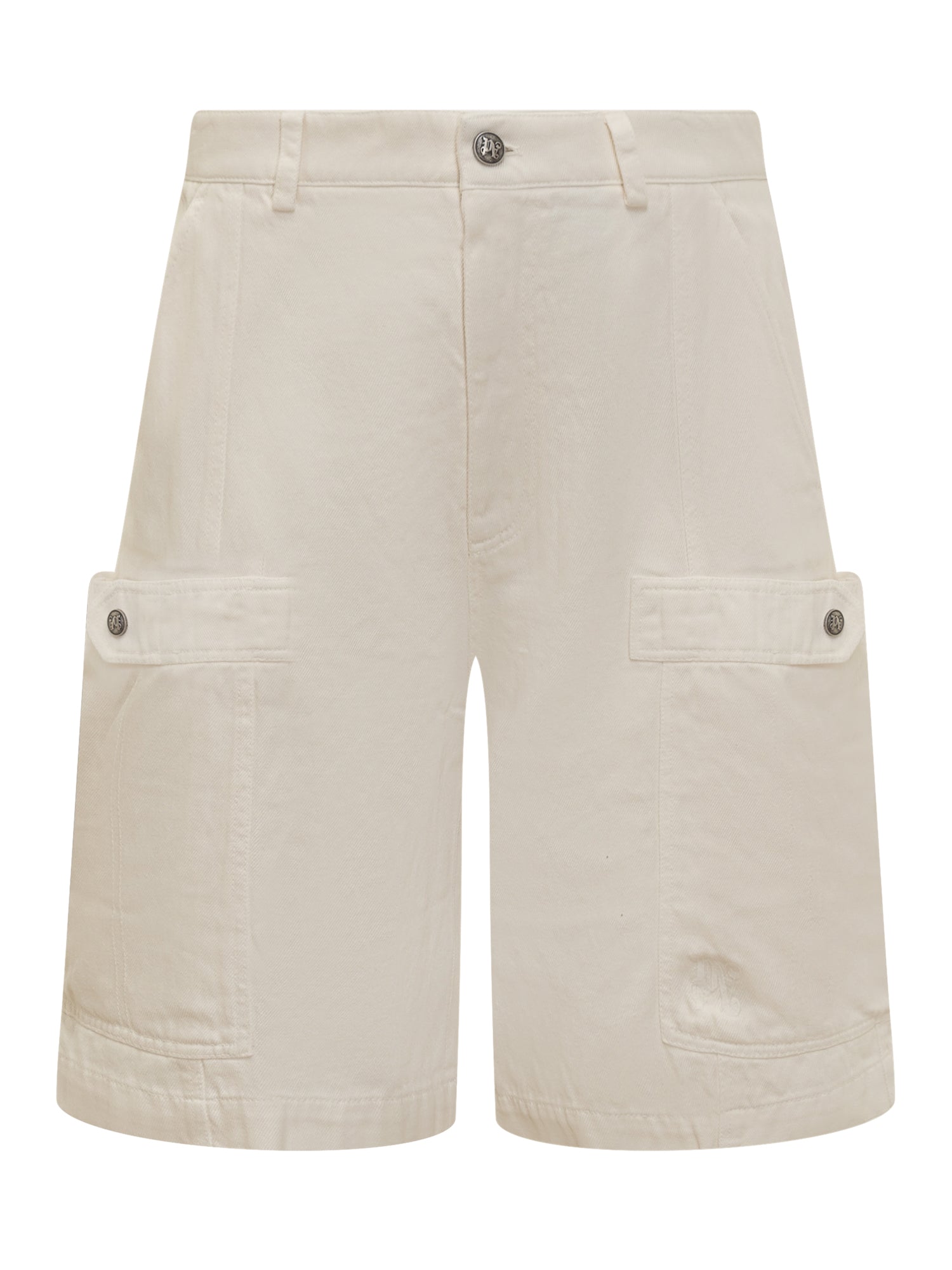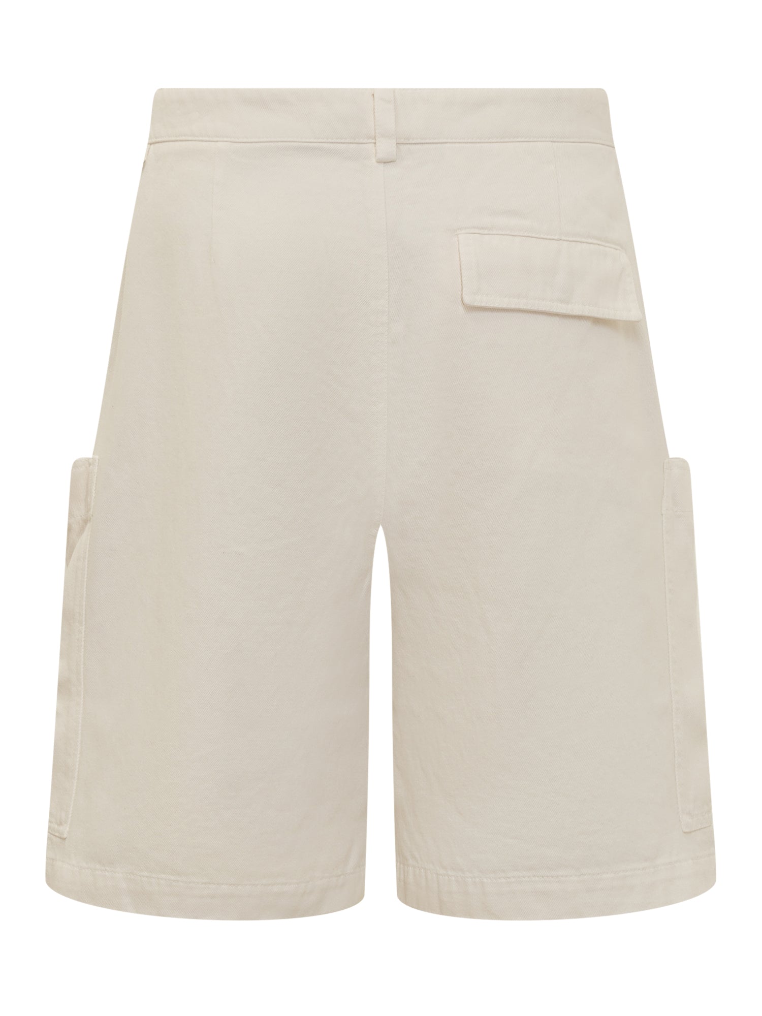 Shorts cargo. Passanti per cintura. Chiusura con zip e bottone. Due tasche oblique sul davanti. Due tasche cargo con bottone logato. Una tasca con patta sul retro.