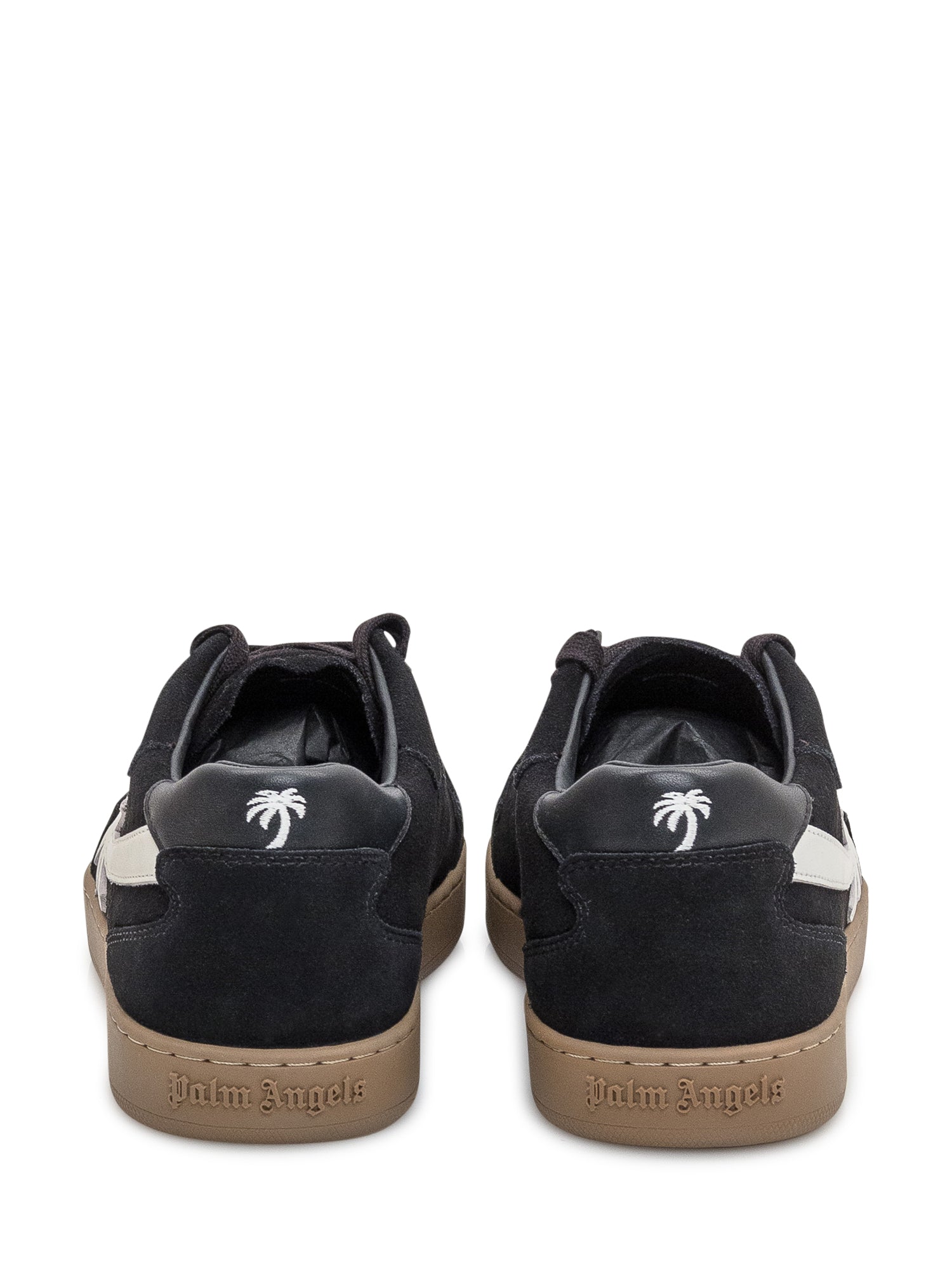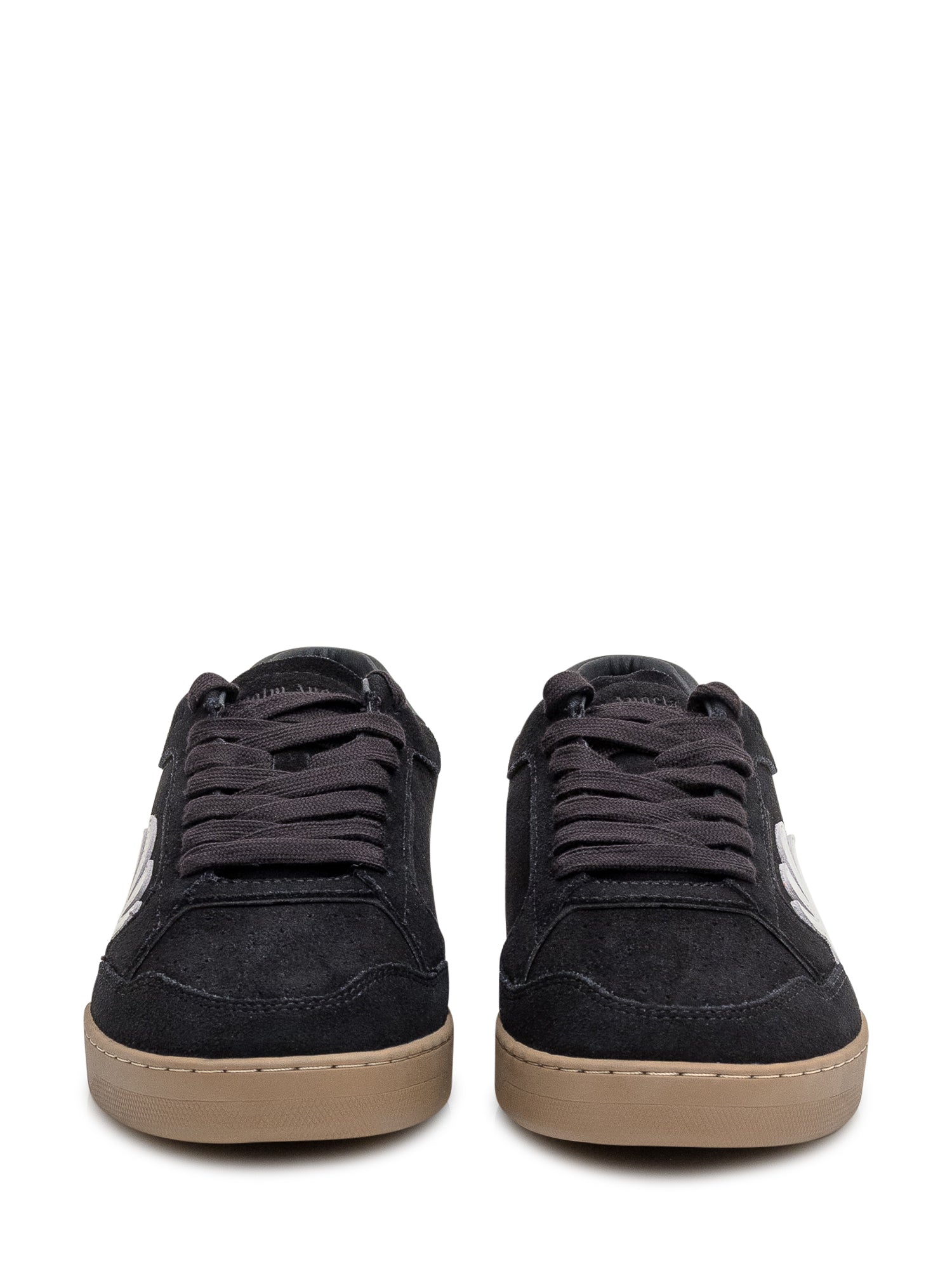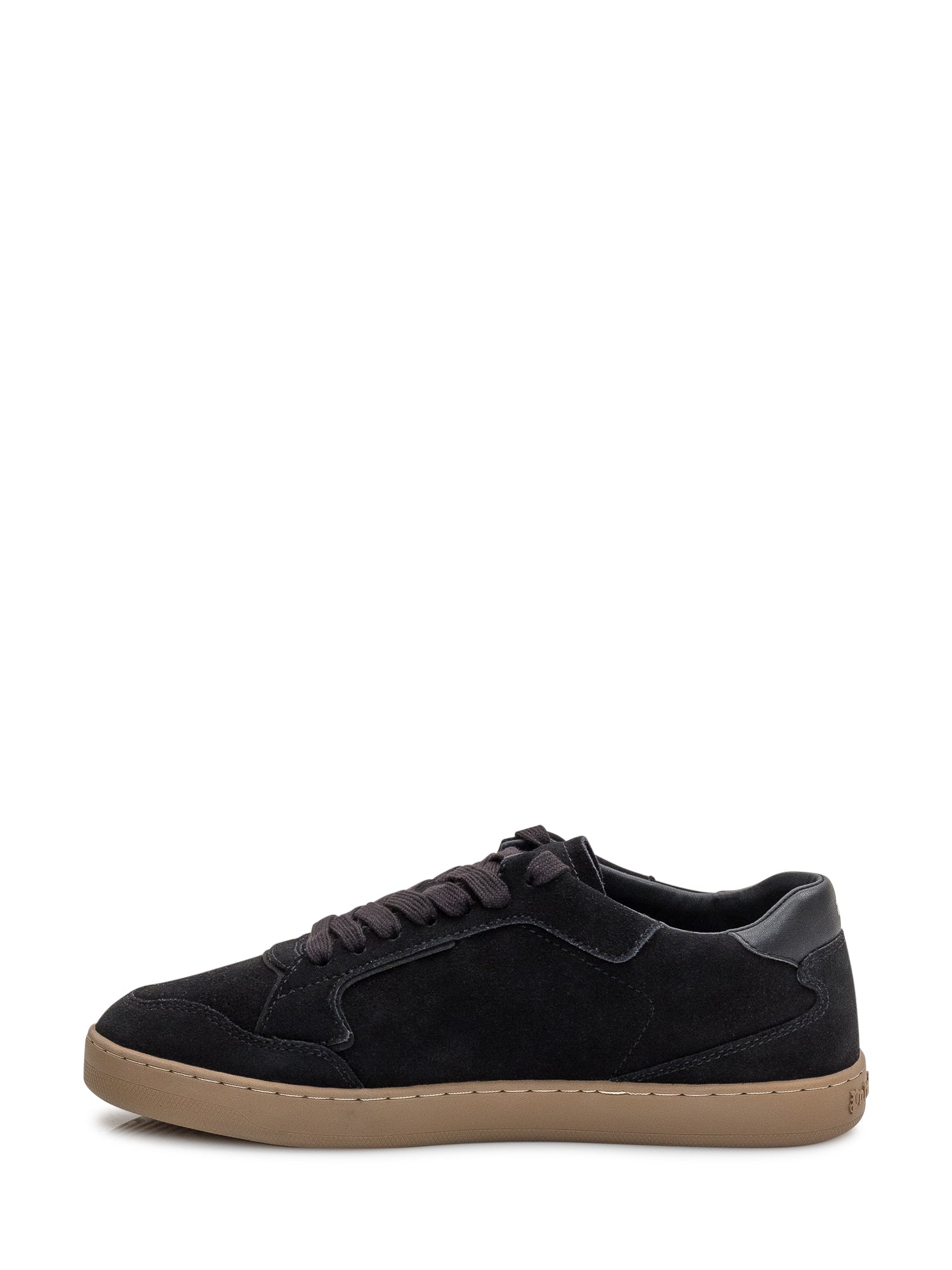 Sneaker nera in pelle scamosciata. Dettagli a contrasto. Logo su linguetta e tallone. Chiusura con lacci.