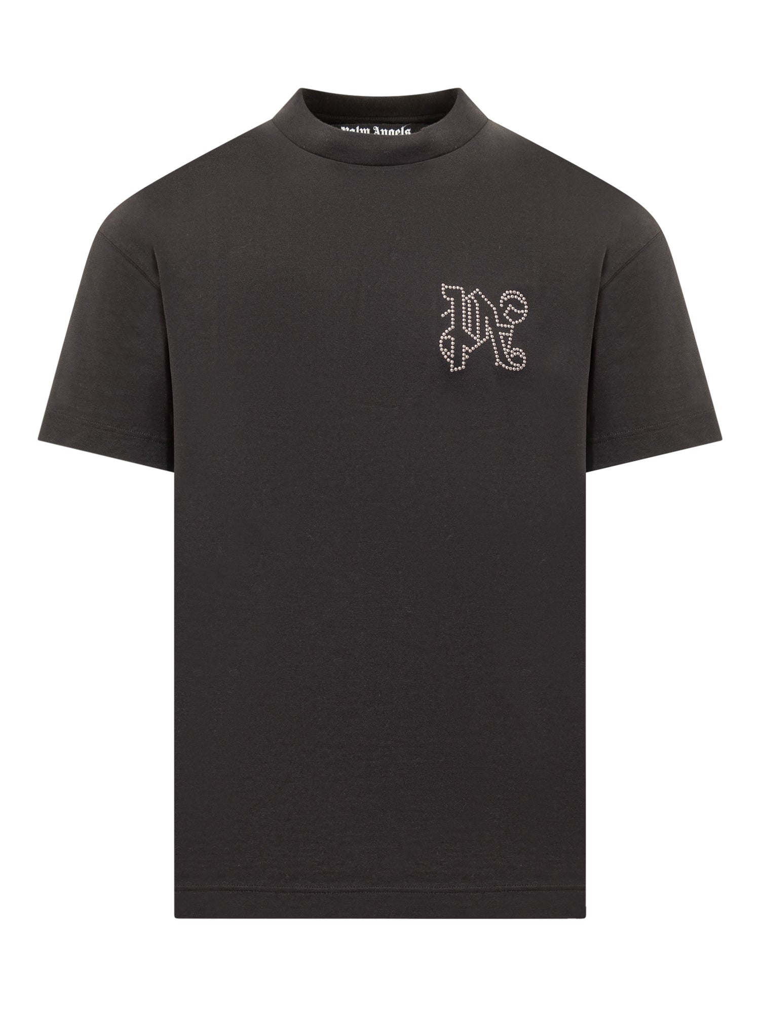T-shirt a maniche corte in cotone. Girocollo. Orli a costine. Monogram Palm Angels con strass applicati sul davanti. Targhetta logo sul lato.