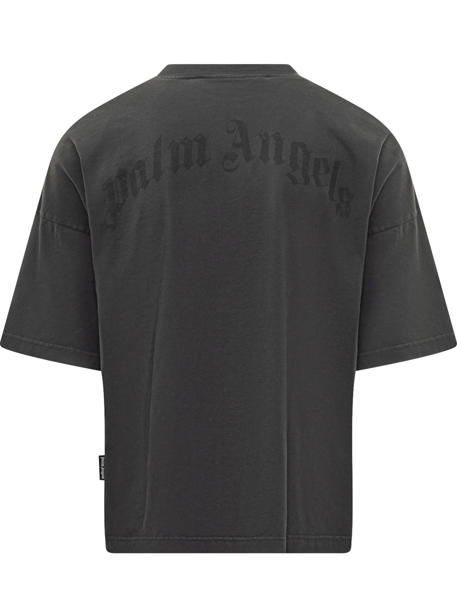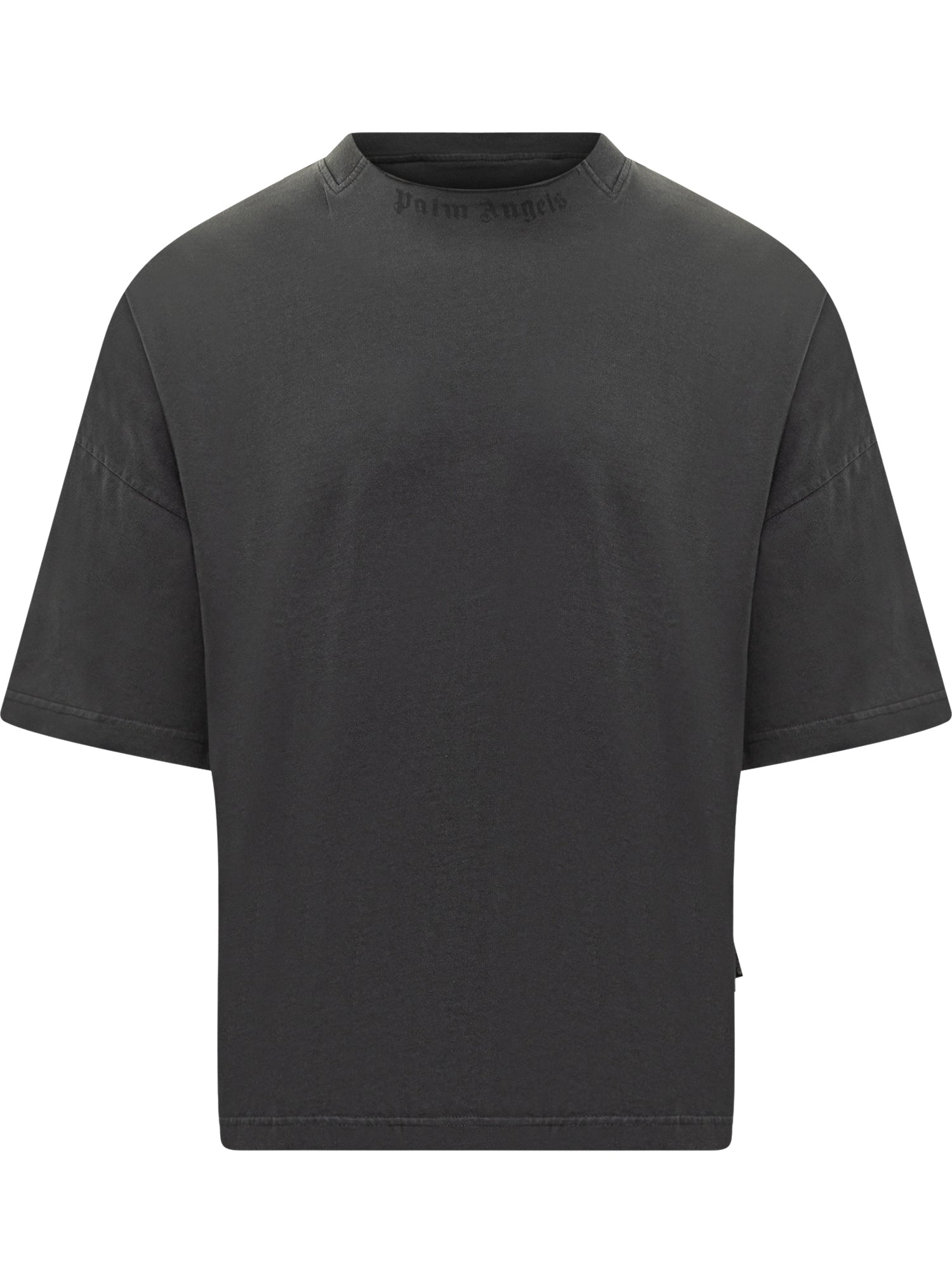 T-shirt Palm Angels in cotone nero con logo tono su tono sul girocollo. Design pulito e fit oversize.