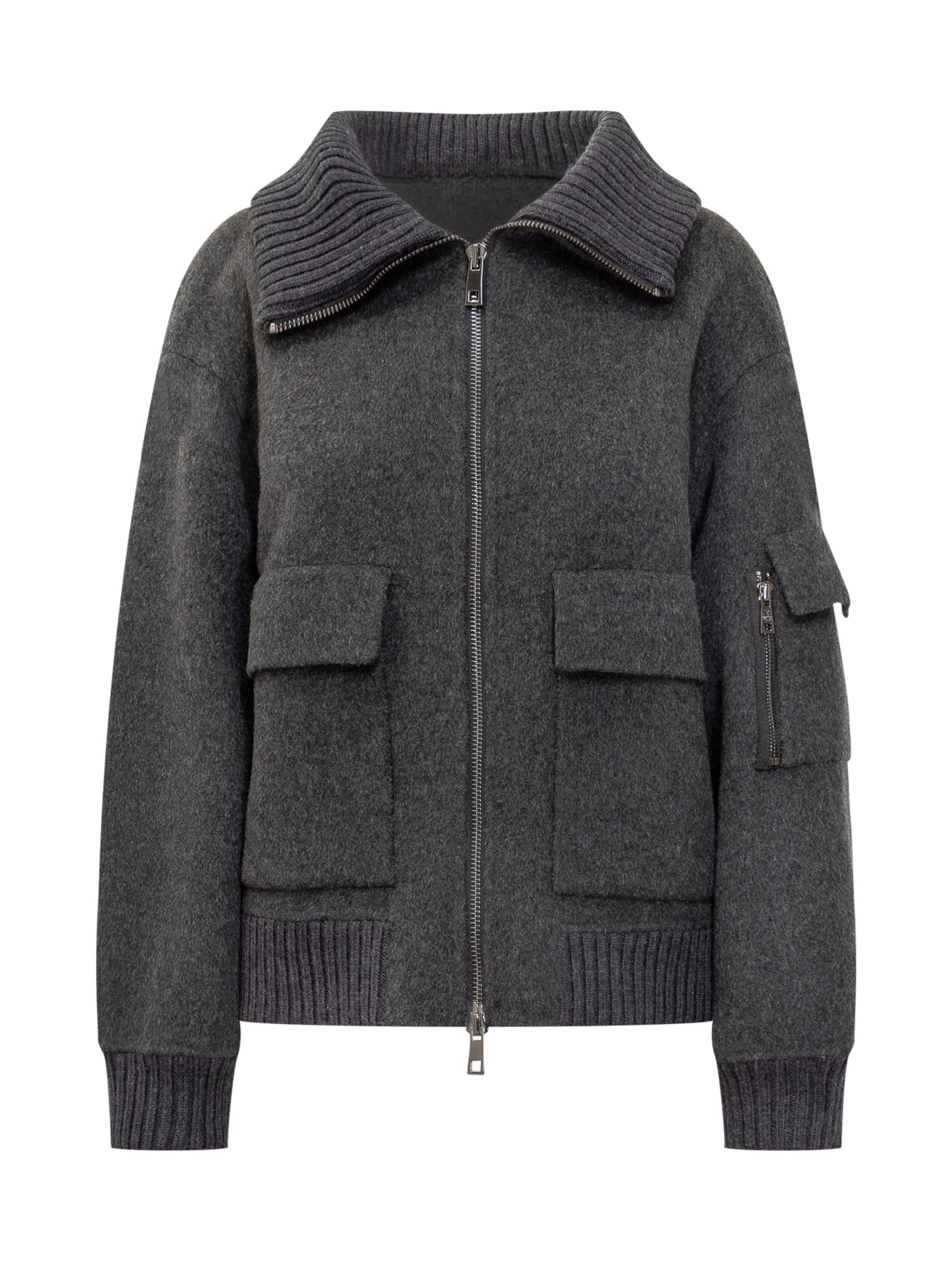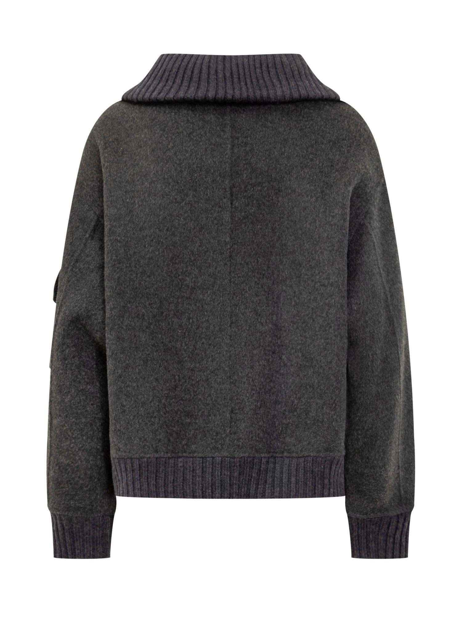 Giacca Parosh in lana grigia con zip a doppio cursore, collo a coste e tasche utility.