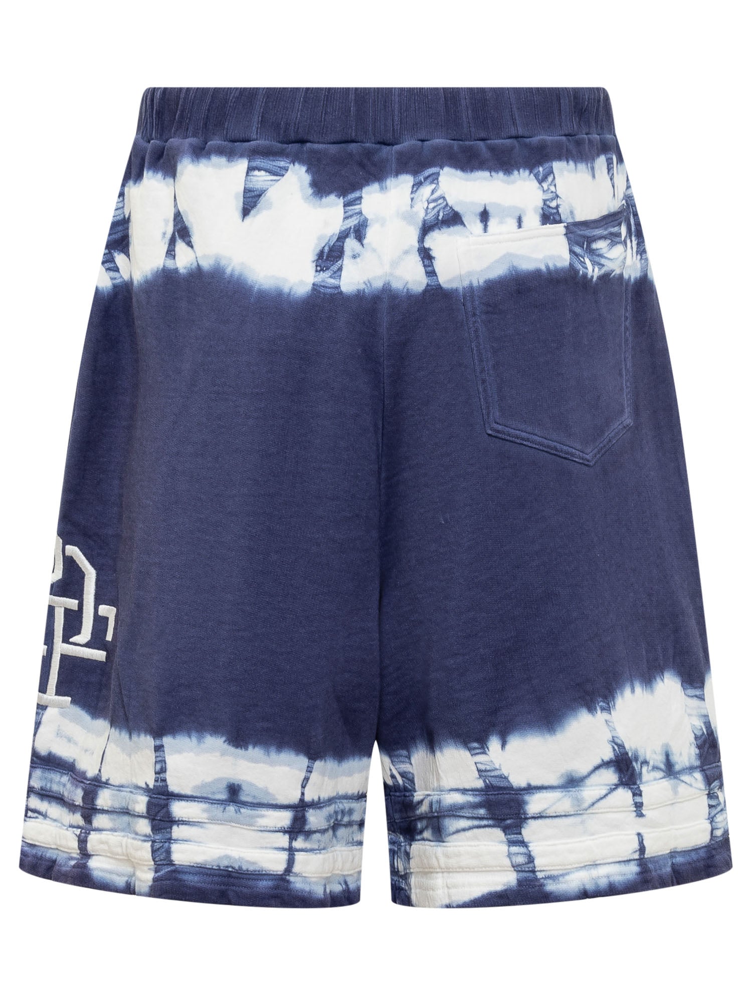 Shorts in cotone. Vita elasticizzata. Due tasche laterali. Una tasca sul retro. Logo PDF ricamato sul lato. Effetto strisce dye all over.