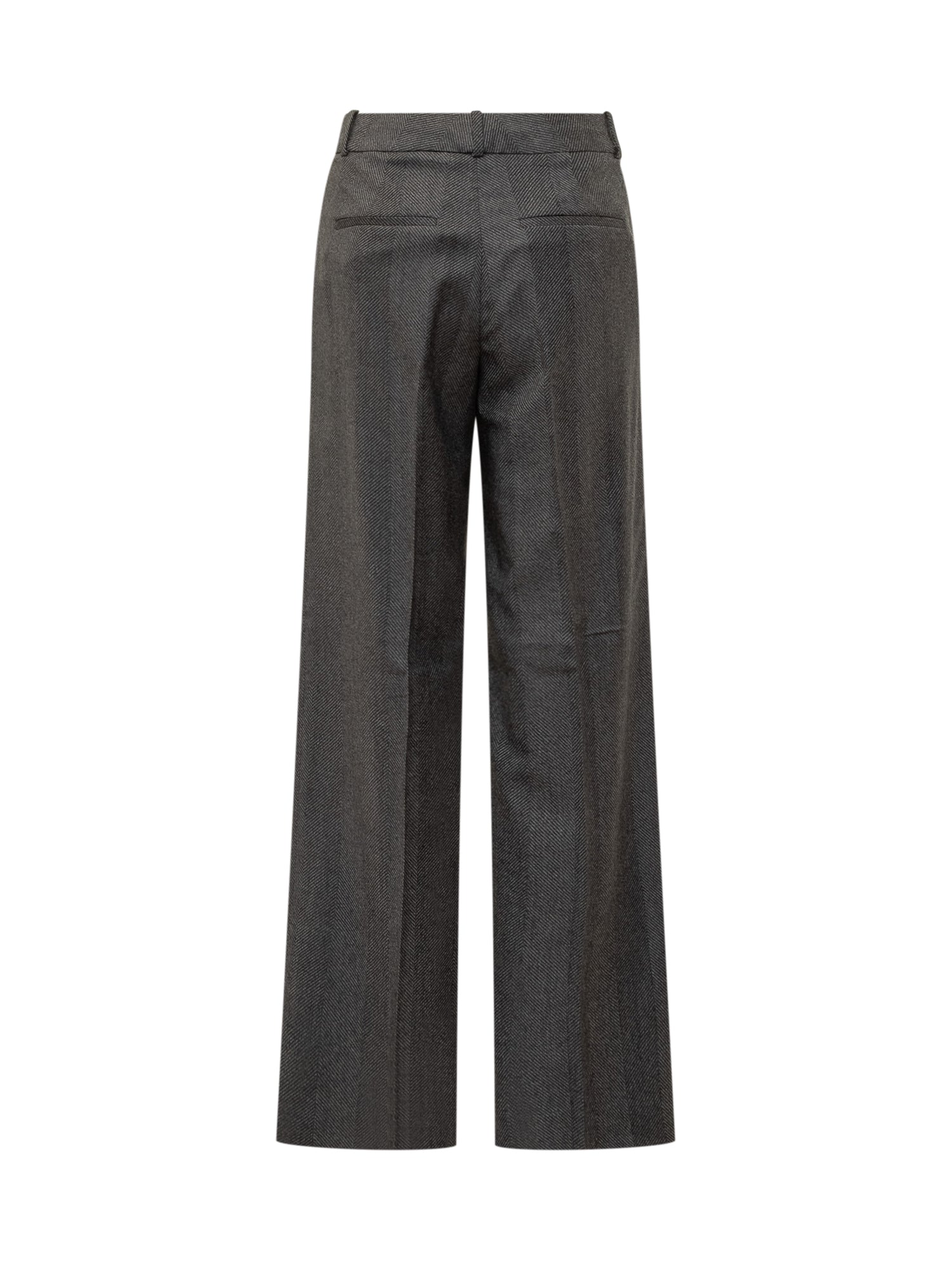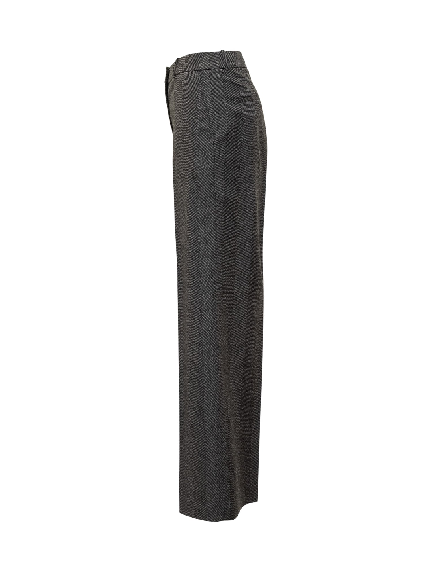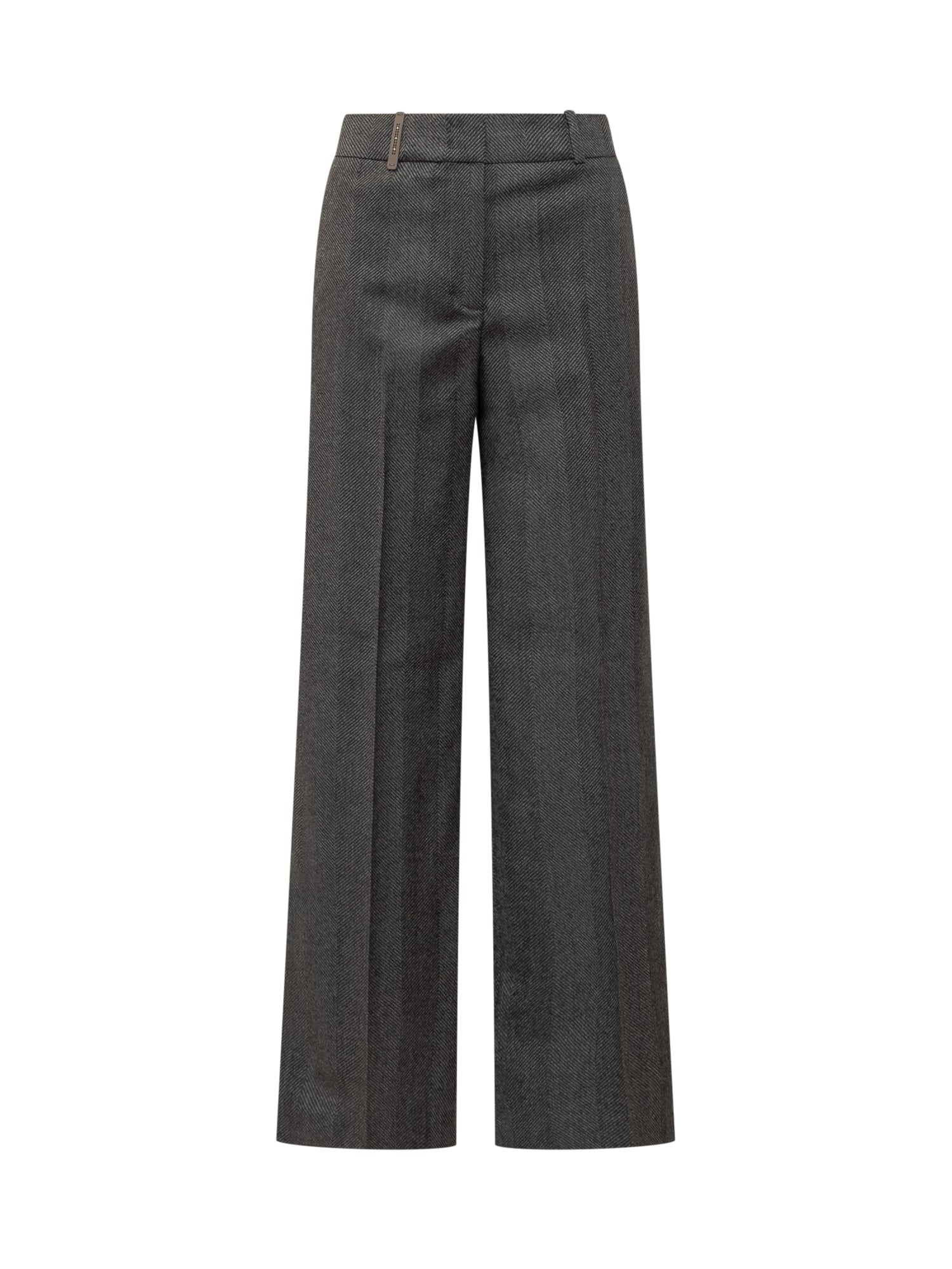 Pantaloni Peserico in lana grigia a fantasia spina di pesce. Modello a gamba larga con piega frontale, elegante e confortevole.