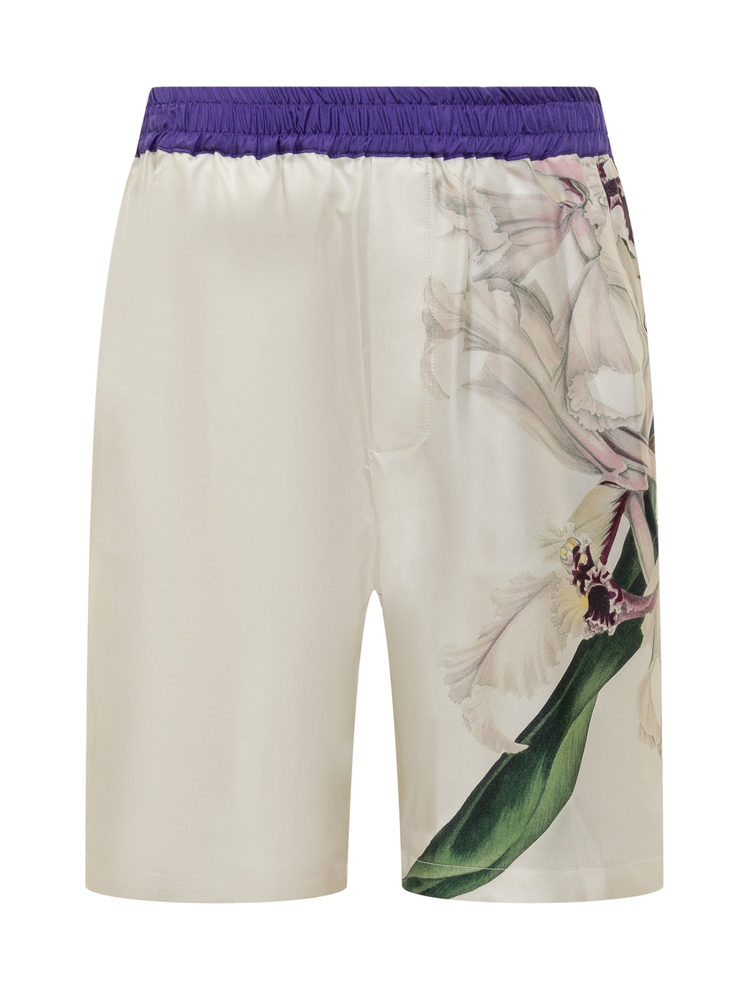 Shorts in seta. Vita elasticizzata. Due tasche oblique sul davanti. Motivo floreale all-over.