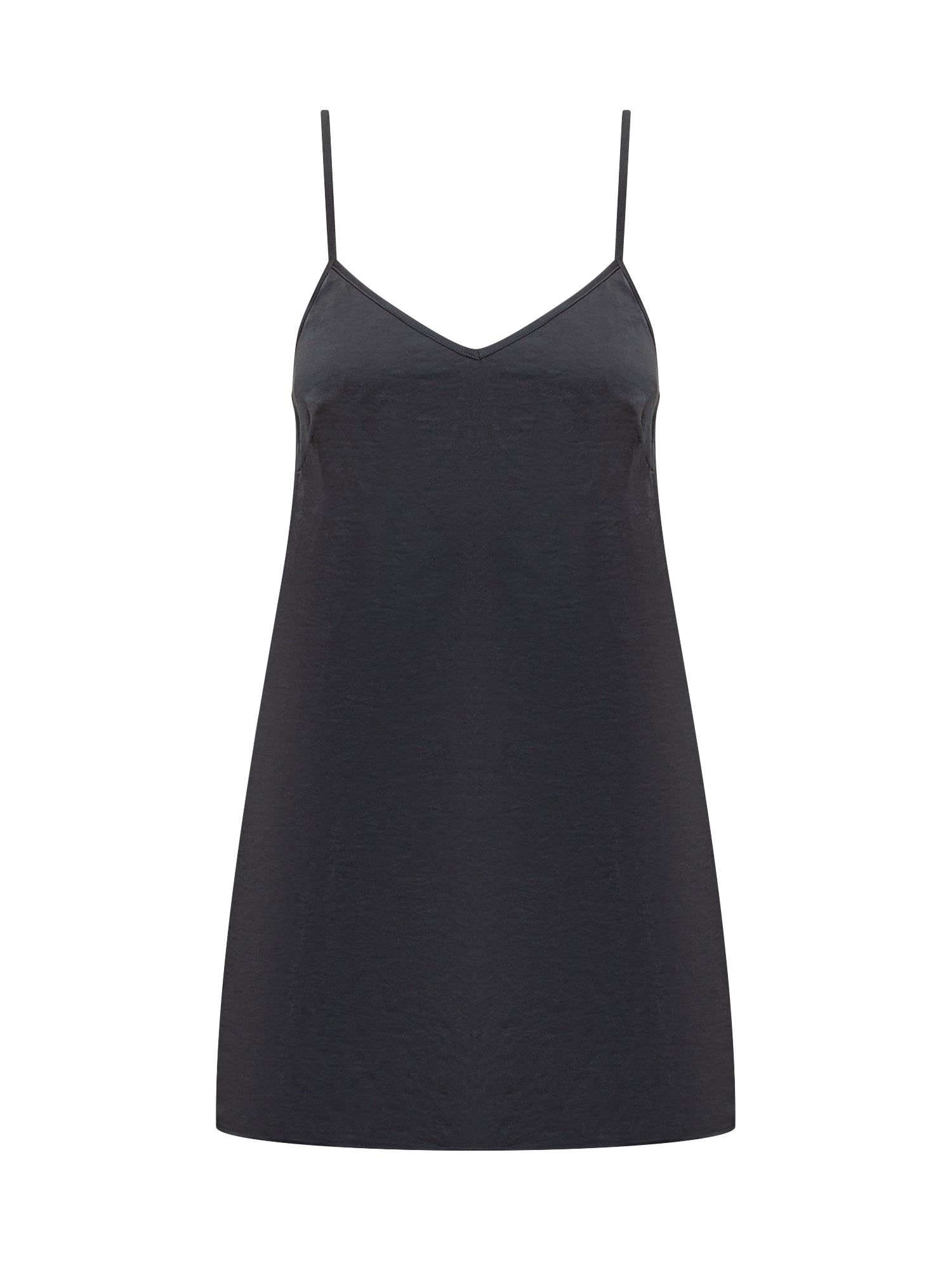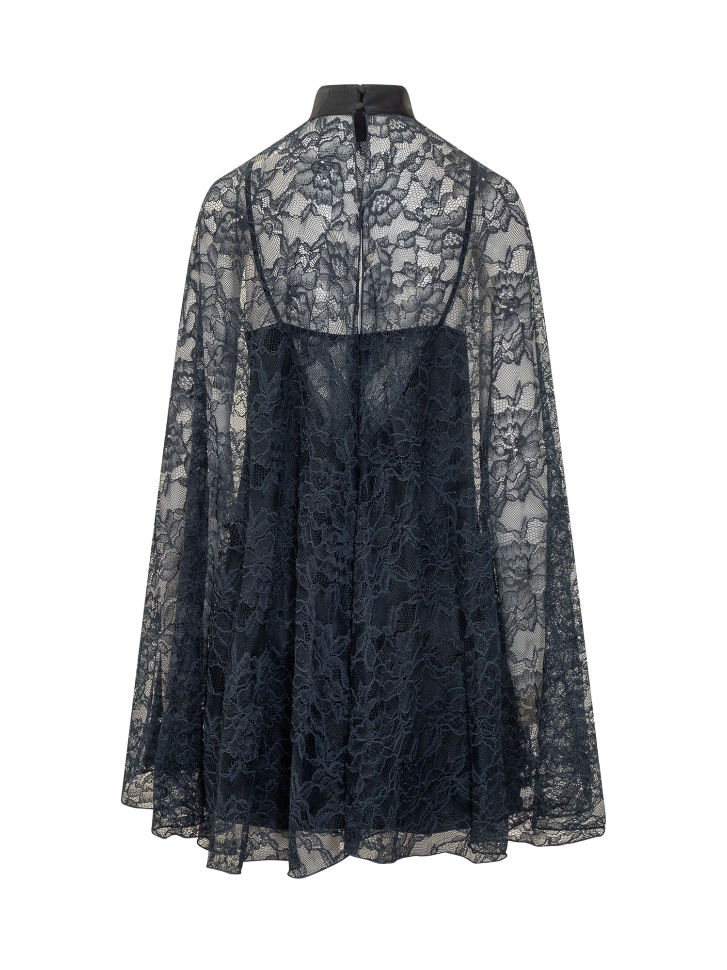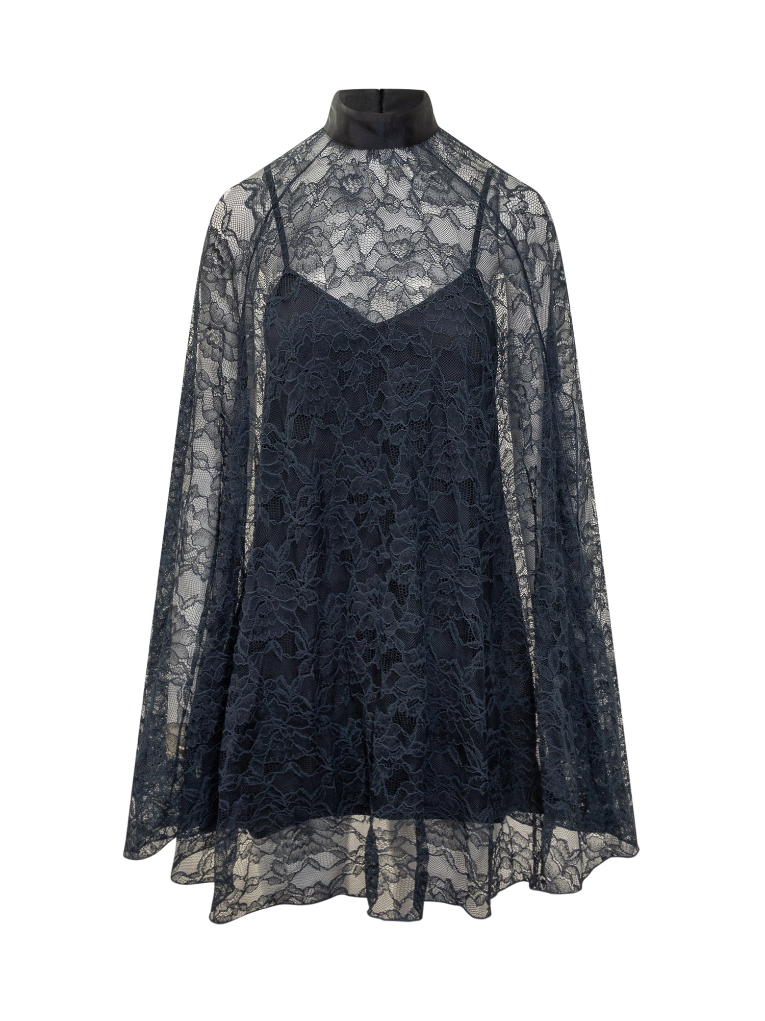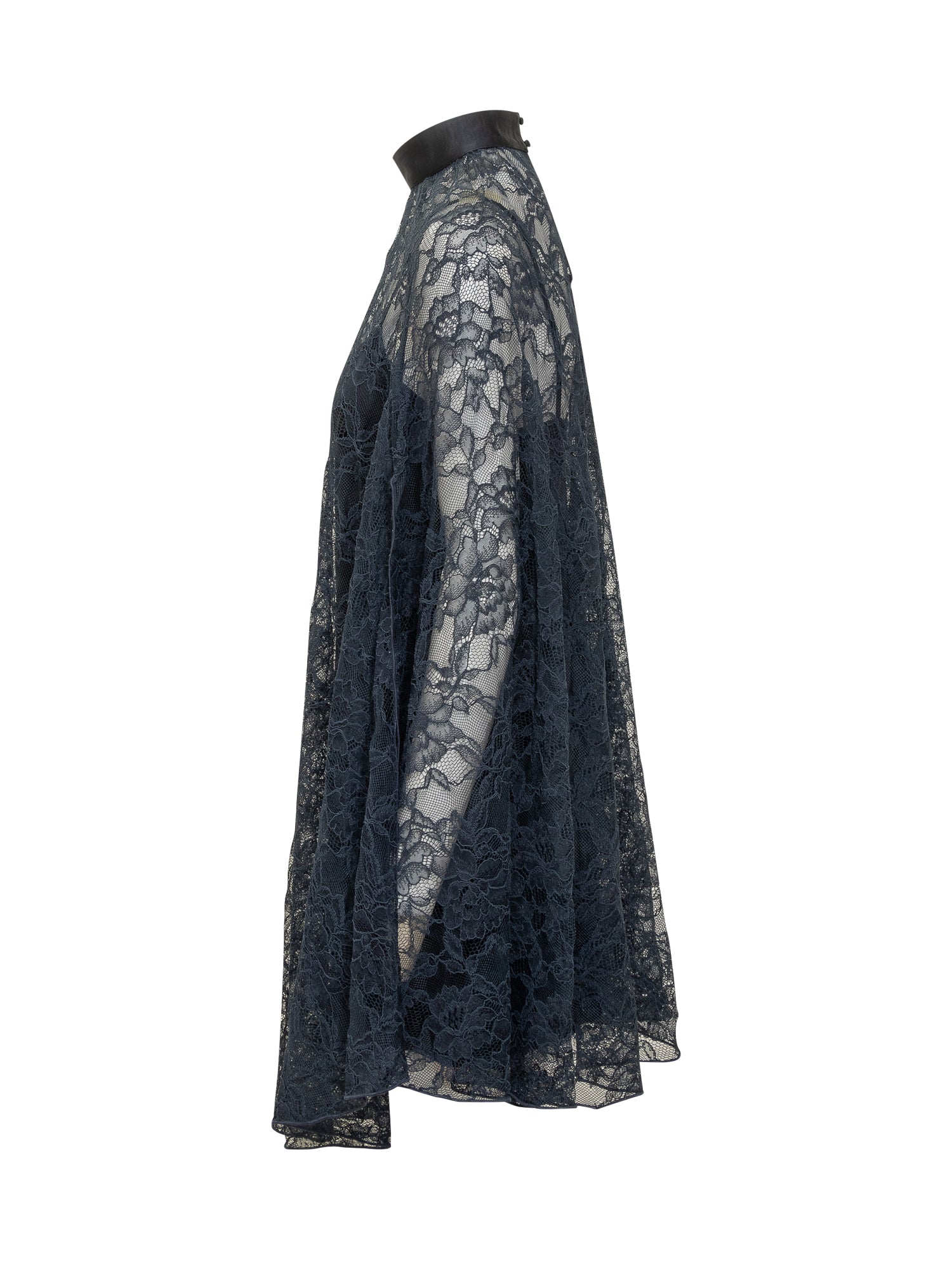 bito nero Pinko con lavorazione in pizzo trasparente e collo alto in tessuto liscio, dotato di sottoveste coordinata.