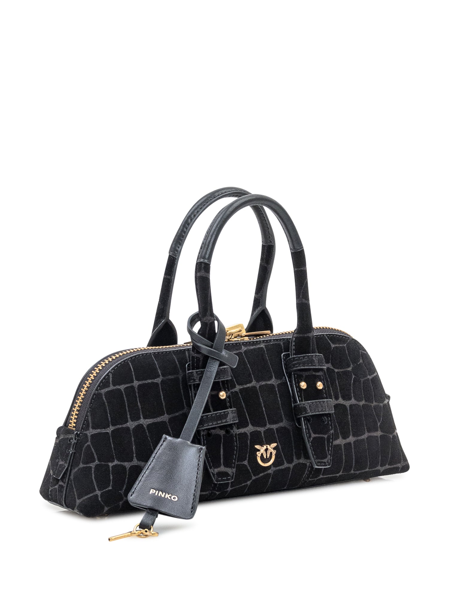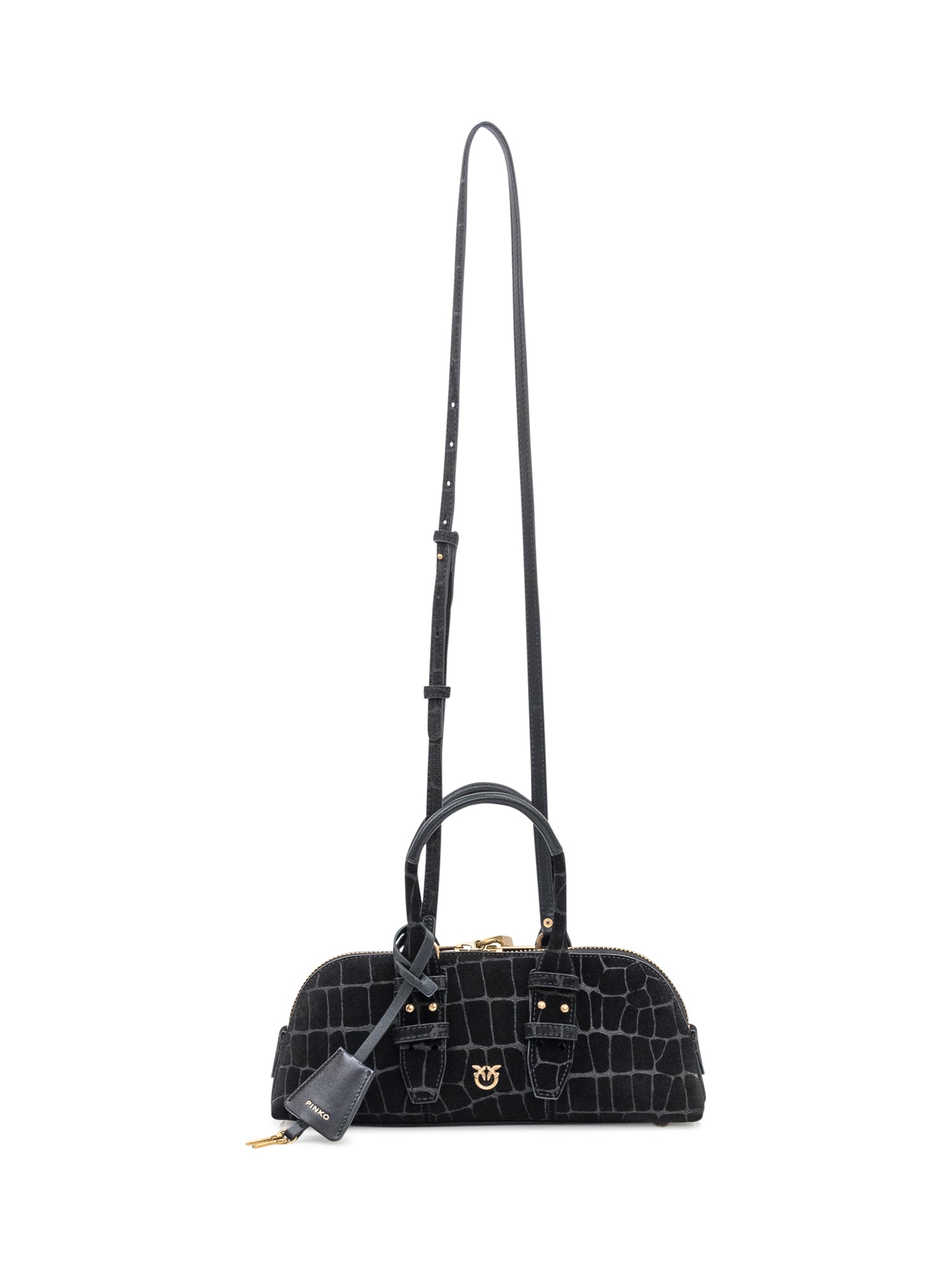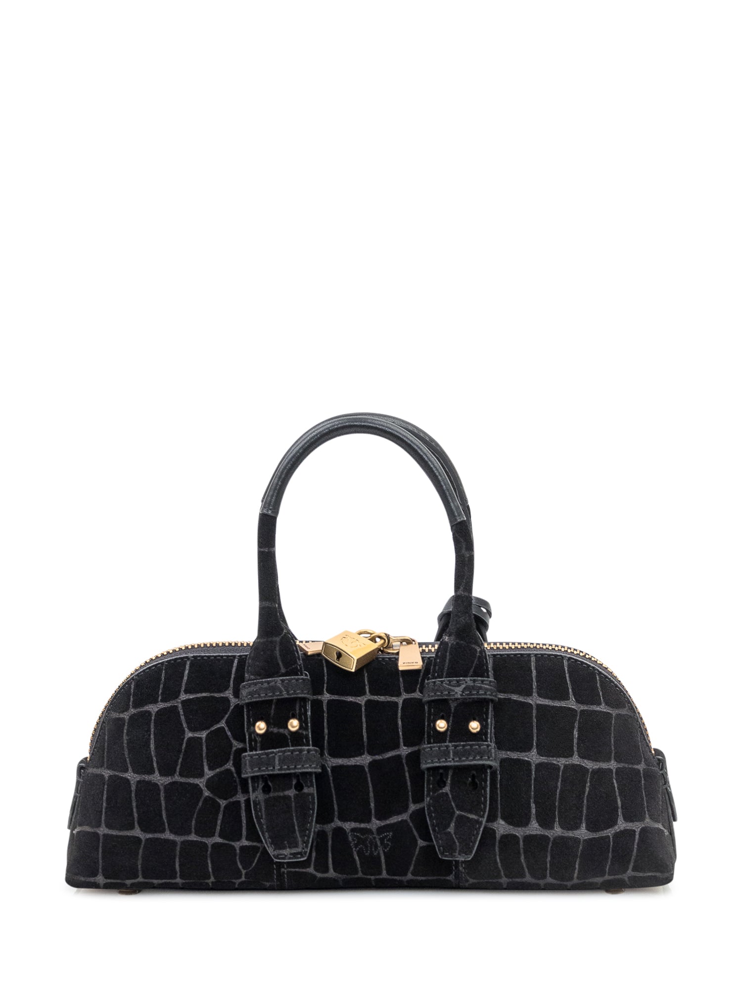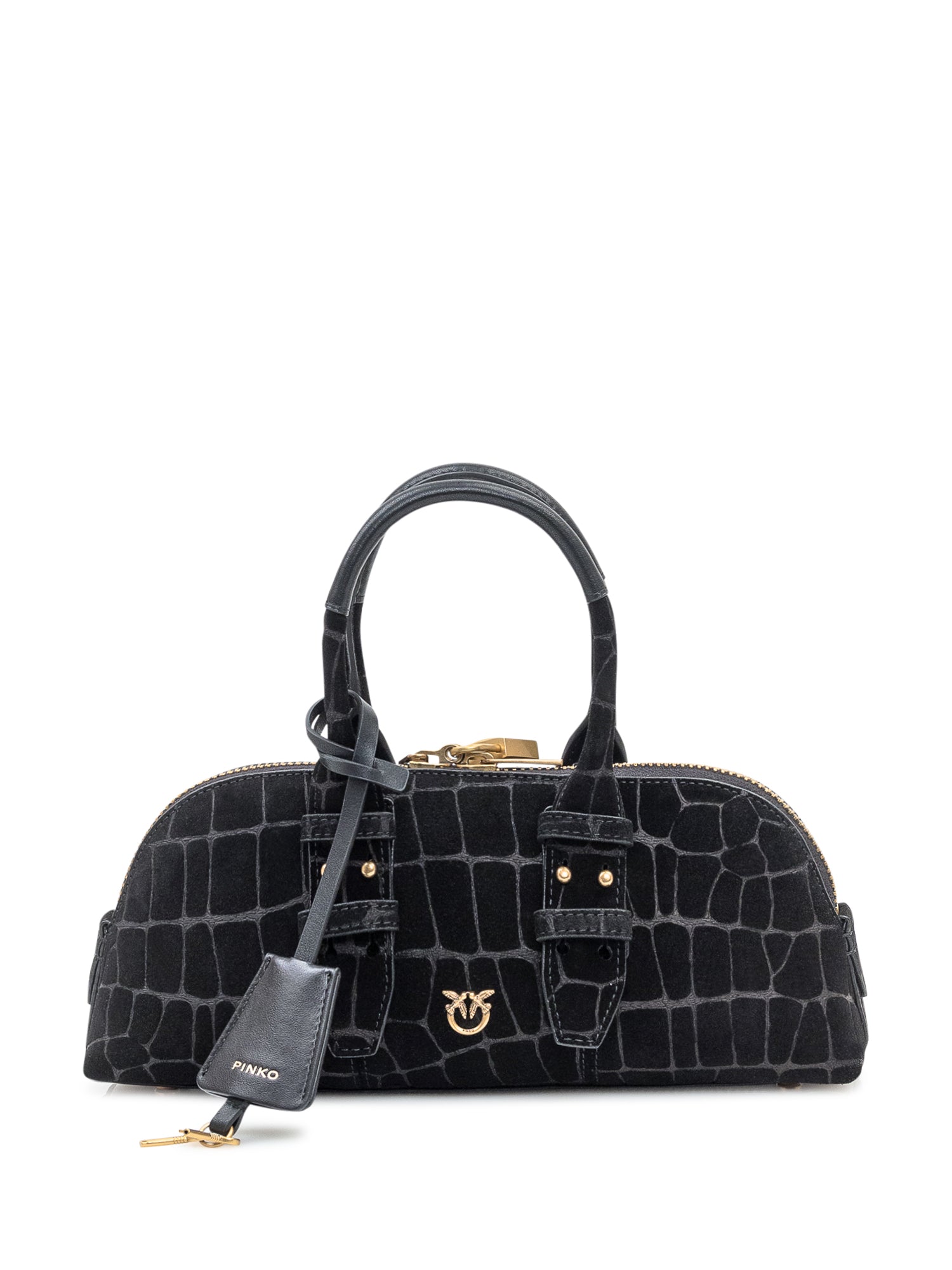Borsa Pinko in pelle con texture effetto coccodrillo. Linee compatte, dettagli dorati e logo frontale per un look raffinato e moderno.