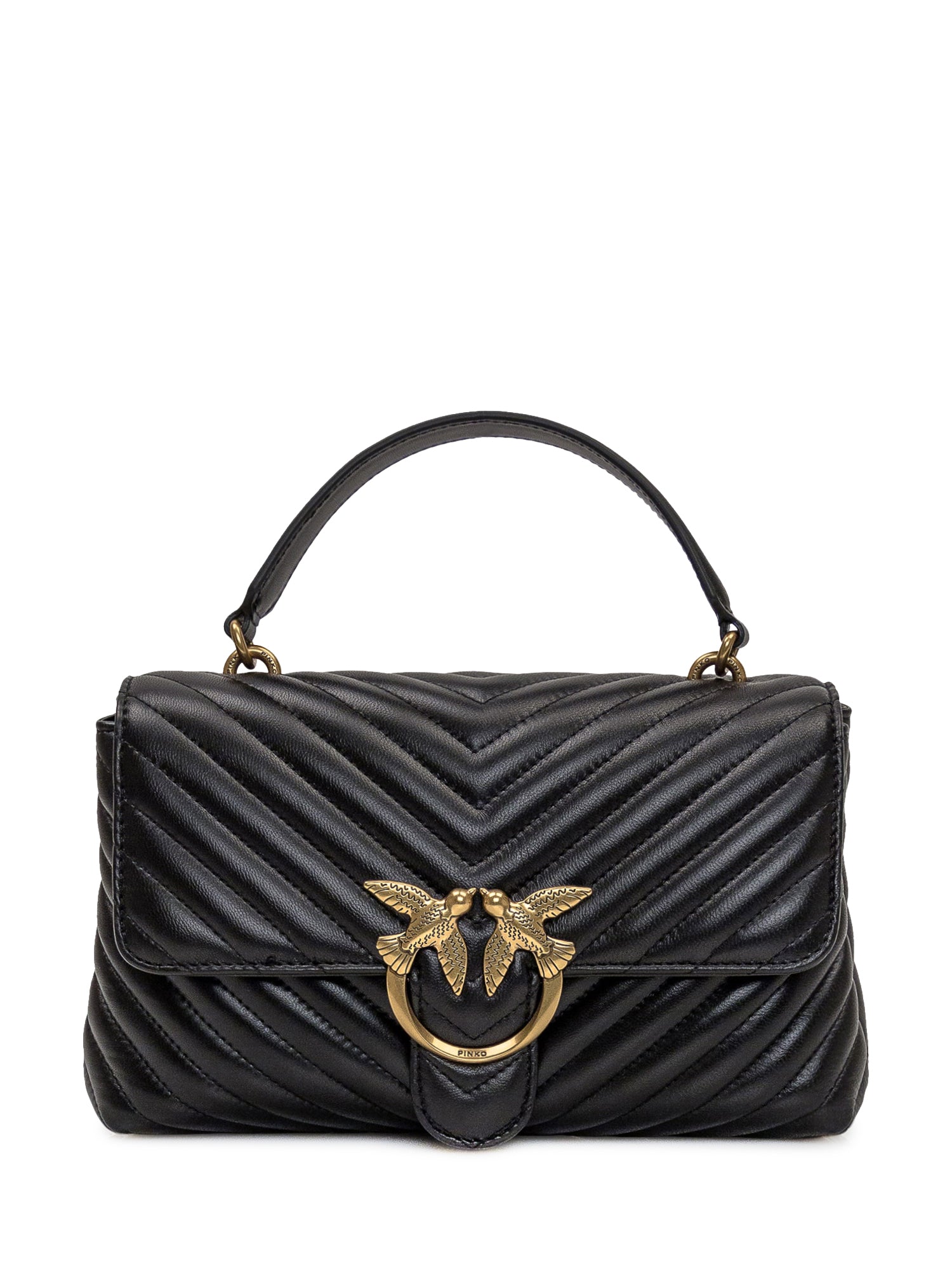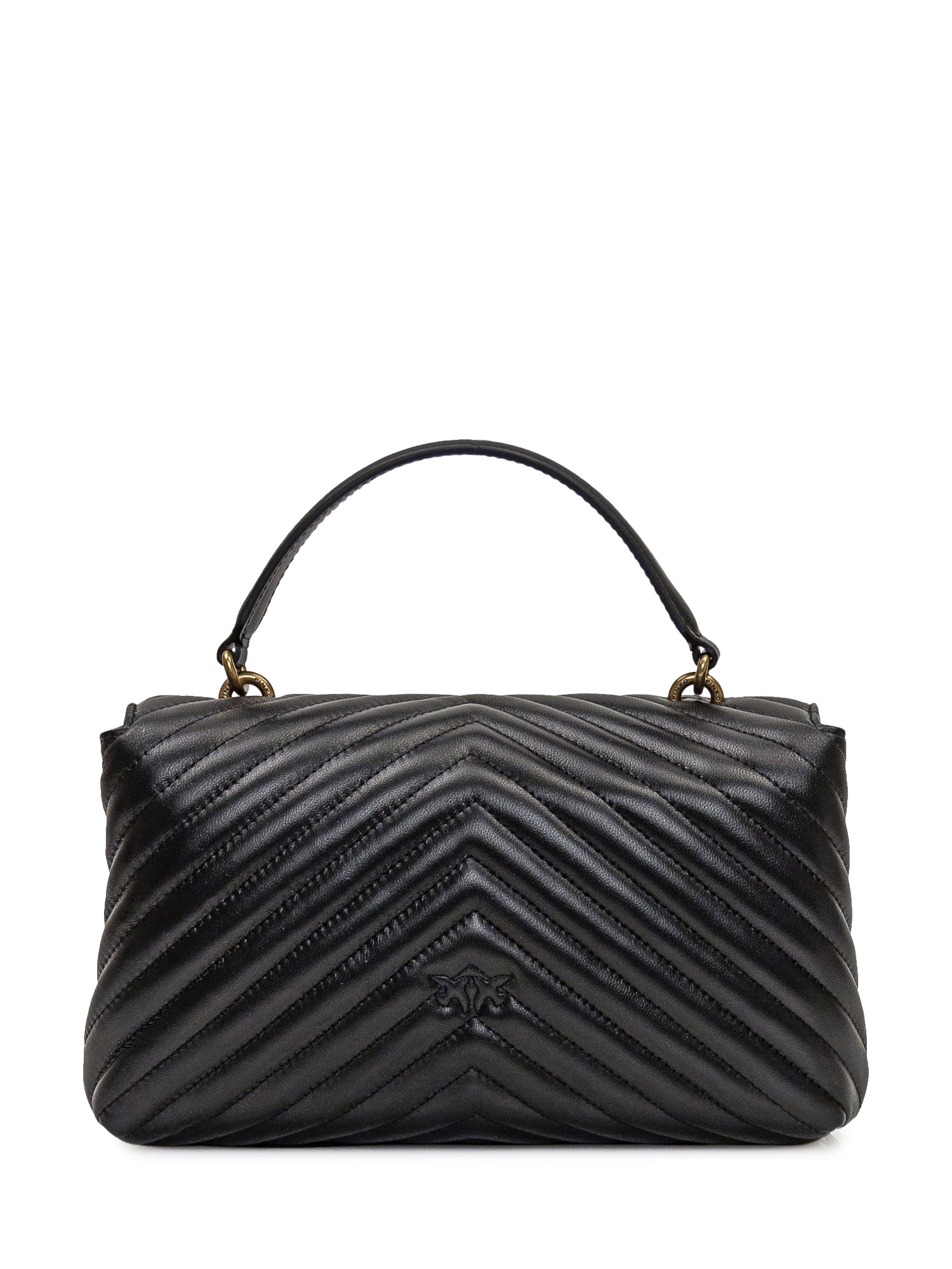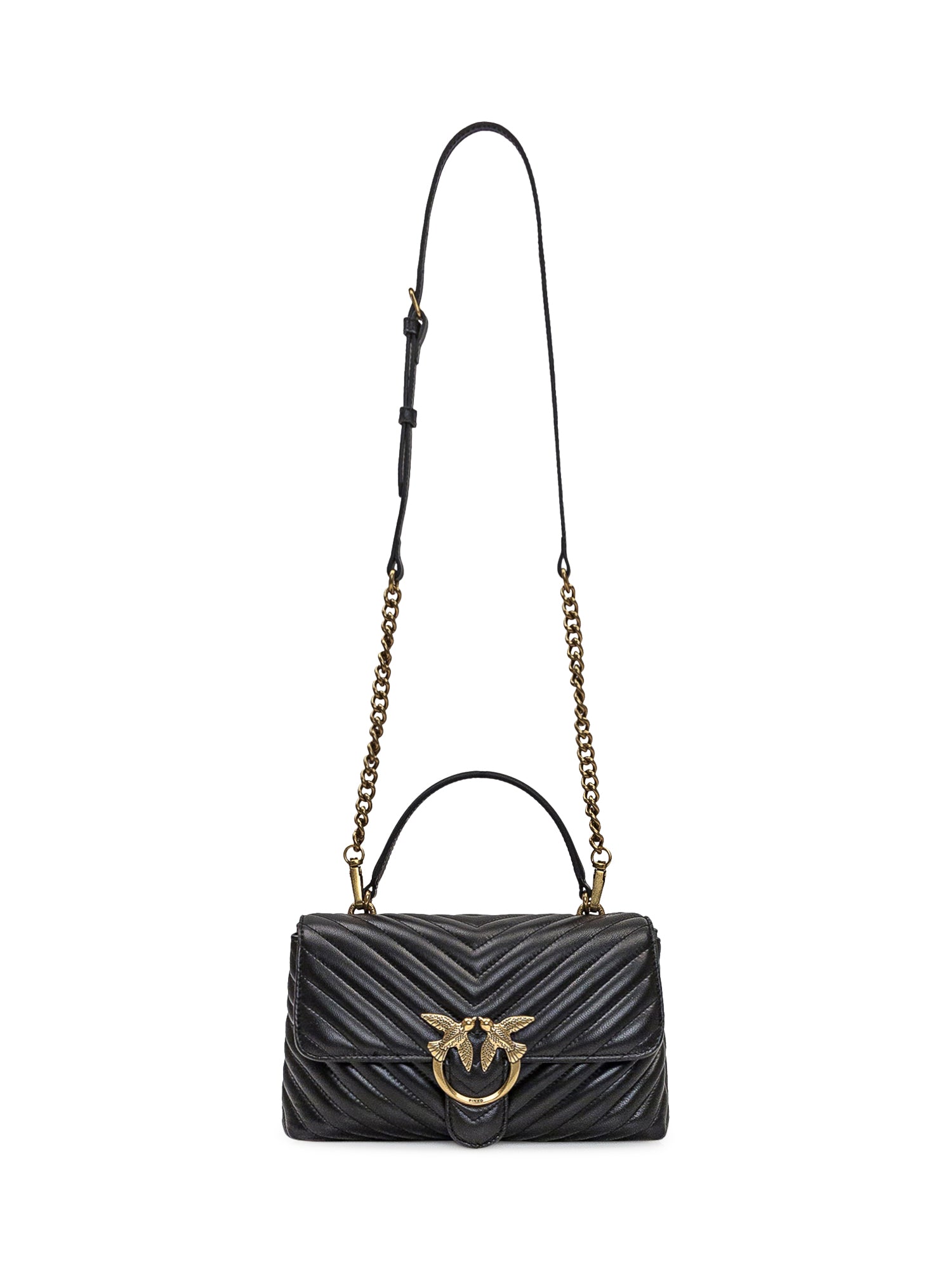 Borsa a mano nera. Tracolla in catena regolabile e rimovibile. Chiusura con patta e incastro. Due scomparti con tasca con zip. Fibbia logo sul davanti.