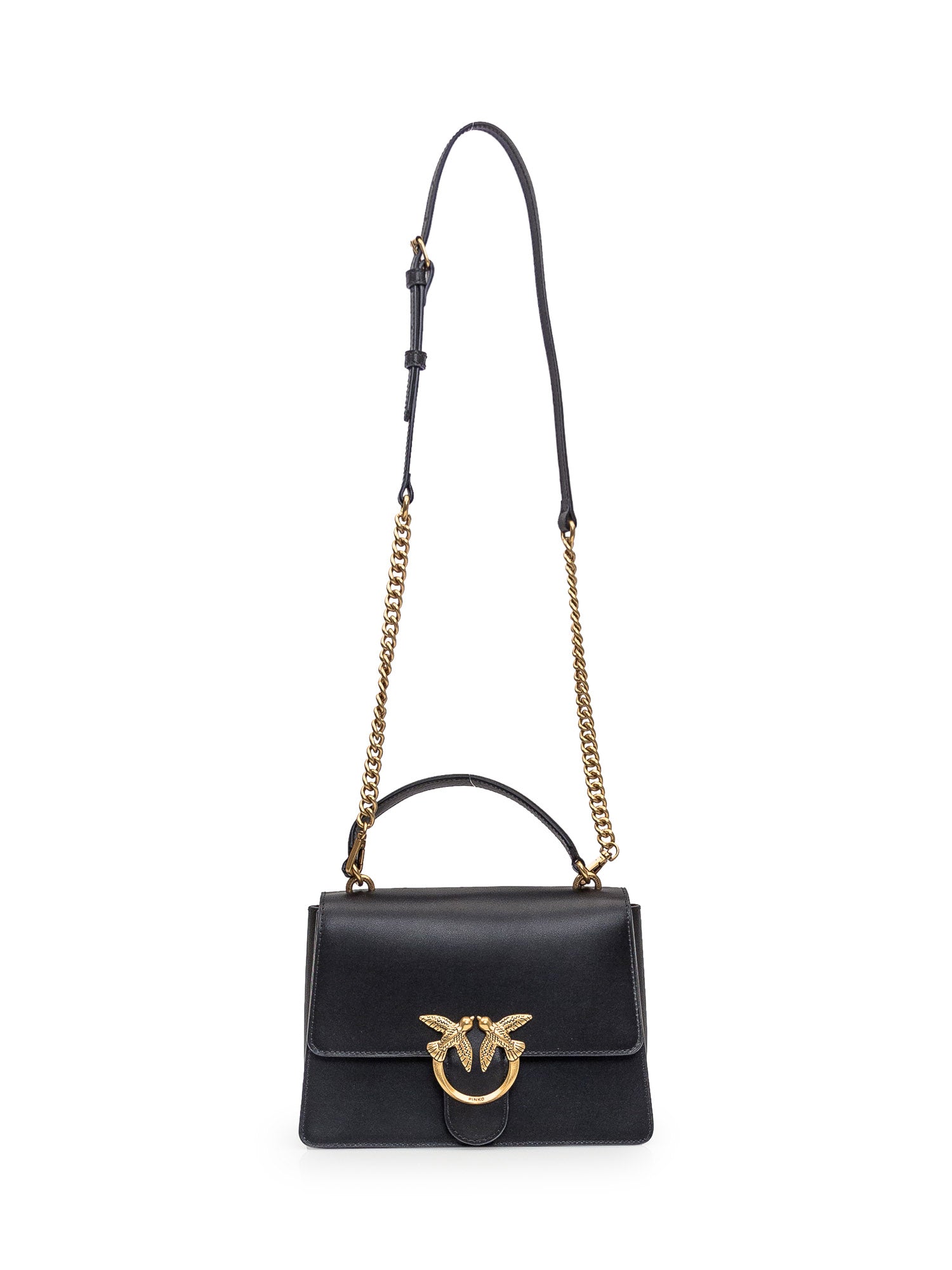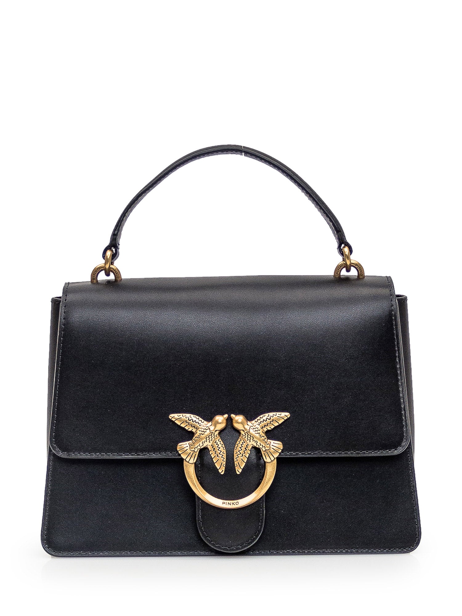 Borsa a mano nera in pelle. Un manico in pelle. Tracolla rimovibile e regolabile. Uno scomparto e una tasca interna con zip. Chiusura con patta con gancio. Logo Love Birds Diamond Cut in metallo sul davanti.