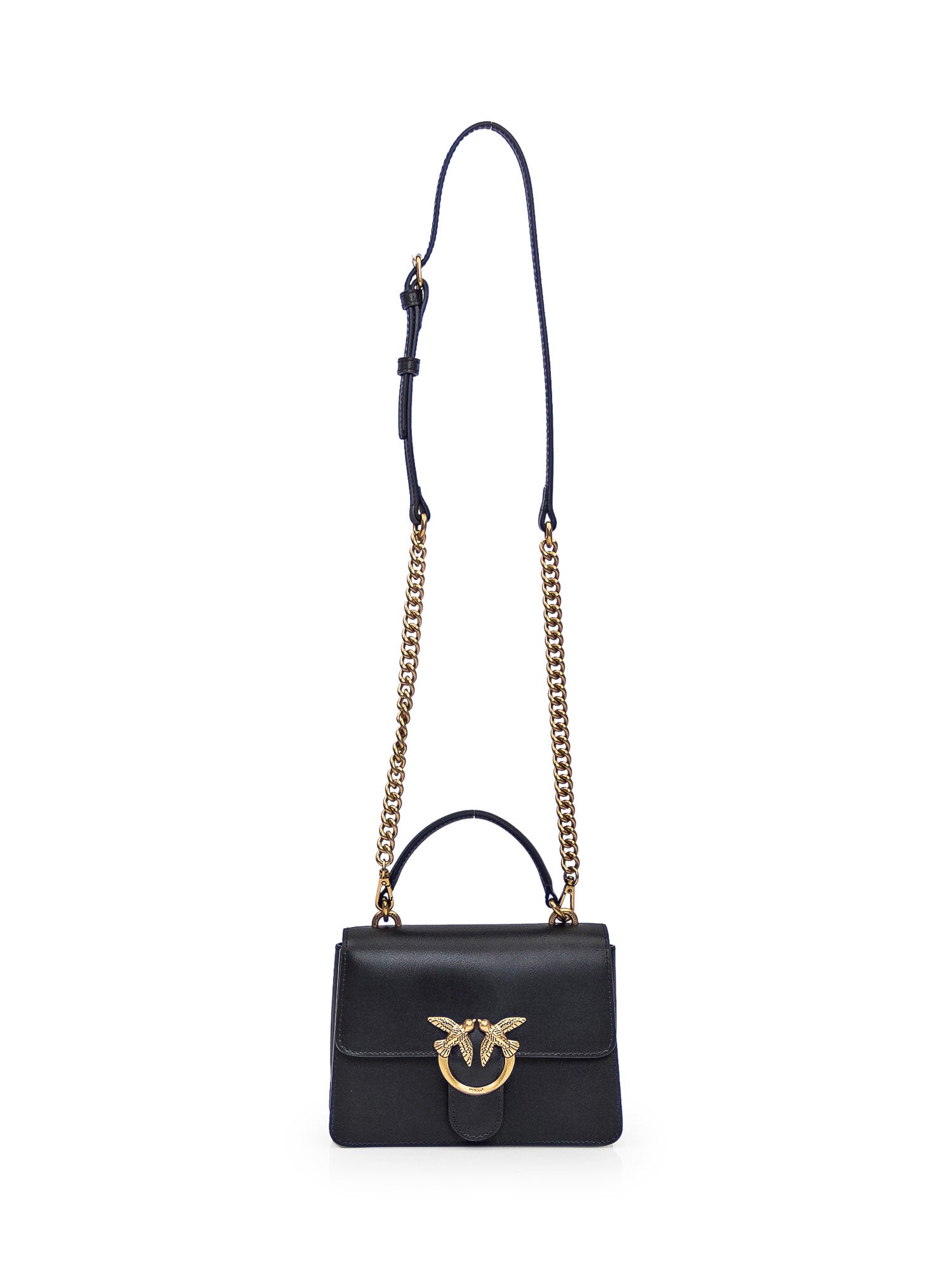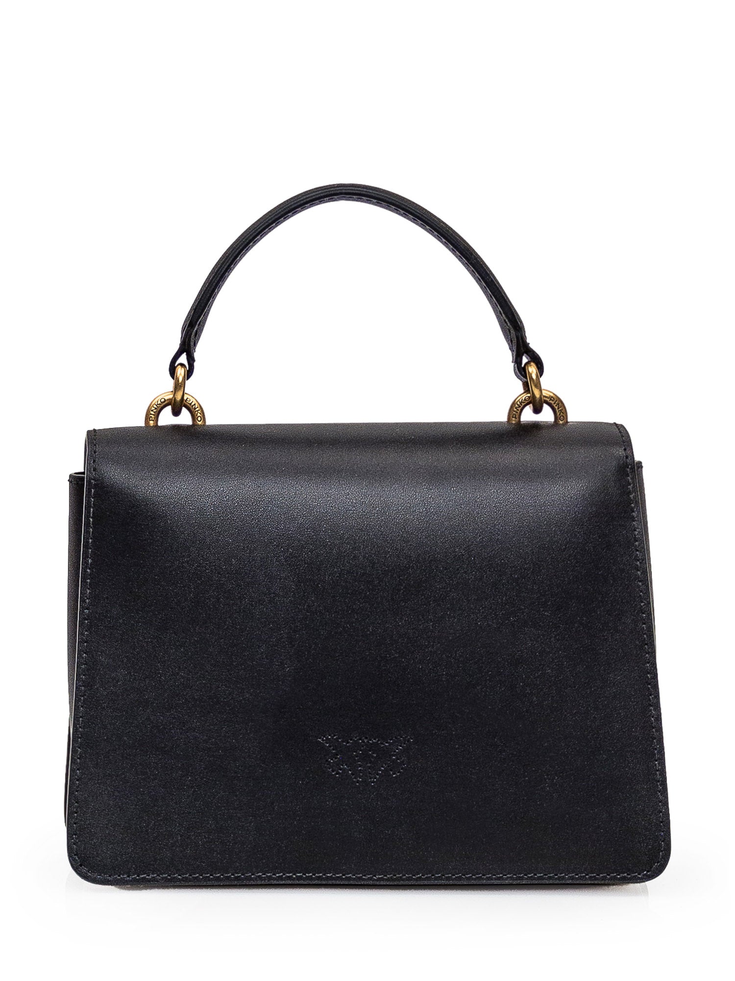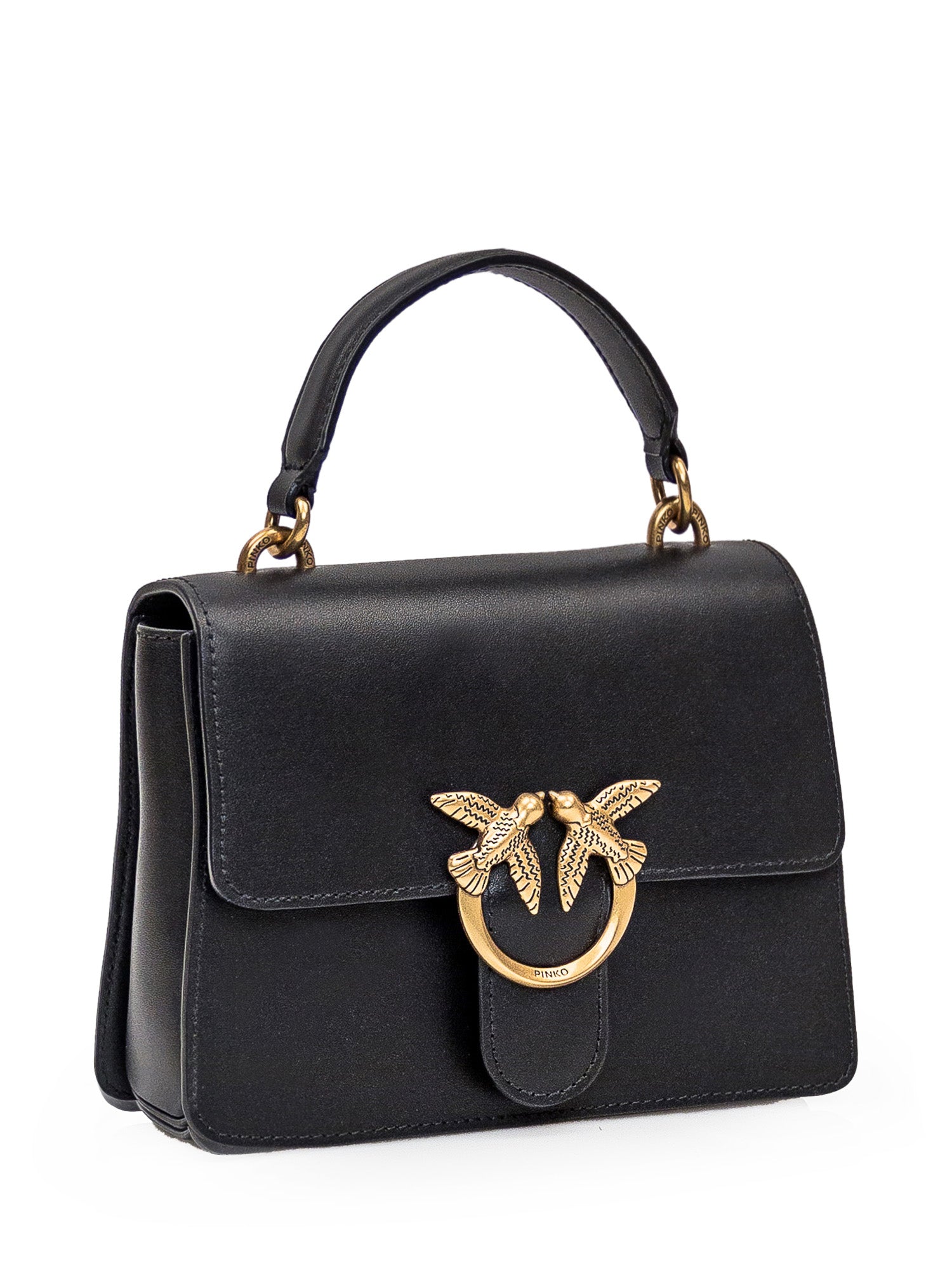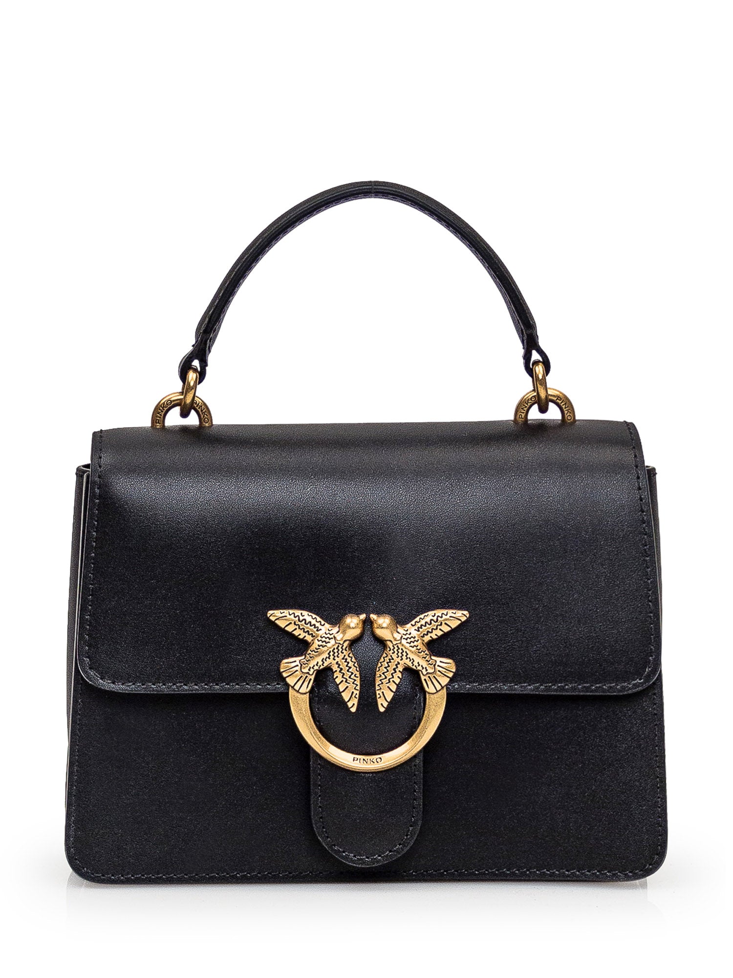 Borsa a mano nera in pelle. Un manico. Tracolla regolabile e rimovibile. Tasca interna con chiusura con zip. Chiusura con patta con gancio e logo Love Birds Diamond dorato sul davanti. Logo ricamato sul retro.