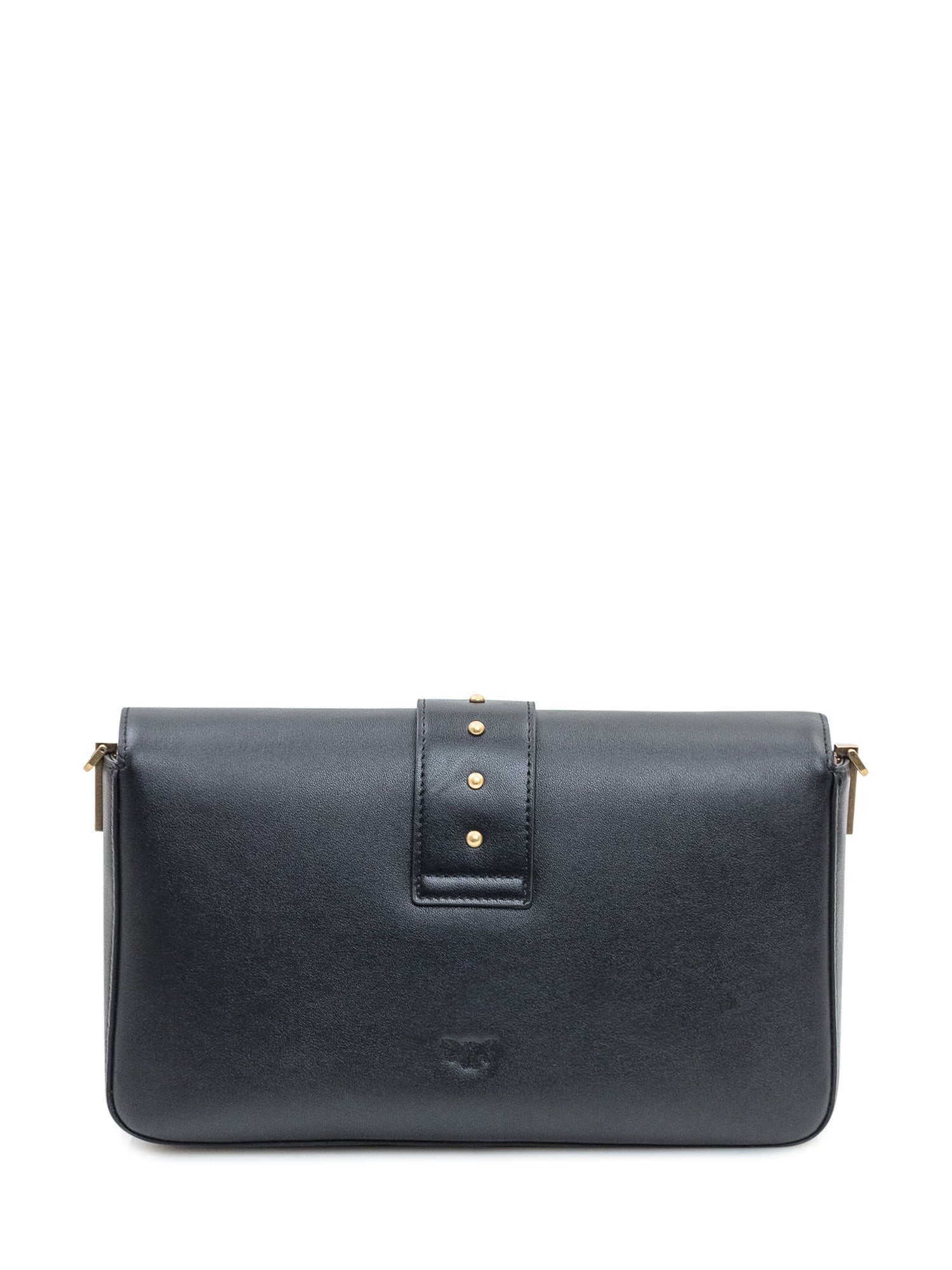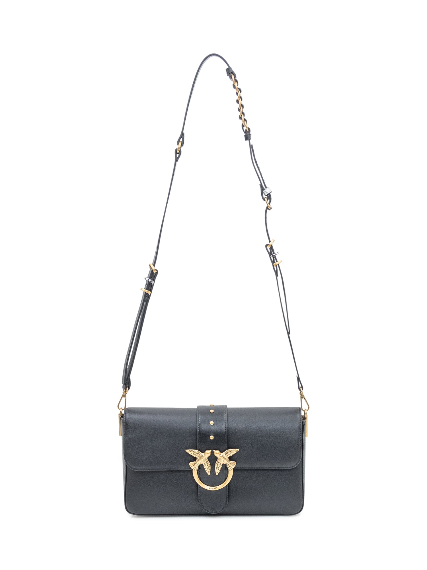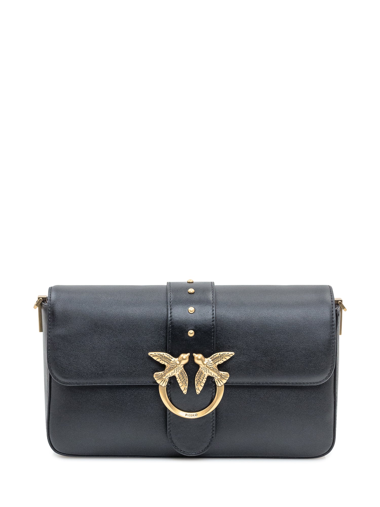 Borsa Pinko Love One Classic in pelle liscia nera con iconica fibbia Love Birds dorata.
