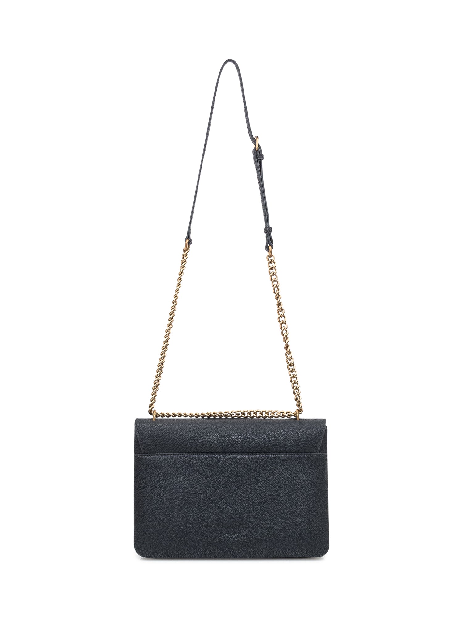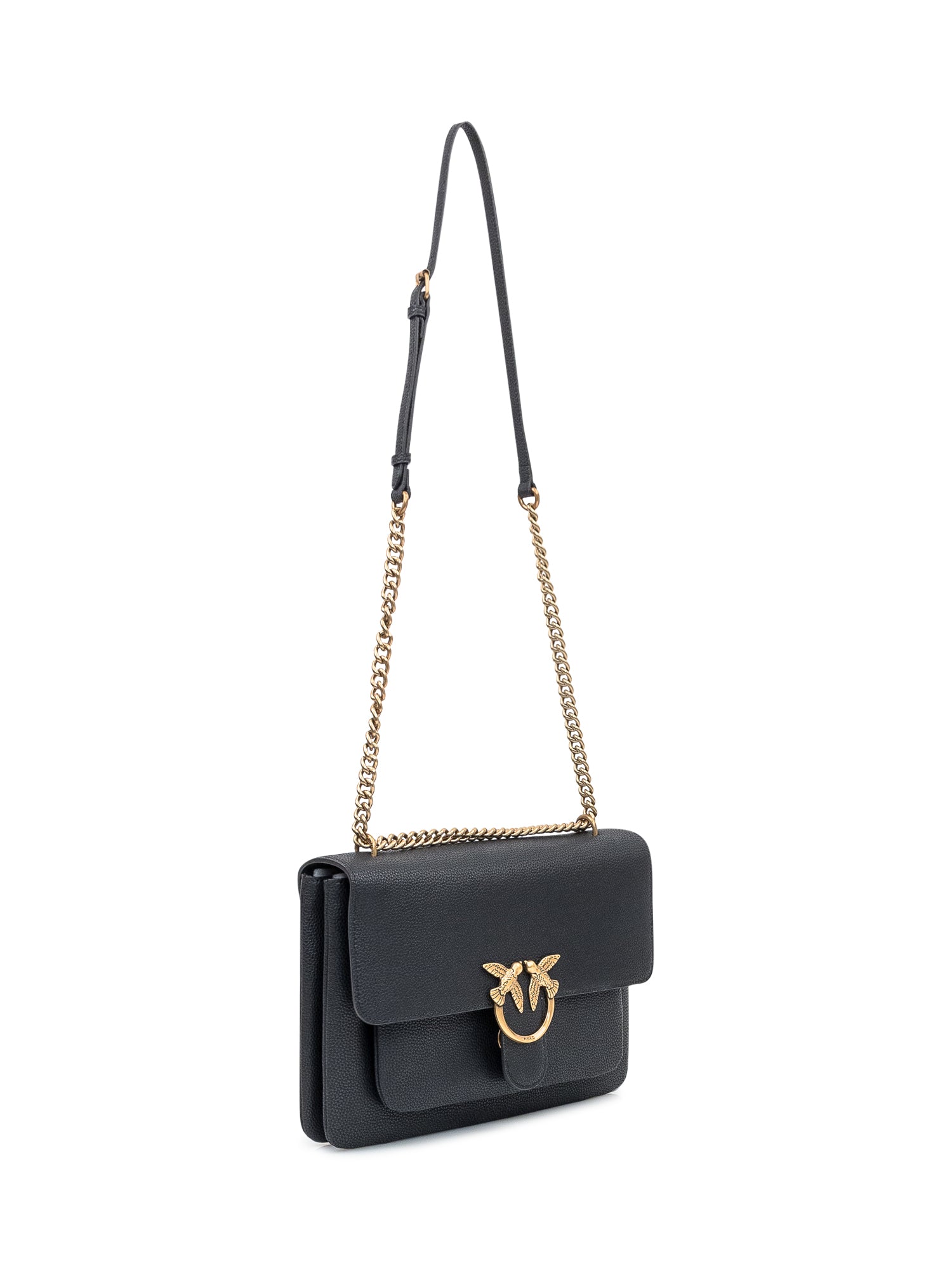 Borsa a spalla nera in pelle. Tracolla regolabile e removibile. Uno scomparto interno. Tasca frontale con zip. Chiusura con fibbia in metallo Love Birds Diamond Cut.