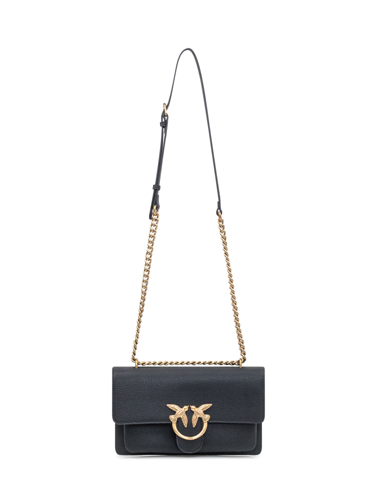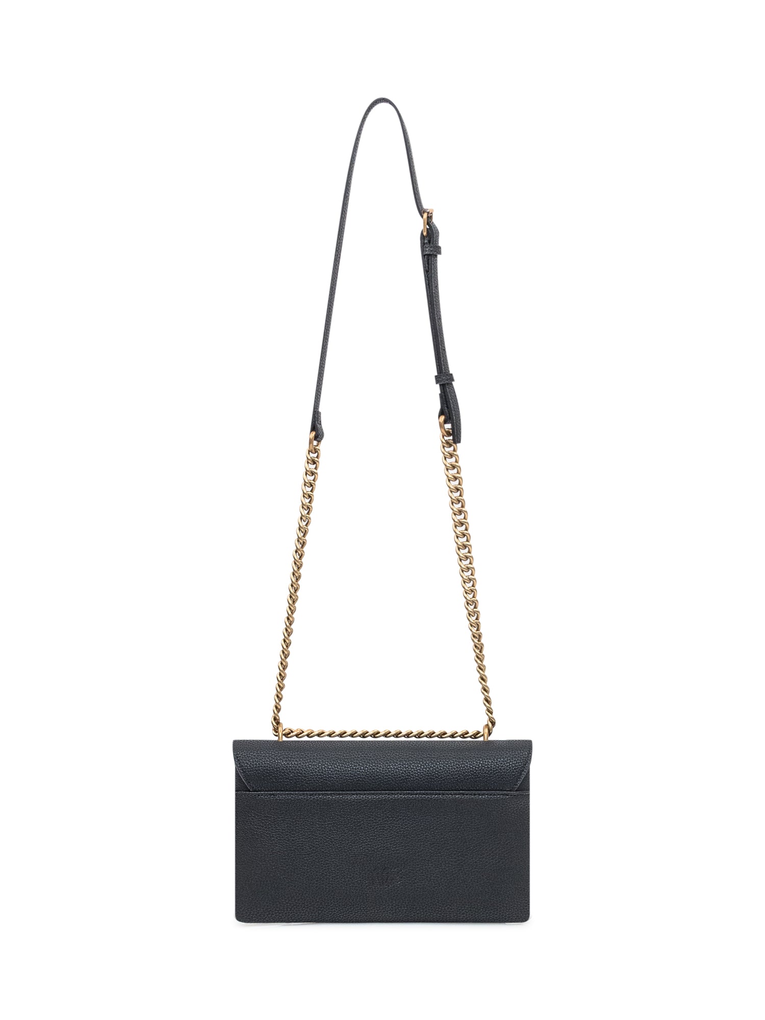 Borsa a spalla nera in pelle. Tracolla regolabile e removibile. Uno scomparto interno. Tasca frontale con zip. Chiusura con fibbia in metallo Love Birds Diamond Cut.