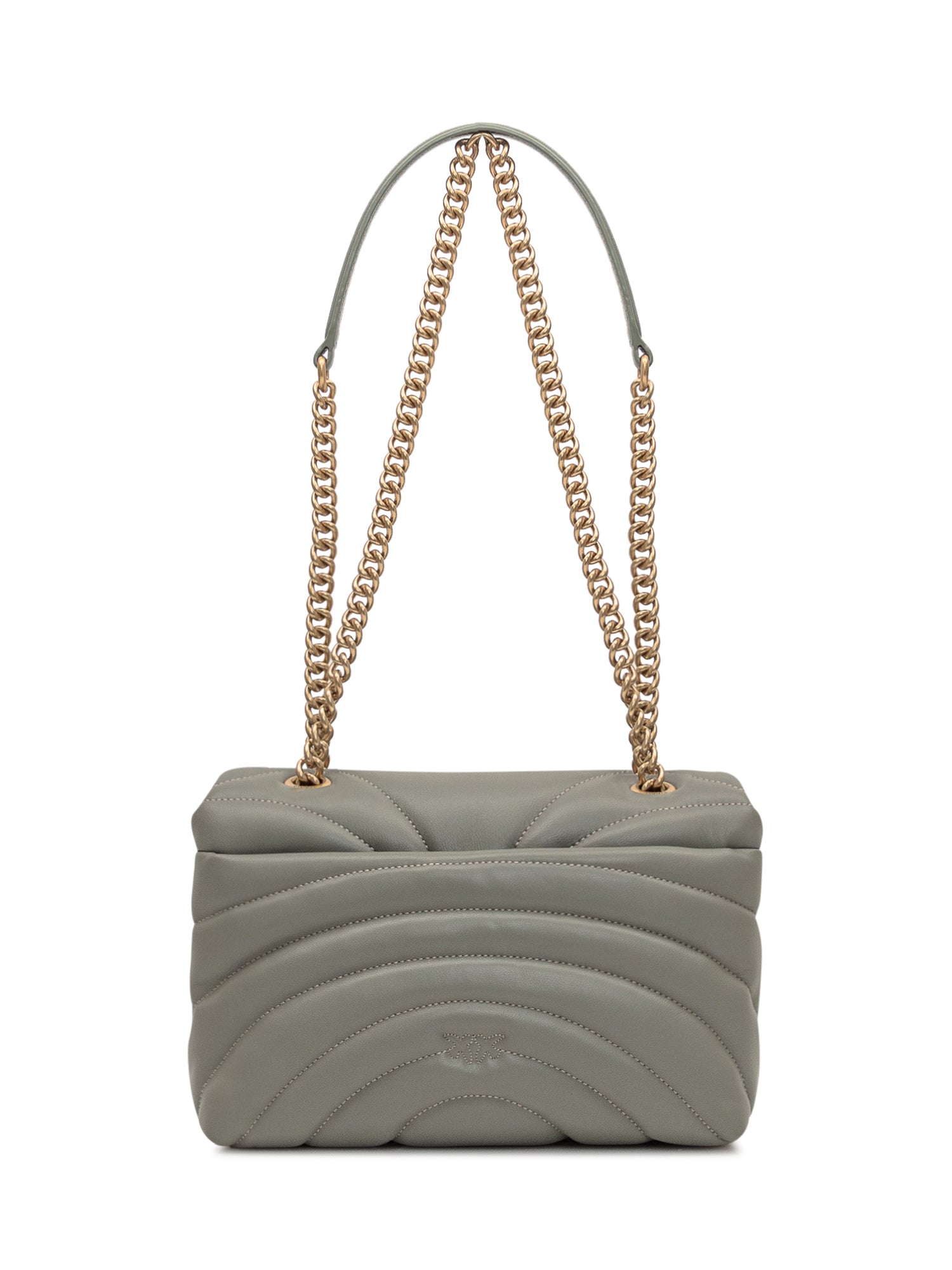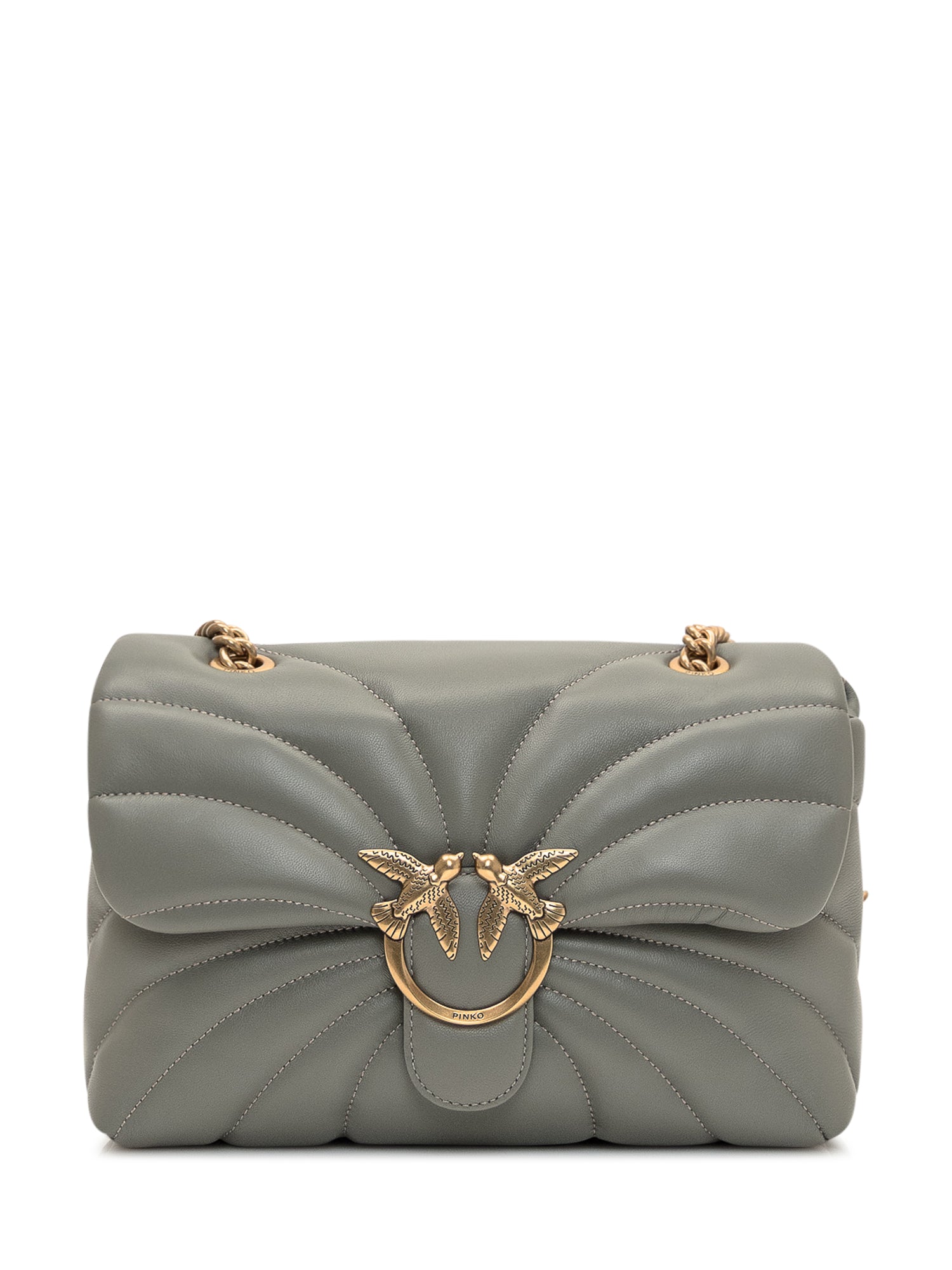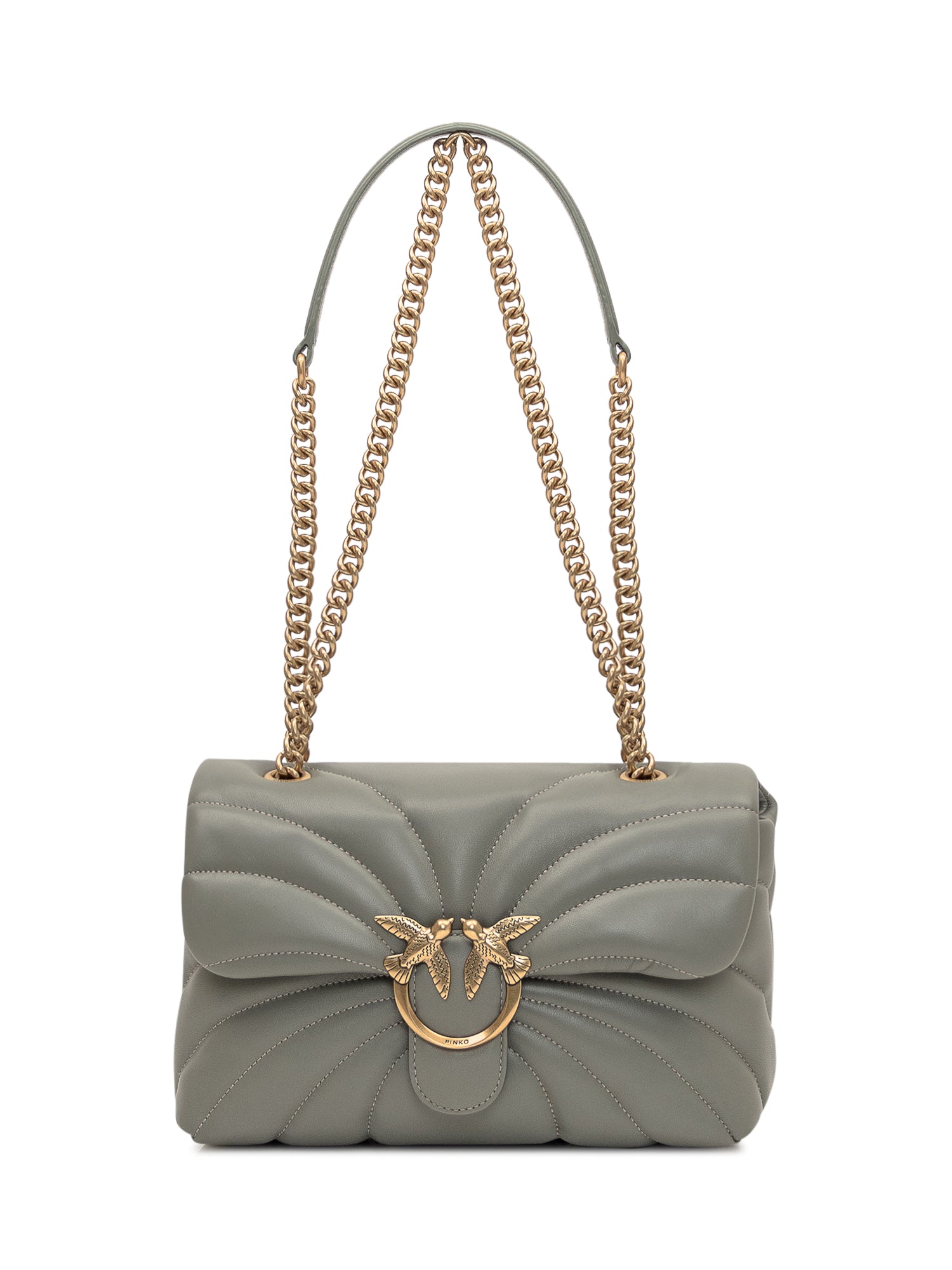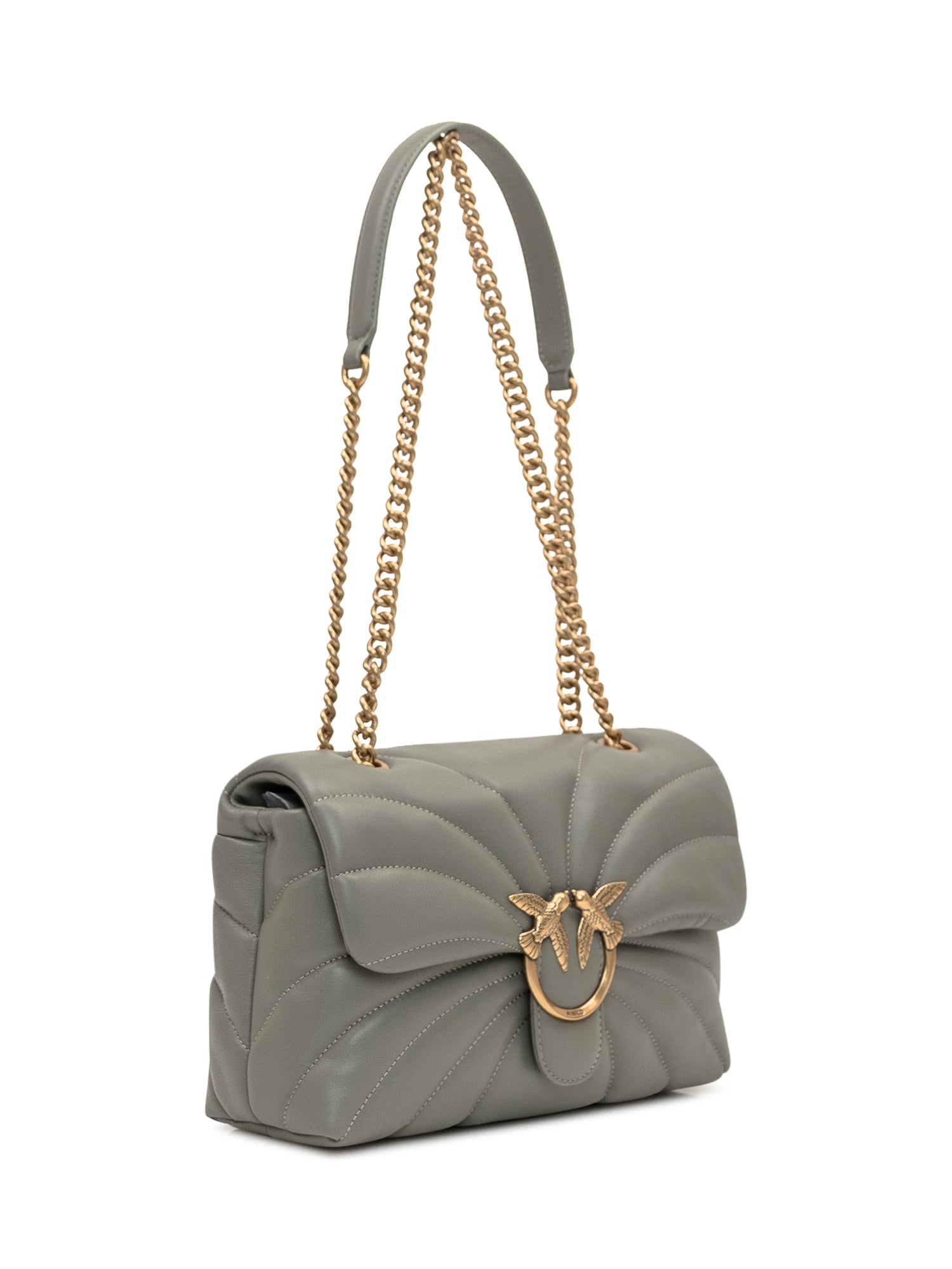 Borsa in pelle verde. Chiusura con fibbia in metallo Love Birds Diamond Cut. Tramezza chiusa con zip e tasca a parete. Tracolla con catena metallica e spallaccio in nappa. Tasca sul retro.