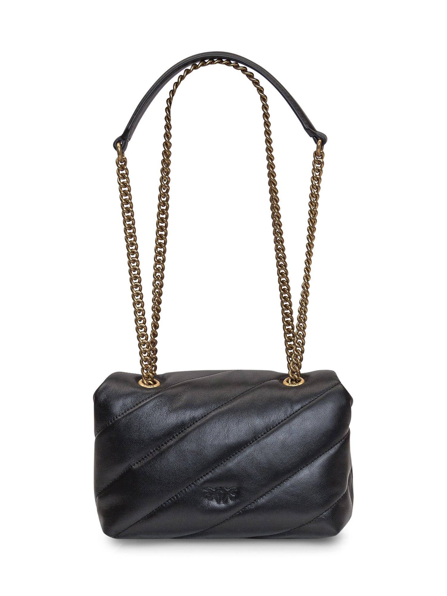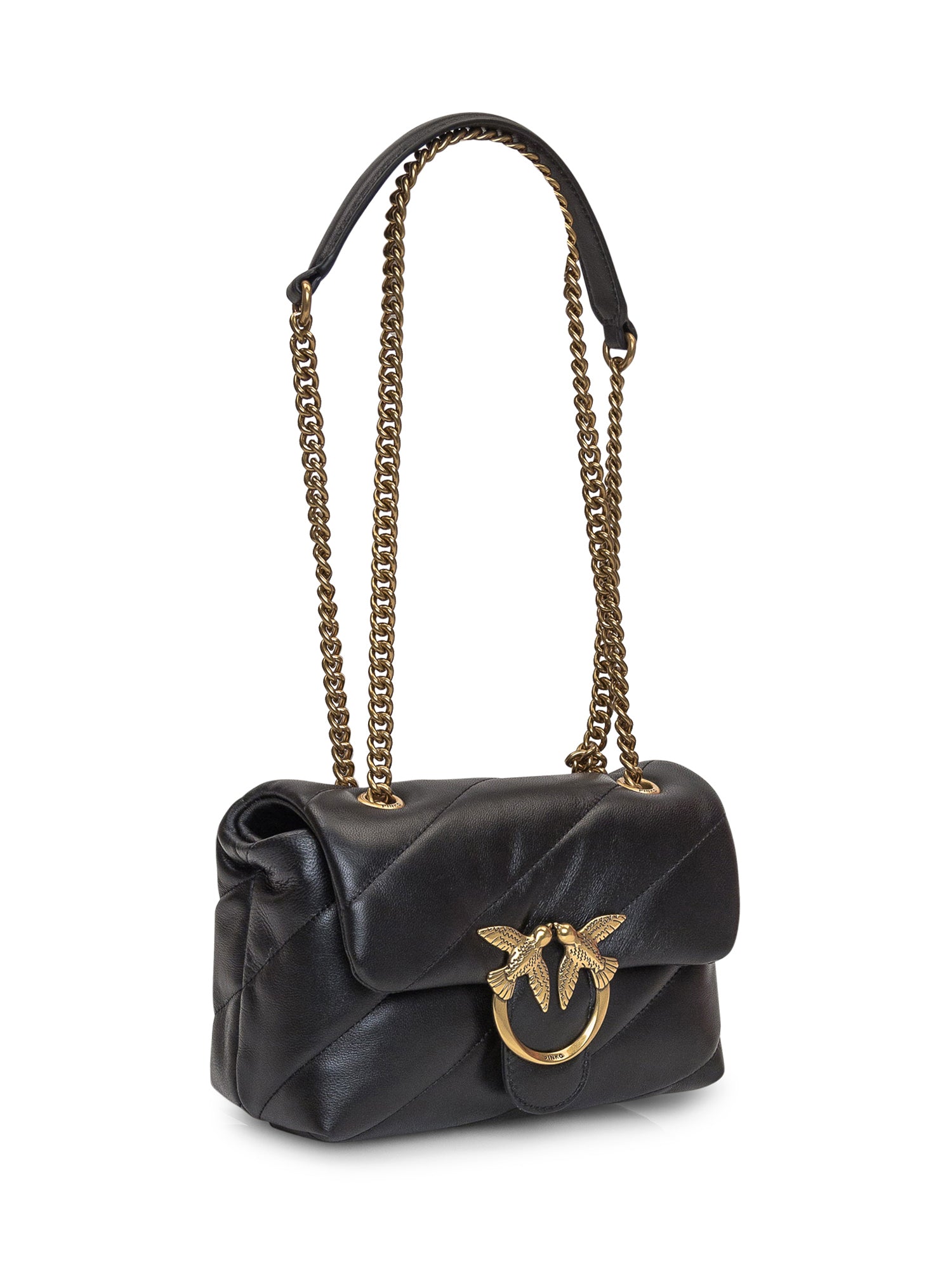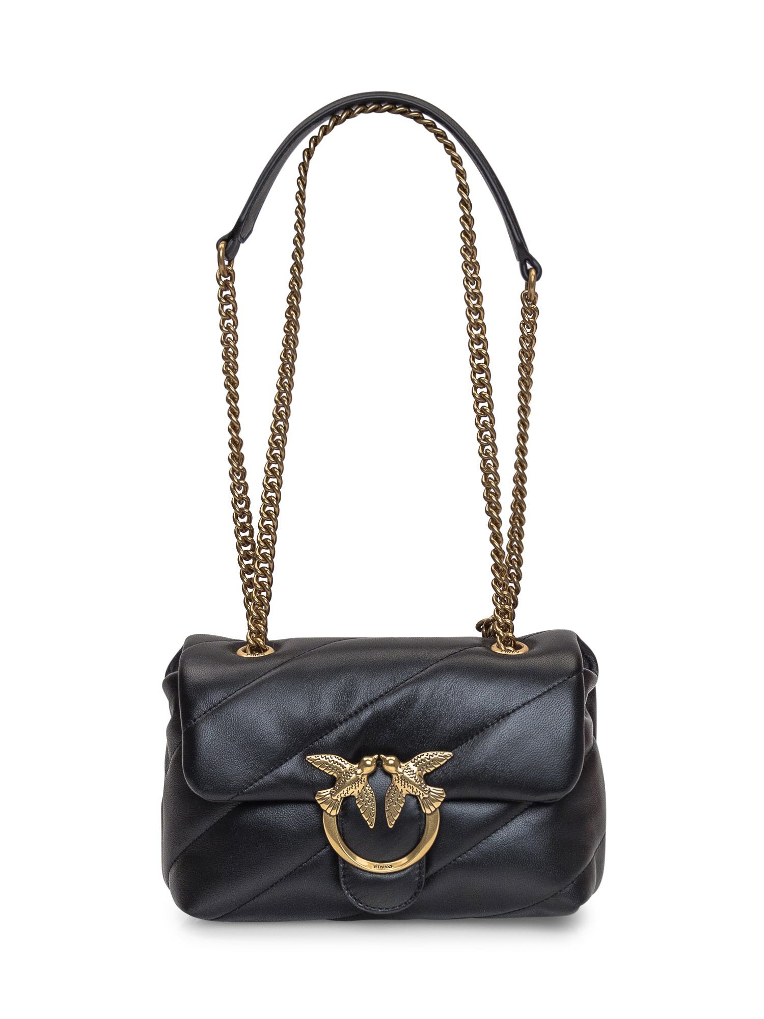 Borsa in pelle nera. Chiusura con fibbia n metallo Love Birds Diamond Cut. Tramezza chiusa con zip e tasca a parete. Tracolla con catena metallica rotonda e spallaccio in nappa. Logo ricamato sul retro.