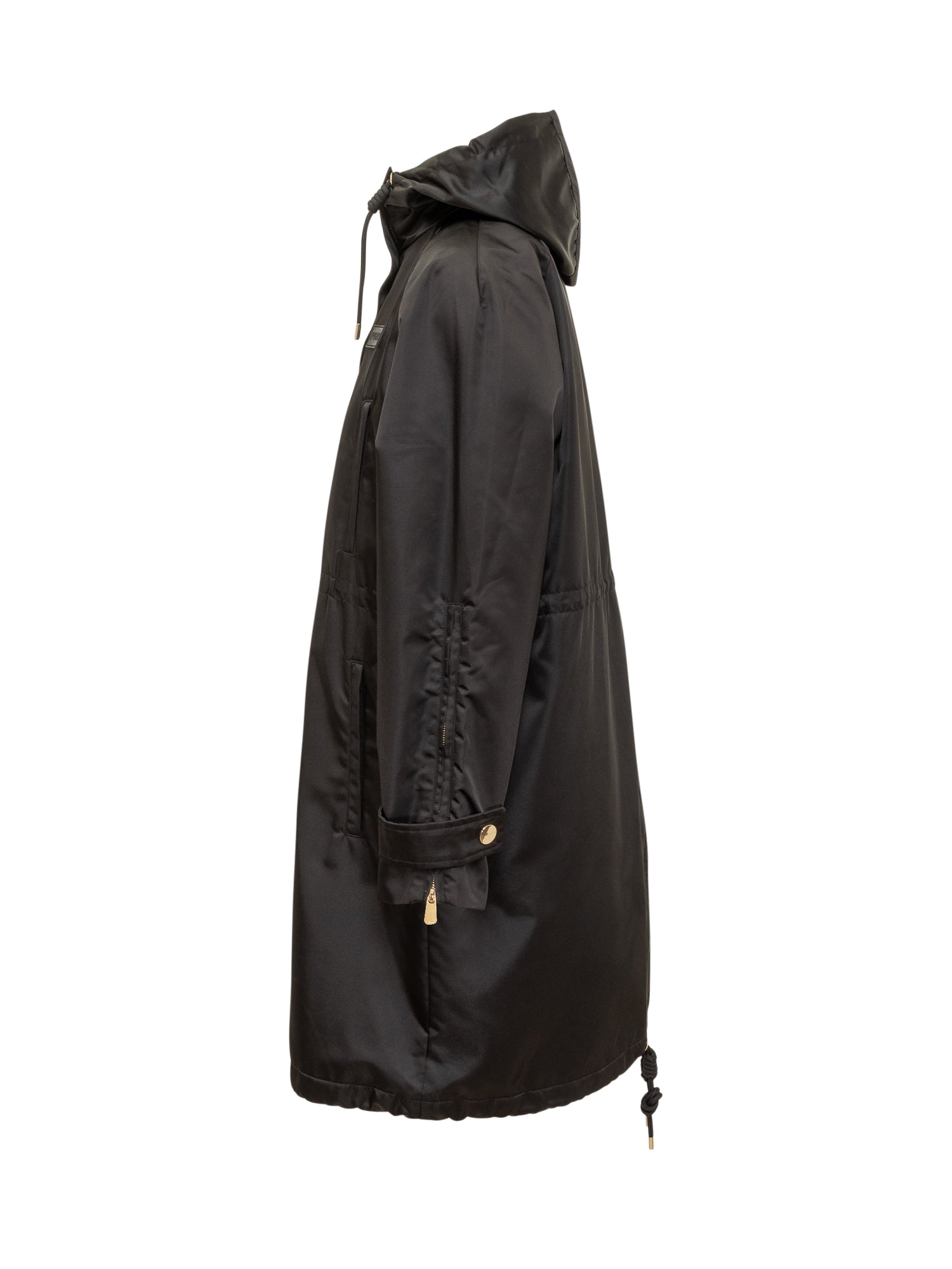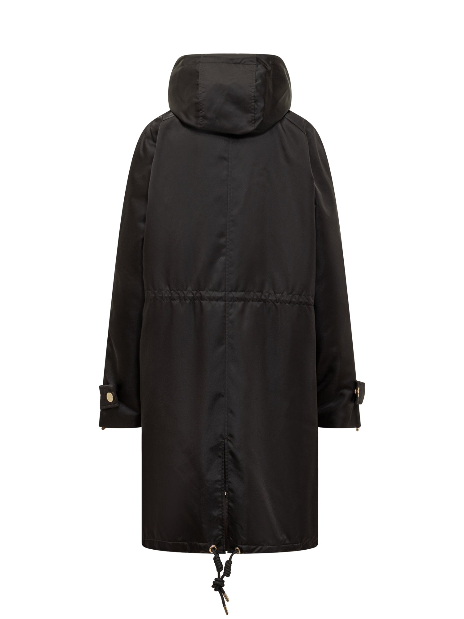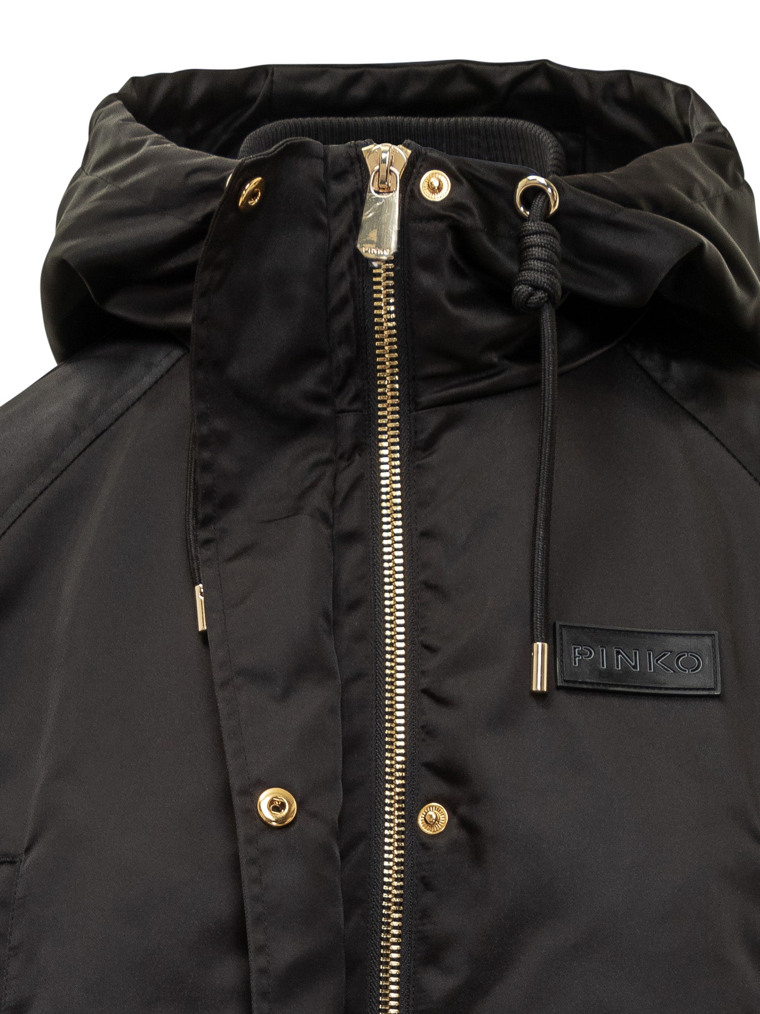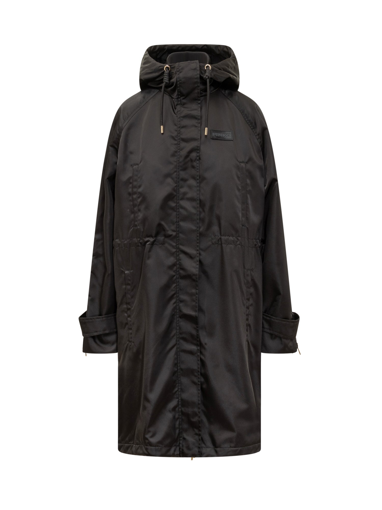 Cappotto Pinko Delma imbottito in tessuto tecnico lucido con cappuccio regolabile e chiusura con zip e bottoni. Linea oversize con coulisse in vita per un fit personalizzato.