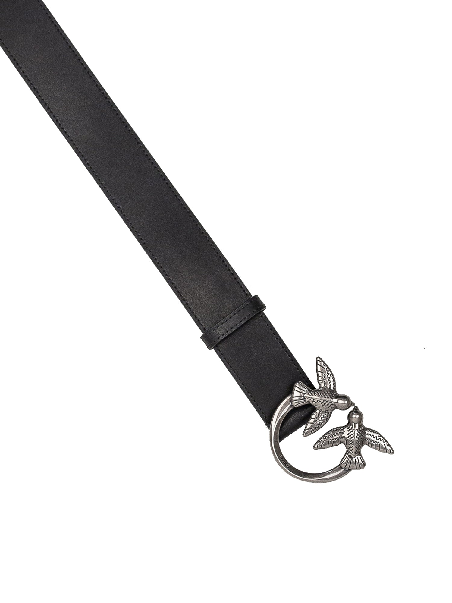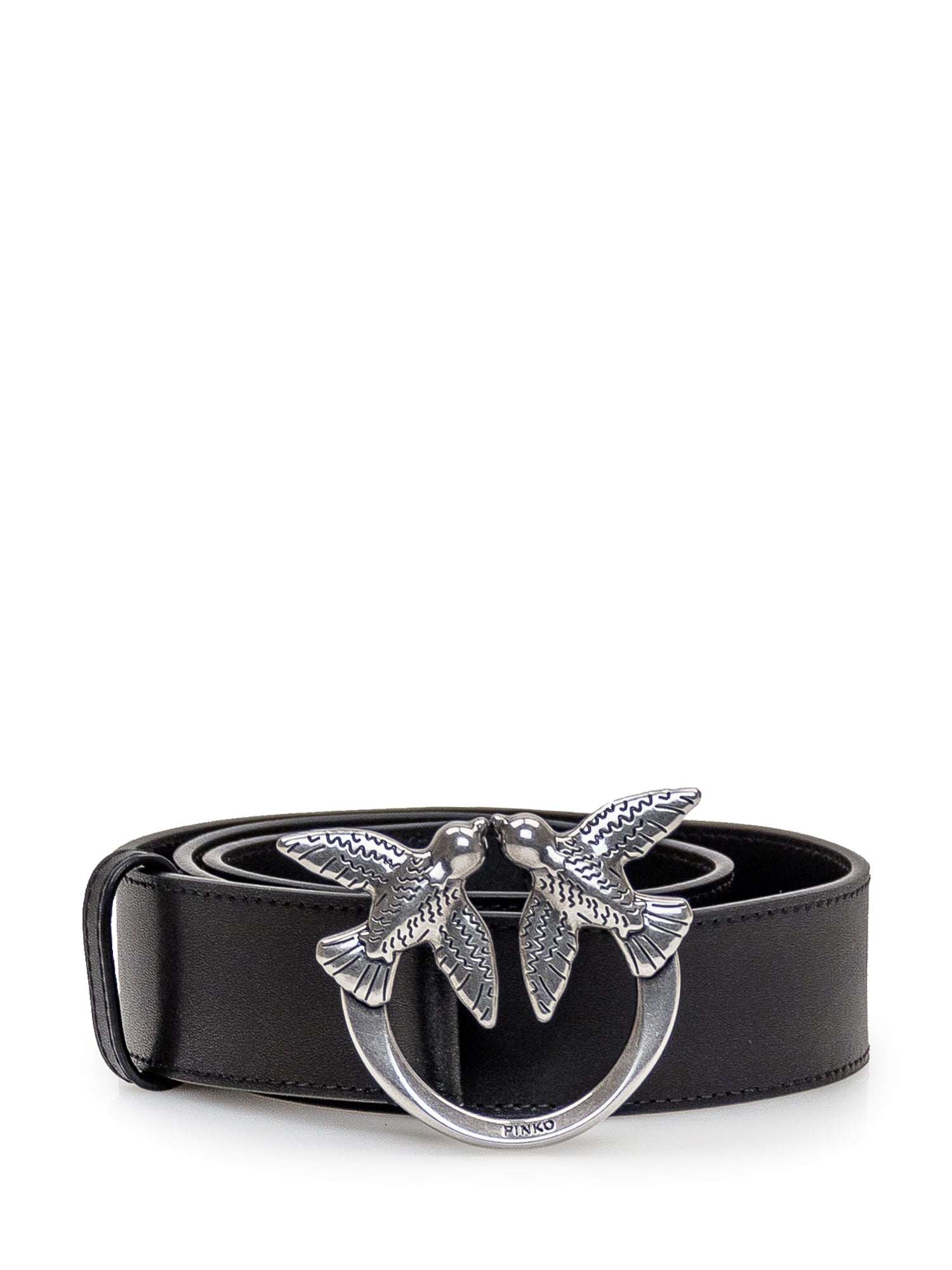 Cintura in pelle nera. Fibbia con Logo Love Bird argentato.