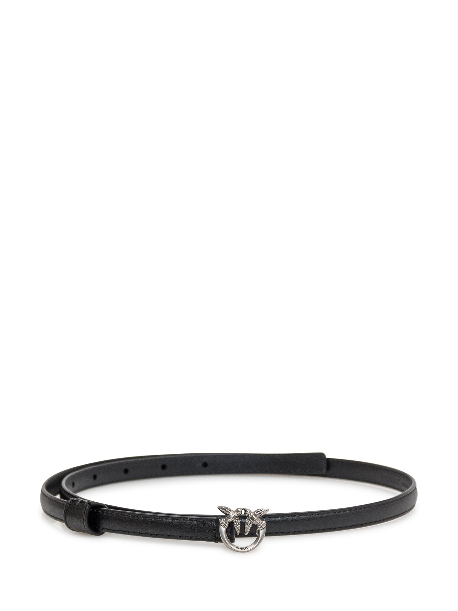Cintura in pelle nera. Fibbia con Logo Love Bird argentato.