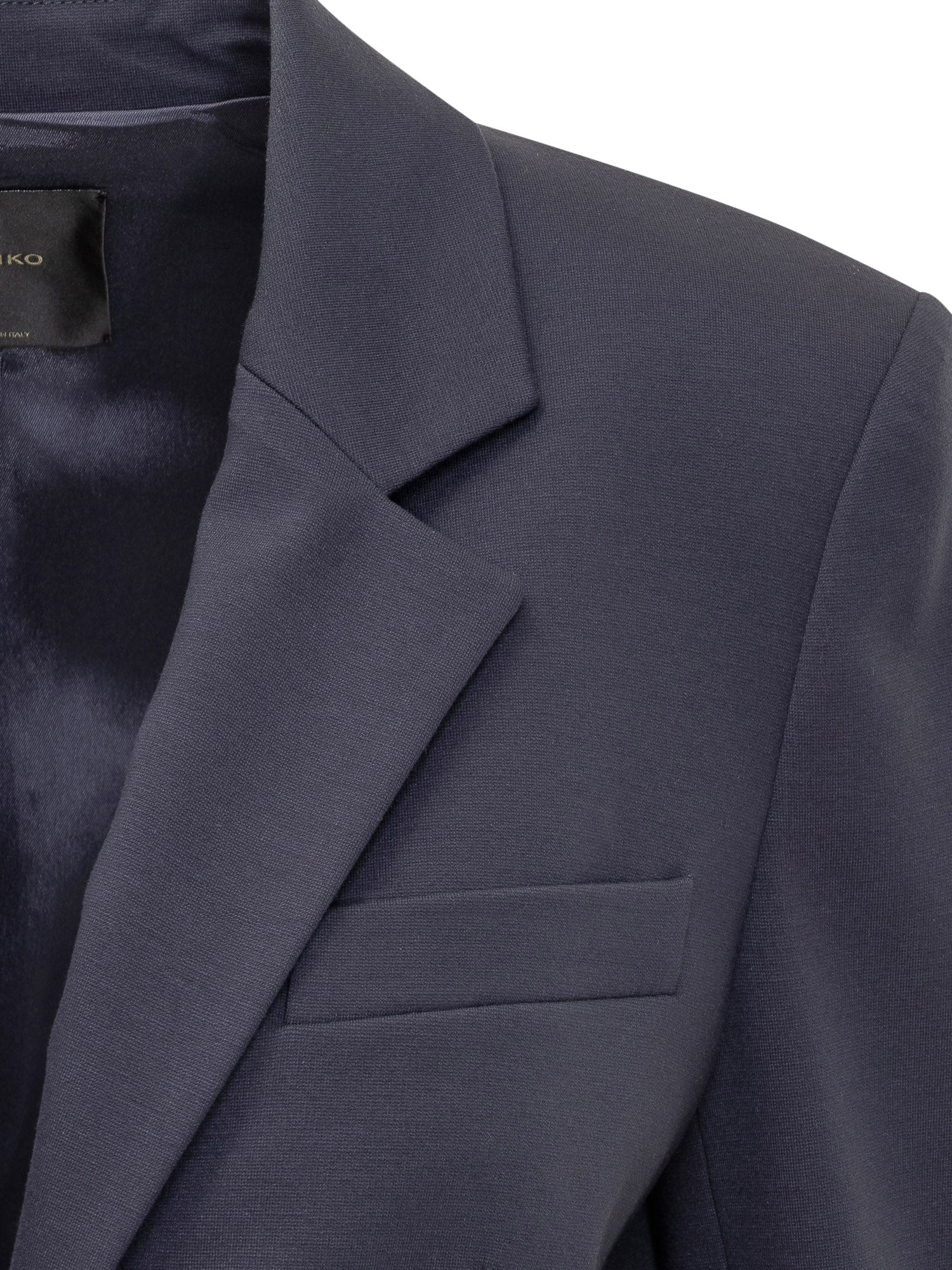 Giacca Pinko modello Ruota, realizzata in tessuto tecnico stretch. Presenta chiusura con due bottoni, revers classico e tasche con patta.