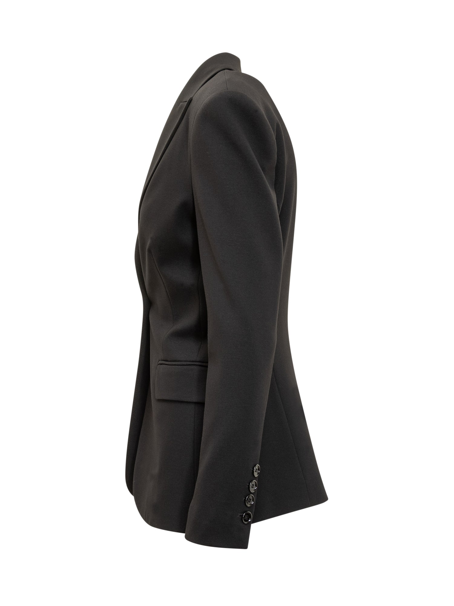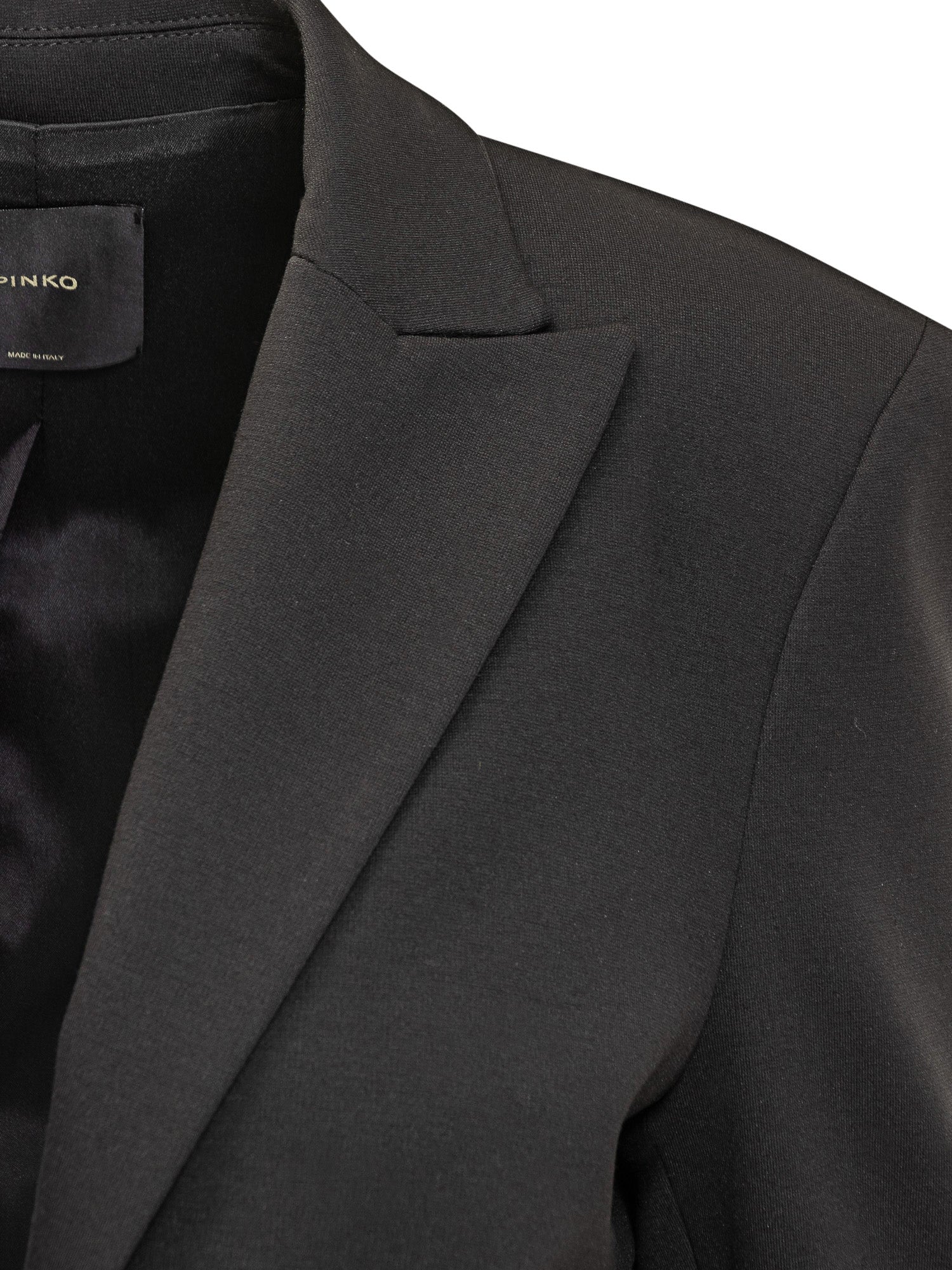 Giacca nera Pinko dal taglio sartoriale con chiusura a un bottone.