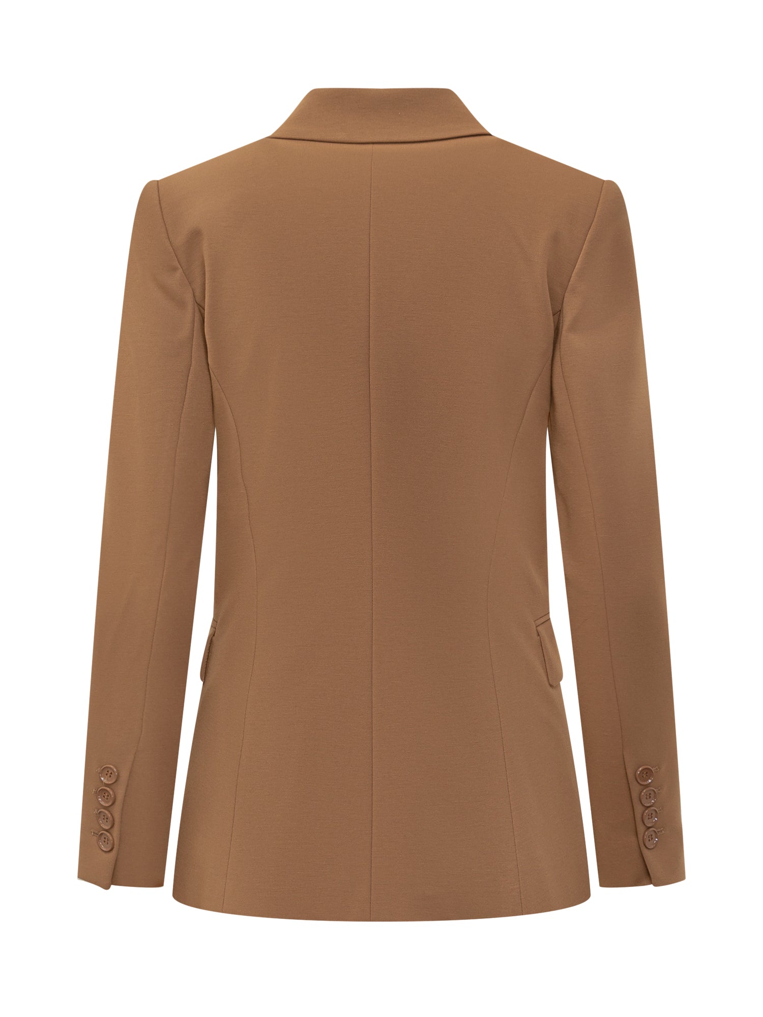 Blazer monopetto Pinko in crepe marrone con linea femminile e chiusura a un bottone.