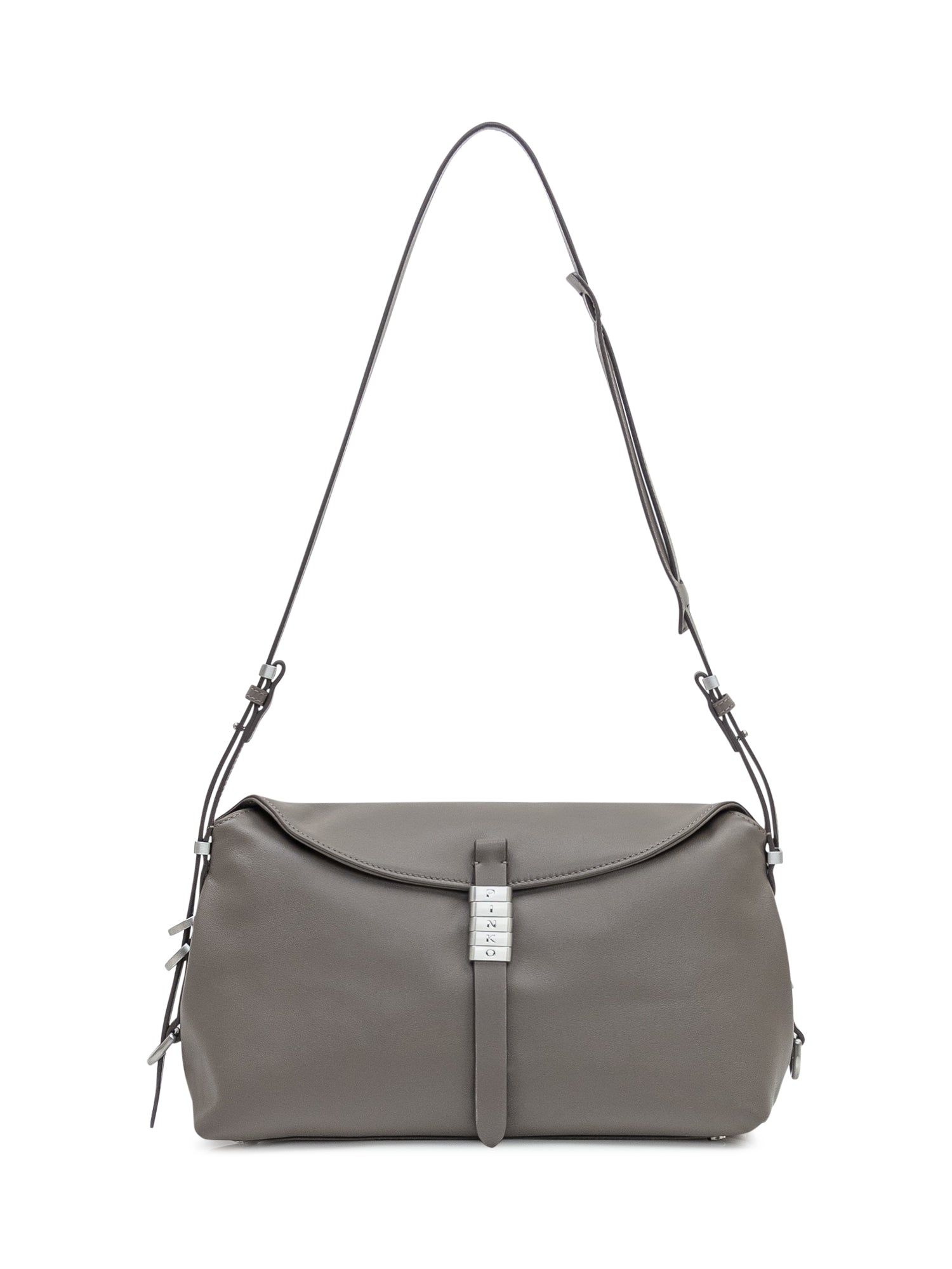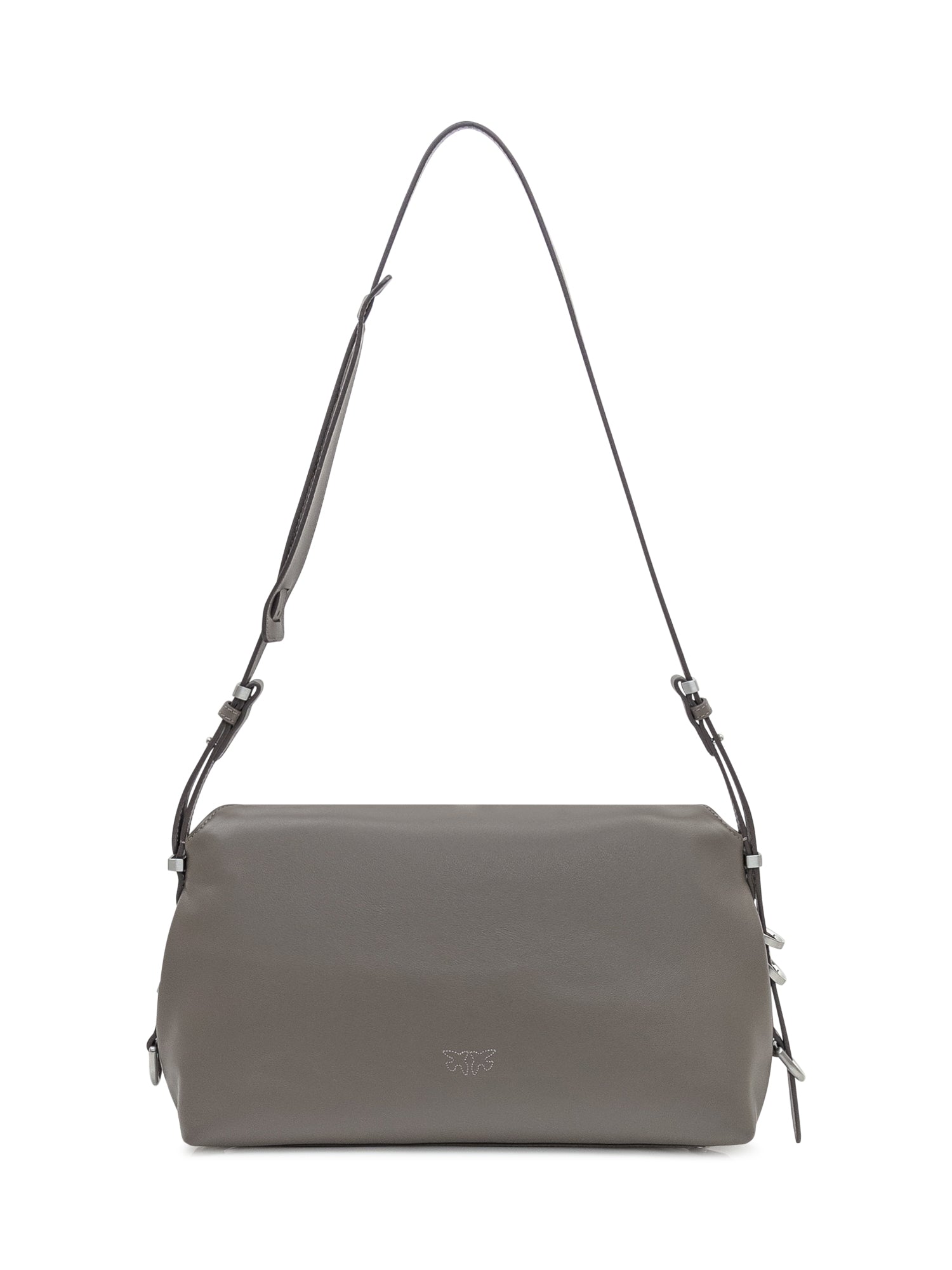 Borsa Pinko New Saddle in pelle grigia con tracolla regolabile e chiusura con fibbia logata.