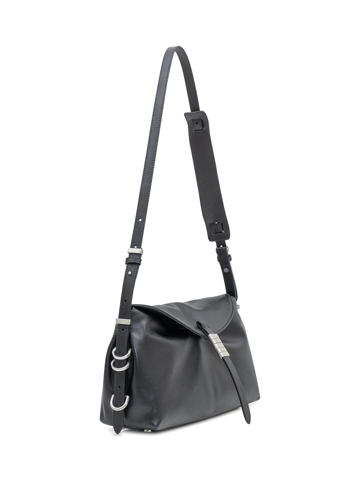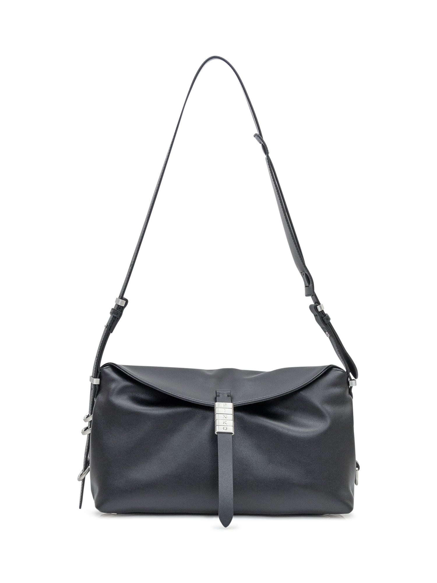 Borsa Pinko New Saddle in pelle nera con tracolla regolabile e chiusura con fibbia logata.