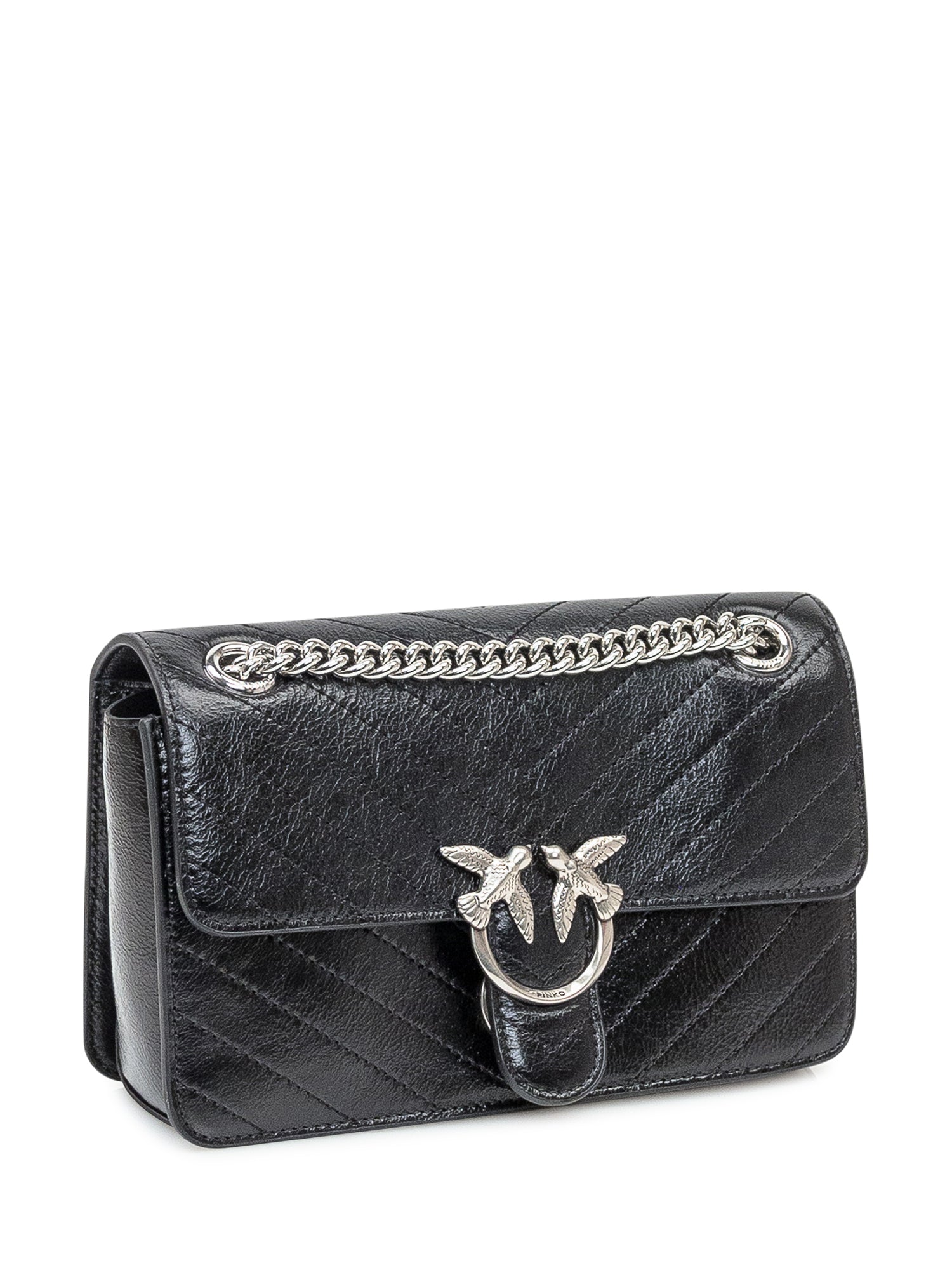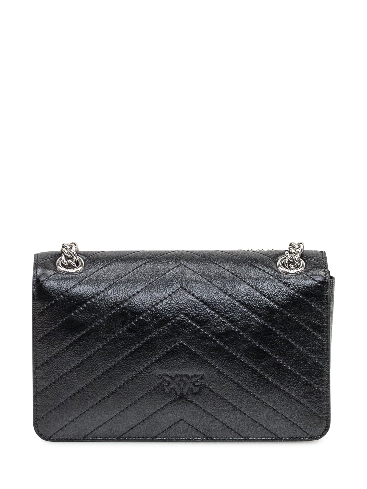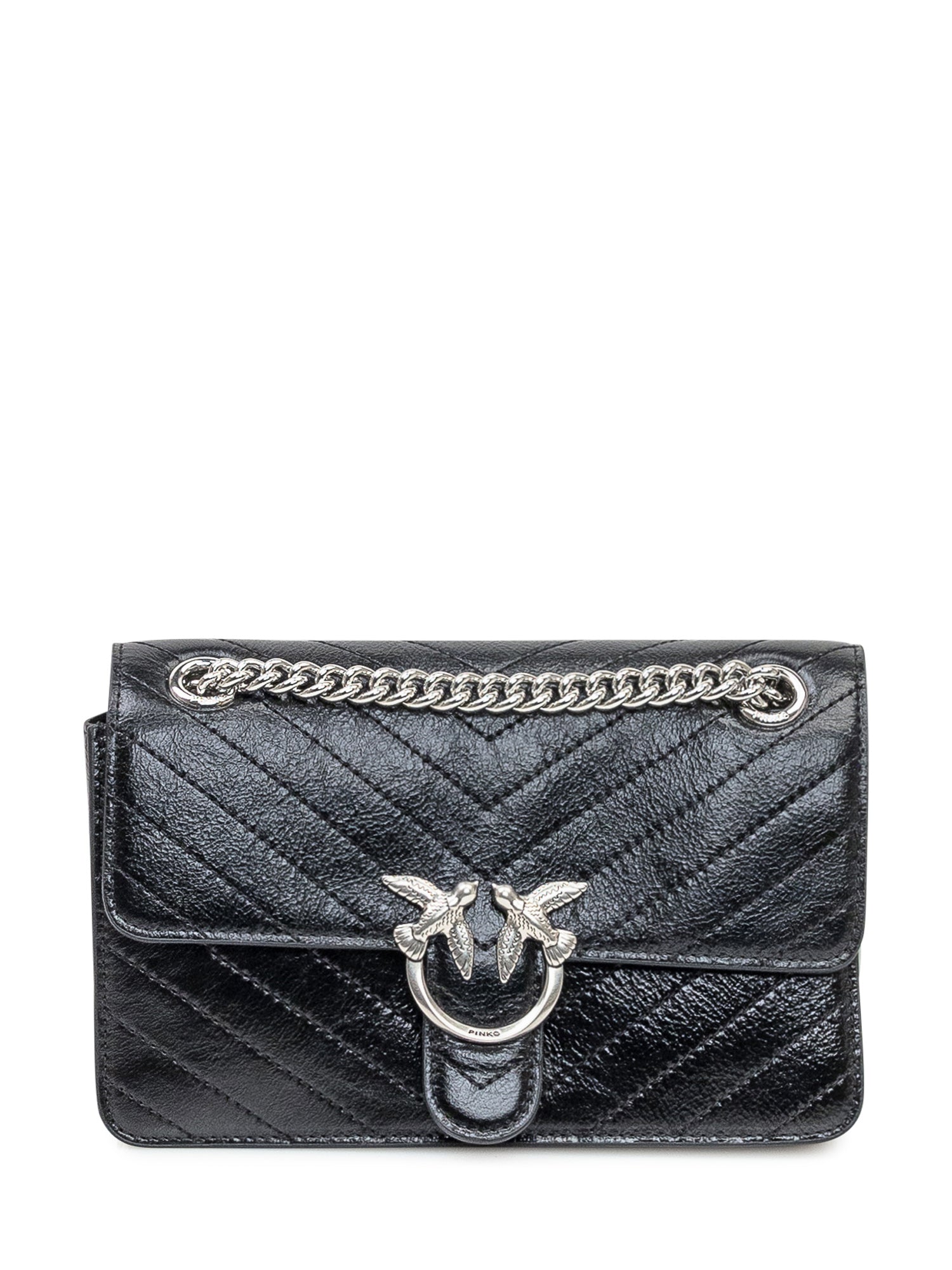 Borsa Pinko Love Mini Puff in pelle trapuntata nera con catena argentata e iconico dettaglio Love Birds.