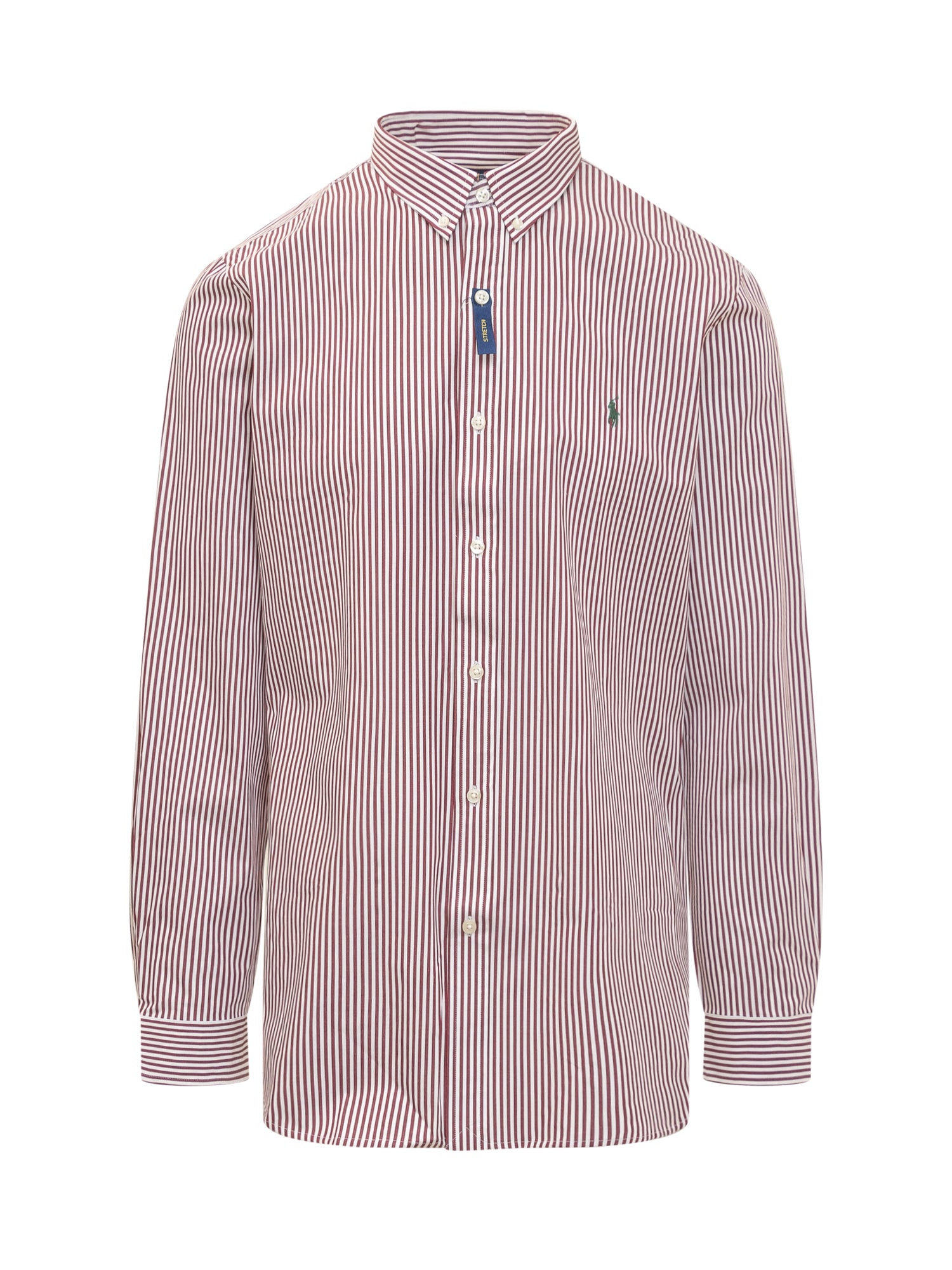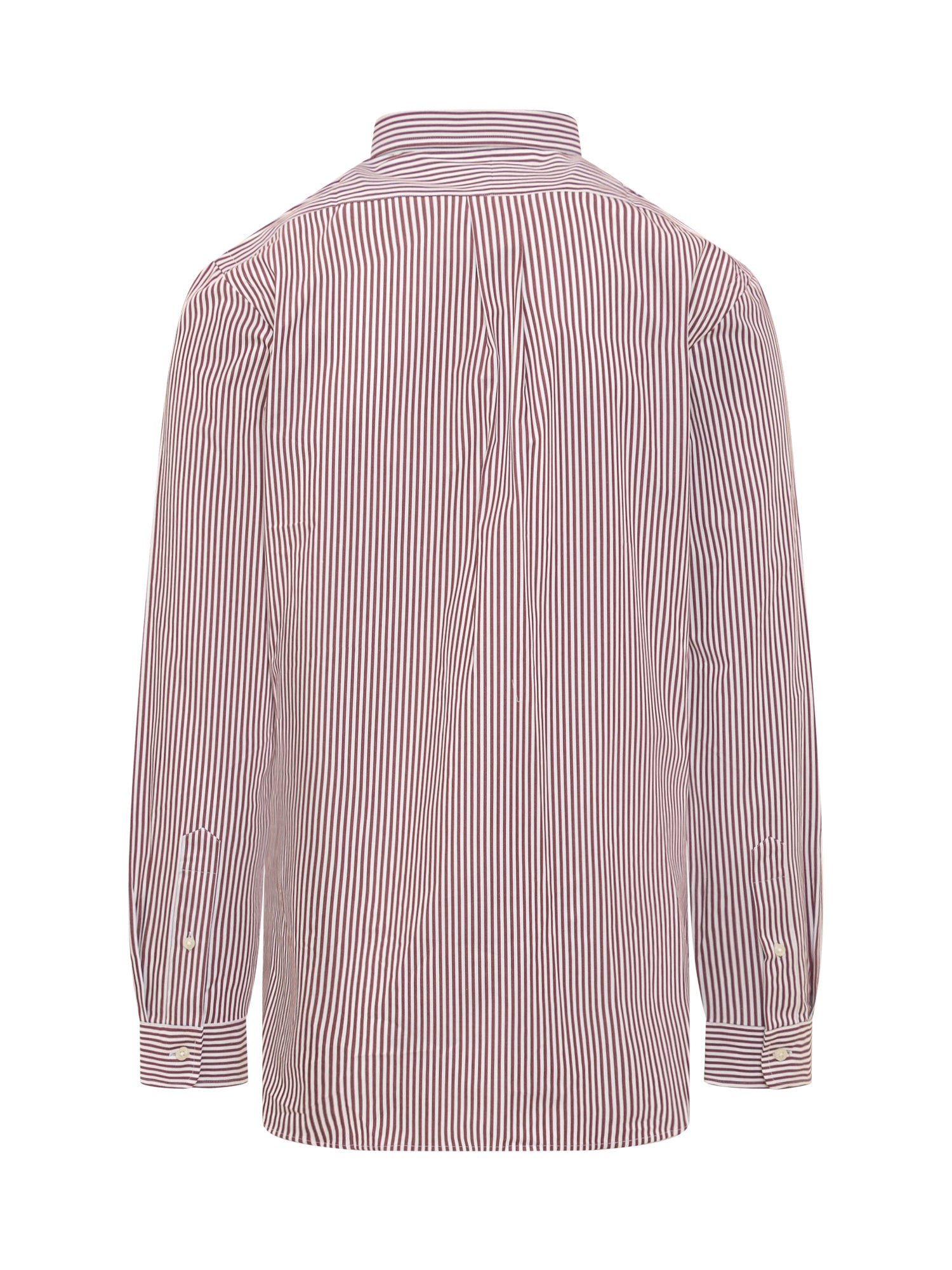 Camicia a righe rosse. Maniche lunghe. Colletto button down. Chiusura con bottoni. Bottoni sui polsi. Logo ricamato sul petto.