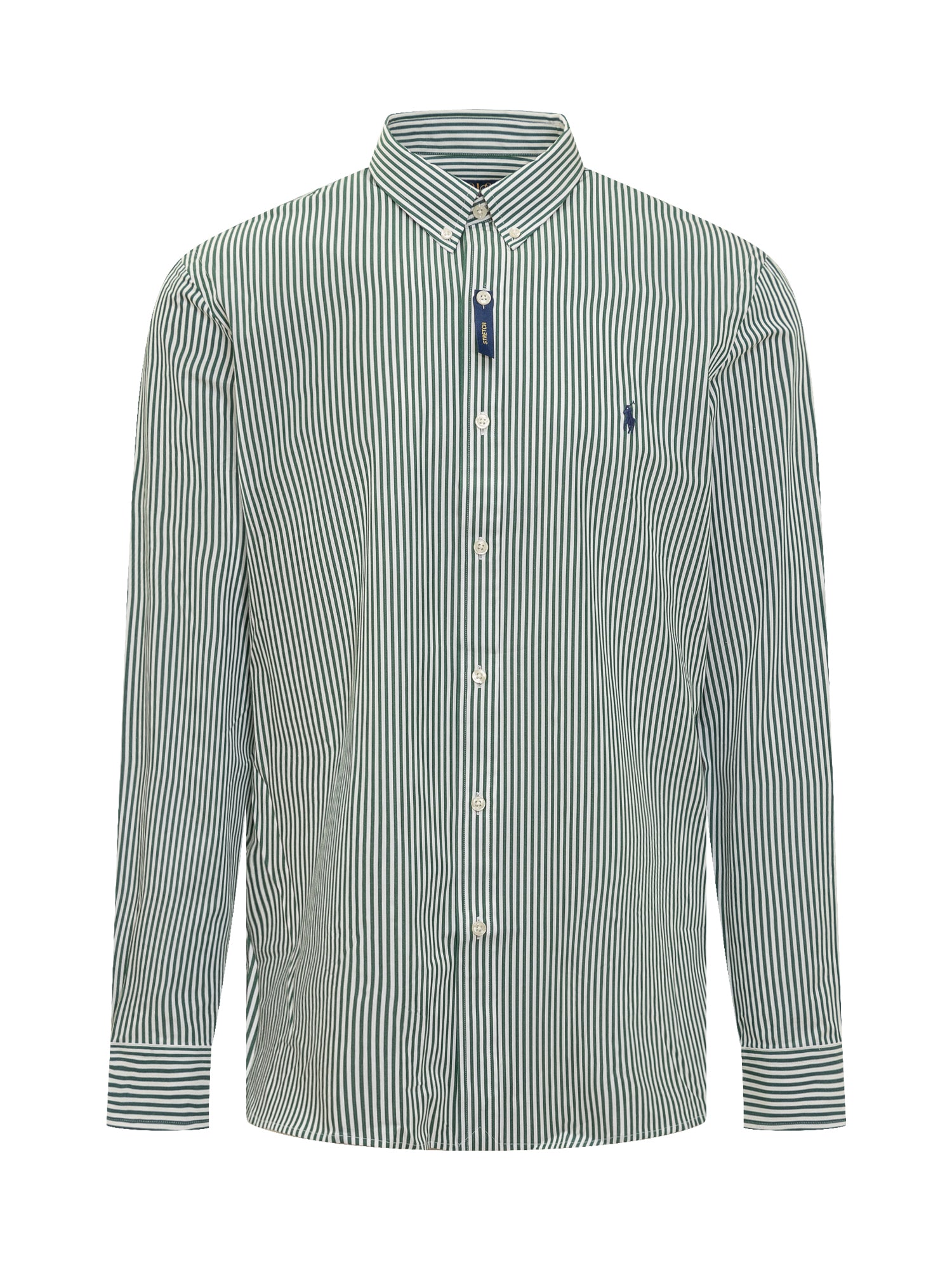 Camicia a maniche lunghe. Stampa a righe. Logo ricamato. Colletto classico. Chiusura con bottoni.