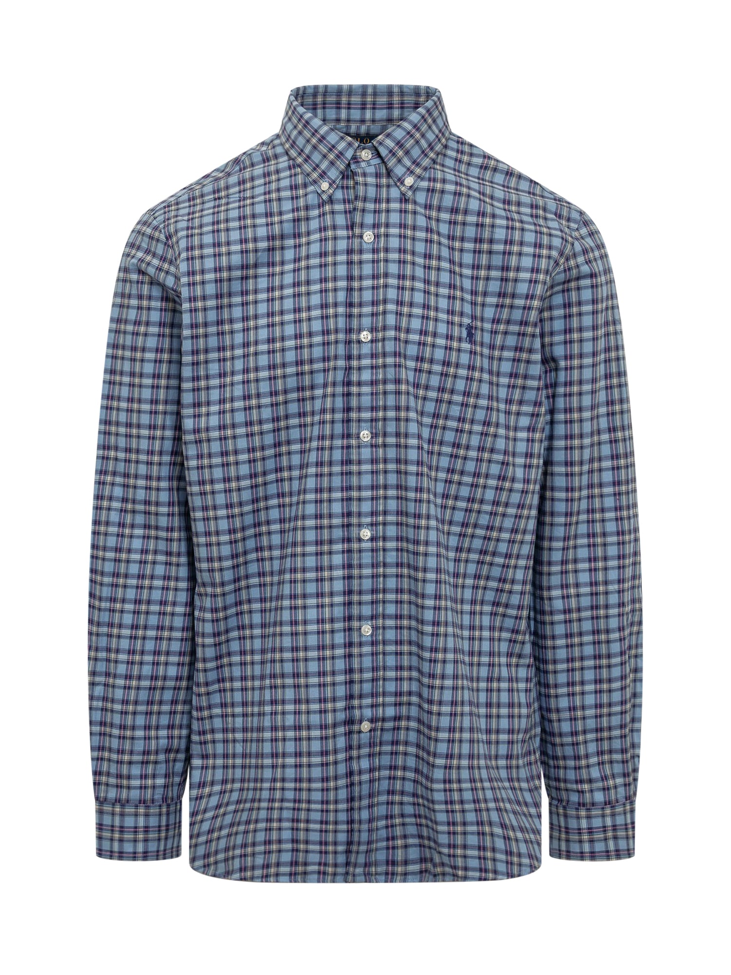 Camicia a maniche lunghe. Chiusura frontale con bottoni. Colletto classico. Logo ricamato sul petto. Stampa a quadri.
