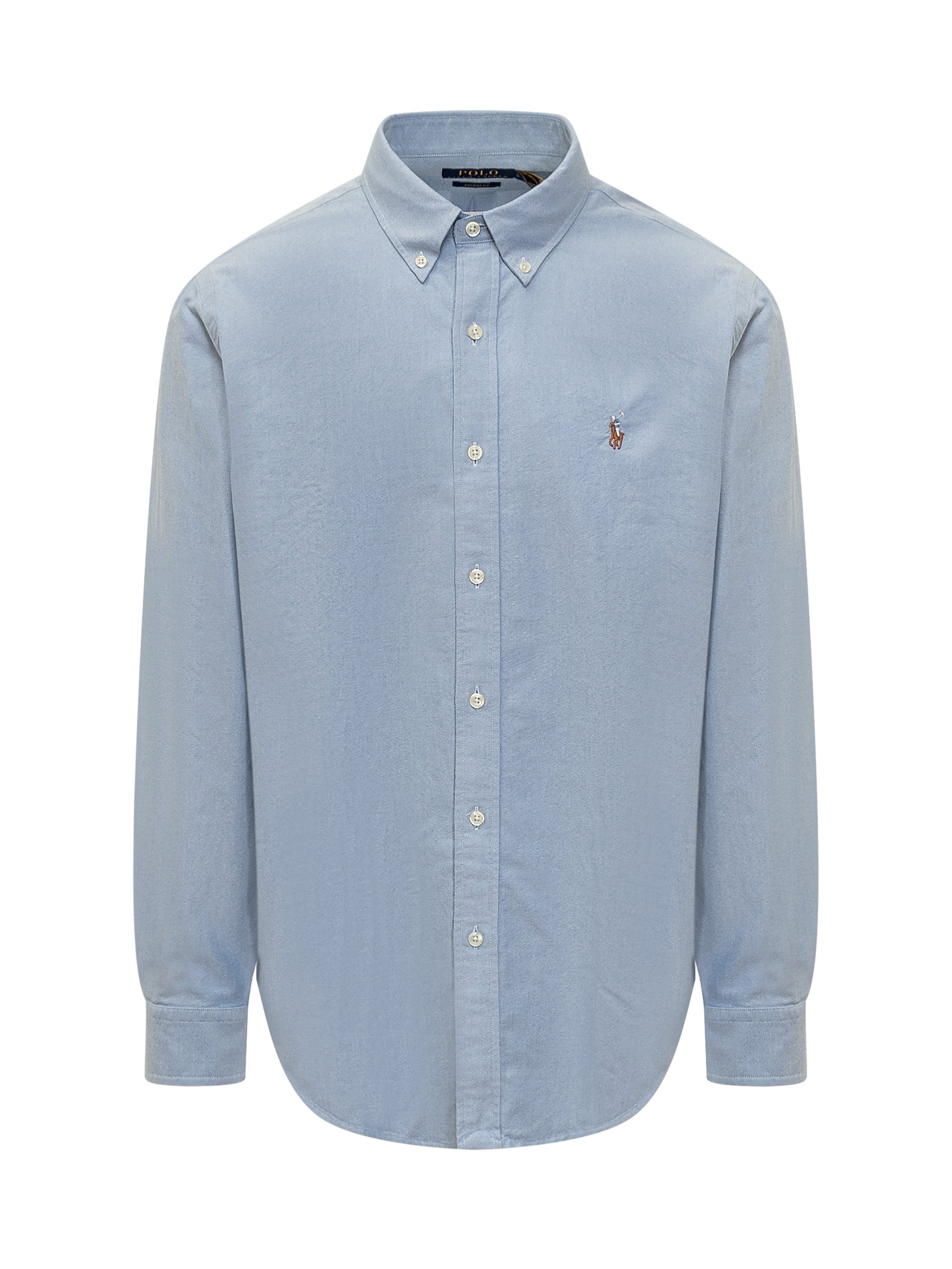 Camicia azzurra in cotone. Maniche lunghe. Colletto classico. Polsi con bottone. Logo ricamato. Chiusura con bottoni.