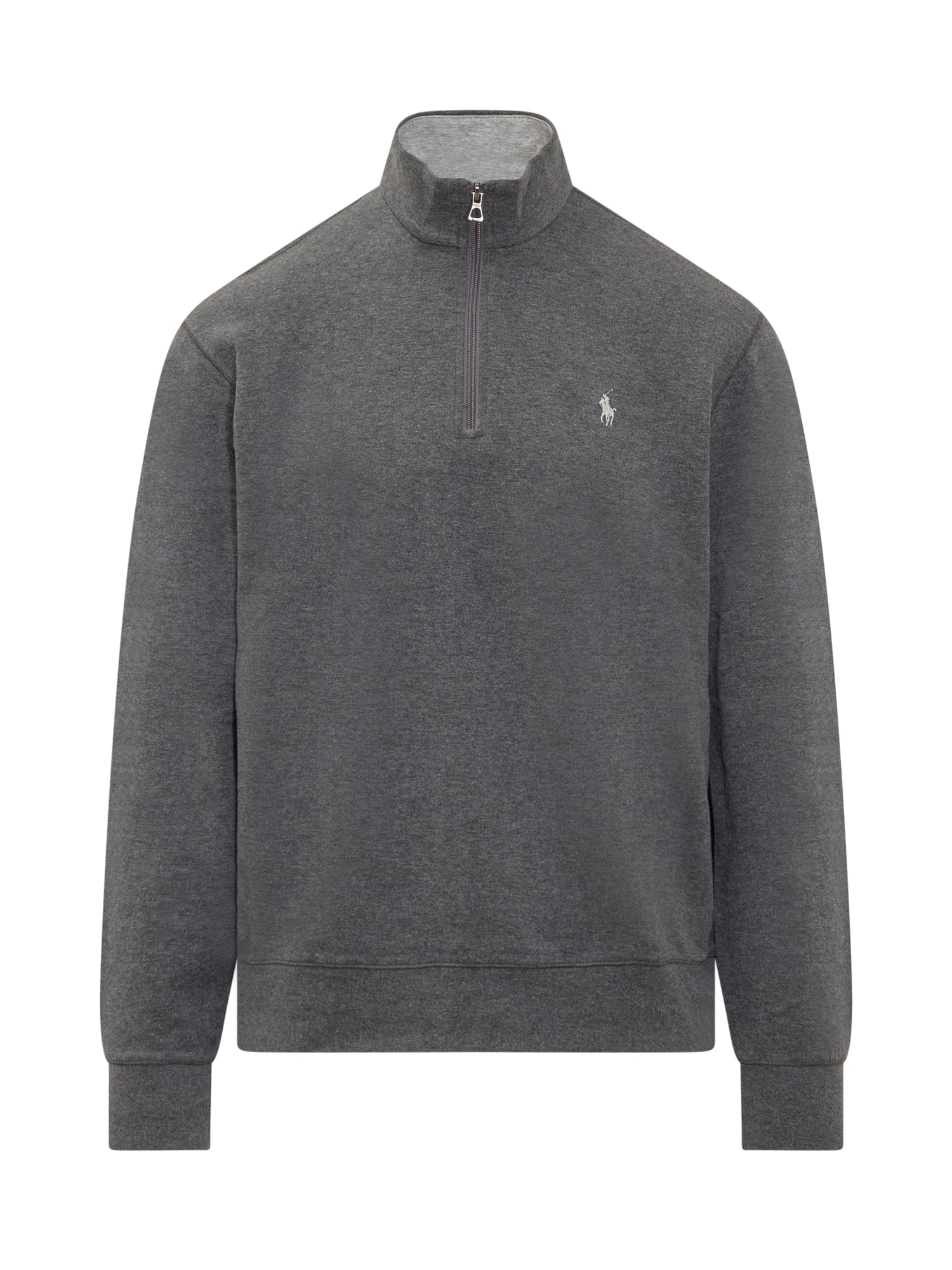 Felpa a maniche lunghe. Collo alto con zip. Logo ricamato sul petto. Collo, polsi e fondo a costine.