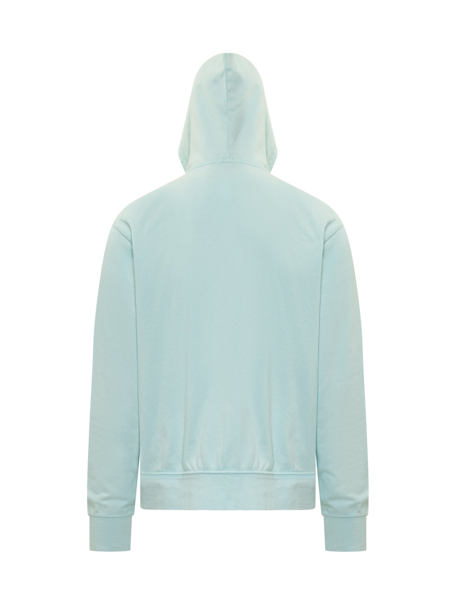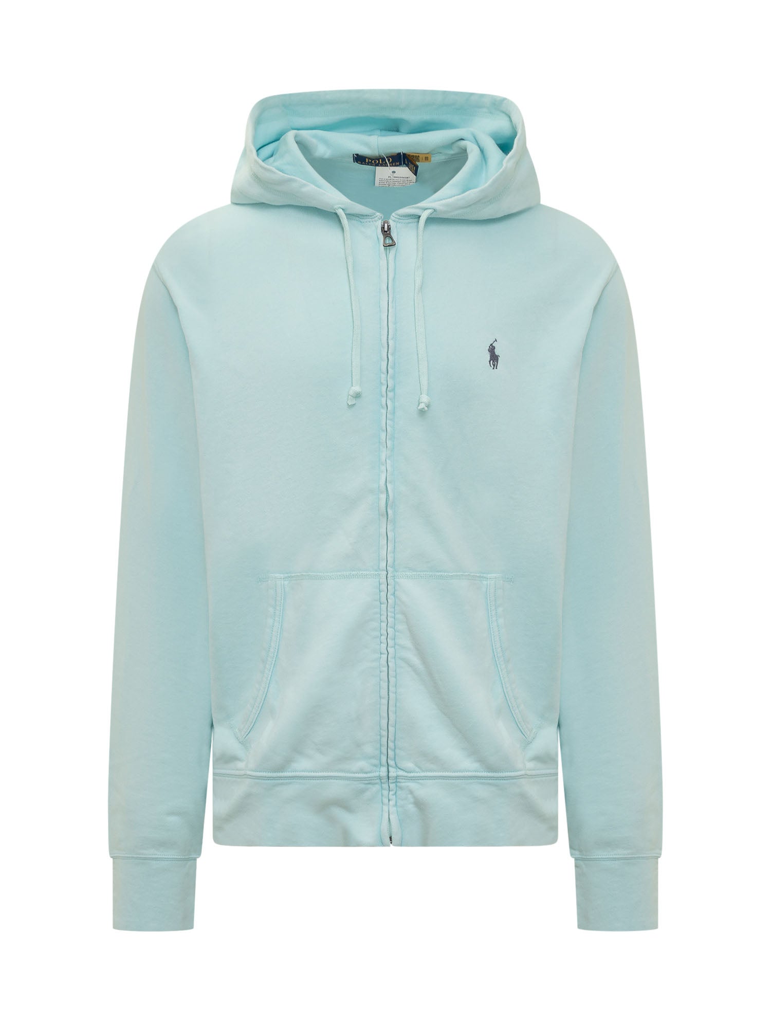 Felpa a maniche lunghe. Chiusura con zip frontale. Cappuccio con coulisse. Logo ricamato sul petto. Polsi e fondo a costine. Tasche frontali.